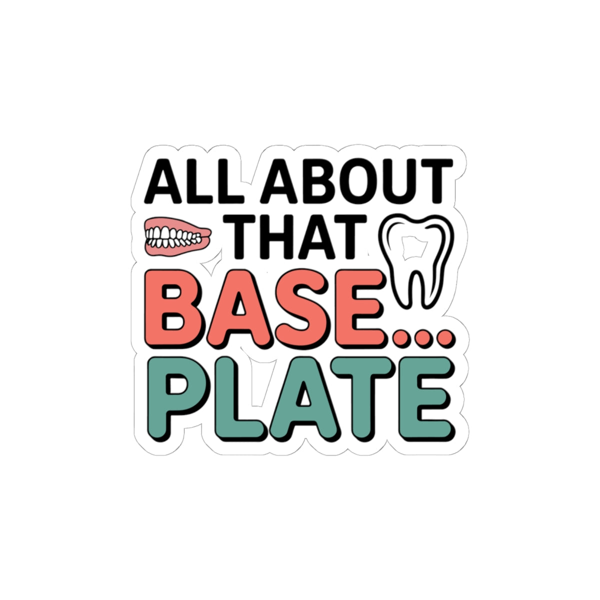 Dental Lab Humor Sticker - 'All About That Base Plate' Denture Vinyl Decal for Prosthetic Techs