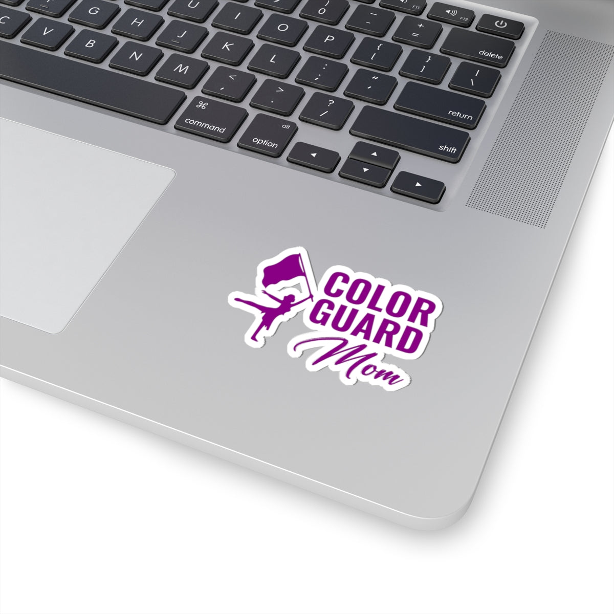 Zeigen Sie Ihren Stolz auf Ihren Color Guard-Athleten mit diesem stilvollen Vinyl-Aufkleber. Das Design zeigt eine wirbelnde Tänzerin und den Schriftzug „Color Guard Mom“. Perfekt, um Ihrem Auto, Laptop, Notebook oder jeder glatten Oberfläche einen Hauch von Flair zu verleihen.
