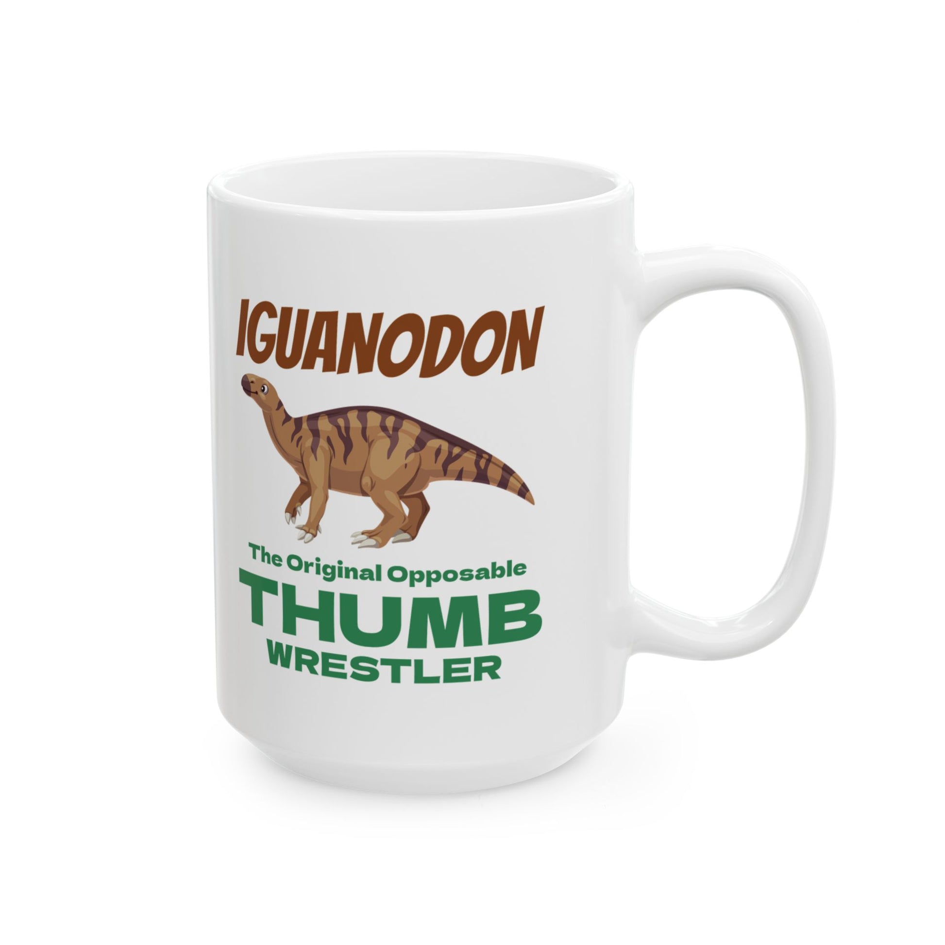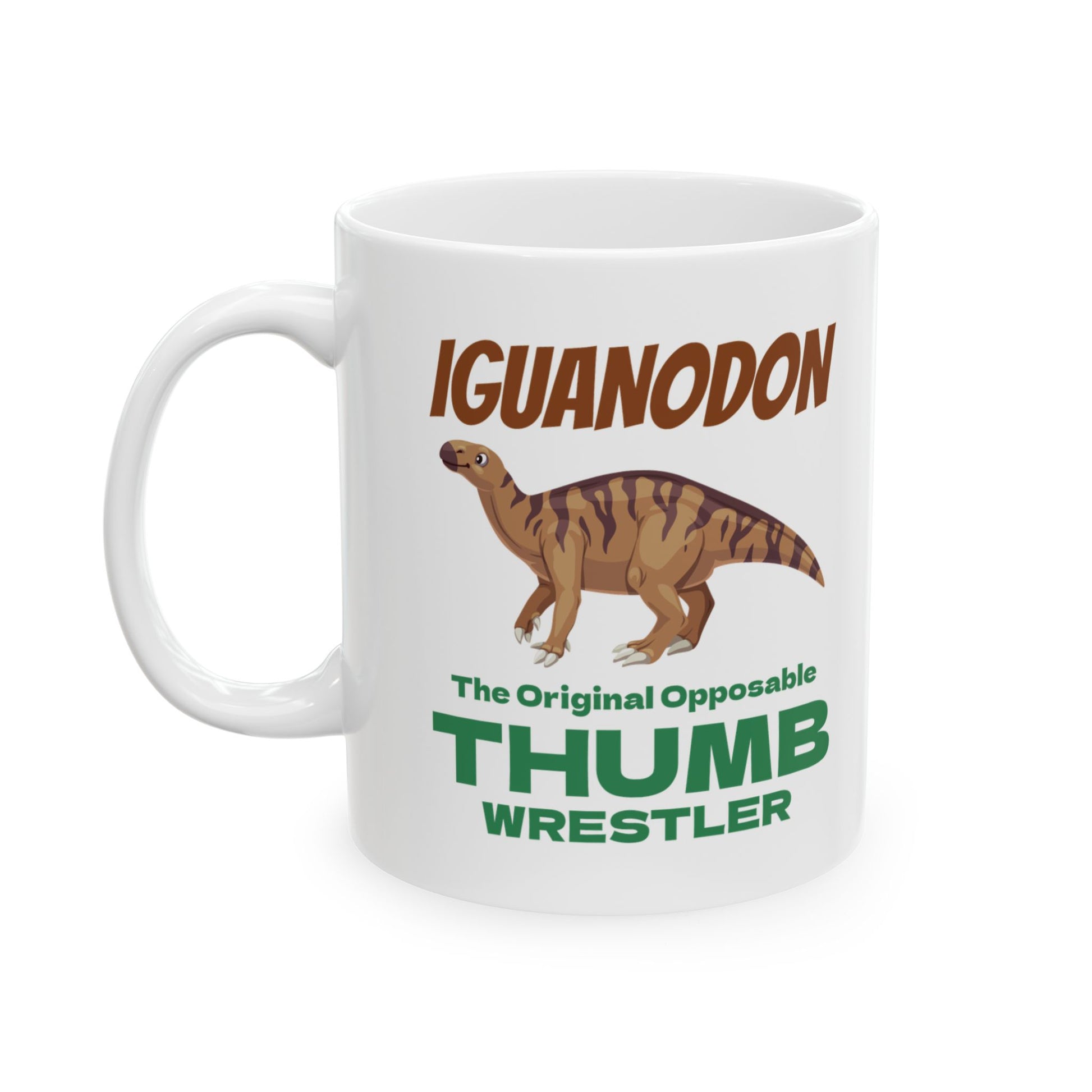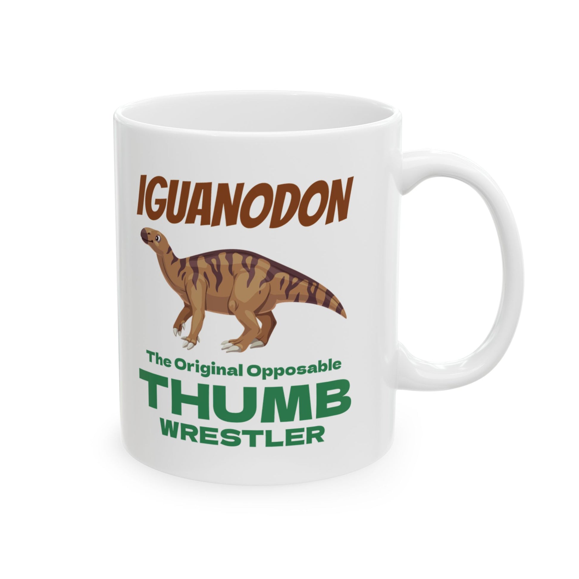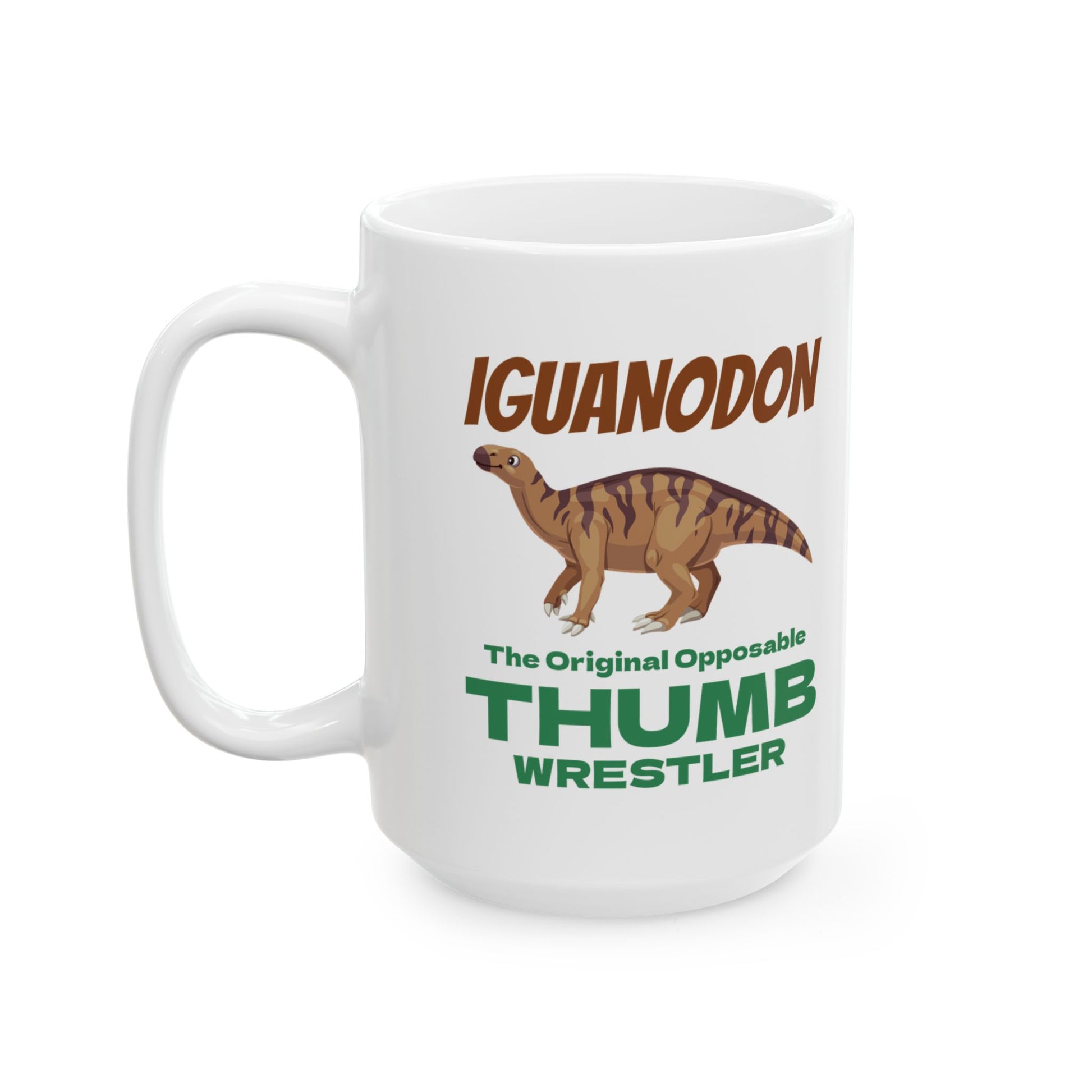 Feiern Sie den faszinierenden Iguanodon mit dieser humorvollen und lehrreichen Tasse mit dem Motiv „Der originale opponierbare Daumenringer“. Perfekt für Paläontologen, Dinosaurier-Enthusiasten und Fossiliensammler, die die Rolle dieses einzigartigen Pflanzenfressers in der Evolutionsgeschichte schätzen. Die Illustration zeigt das unverwechselbare Aussehen des Iguanodon, insbesondere seinen berühmten opponierbaren Daumenstachel – ein bahnbrechendes anatomisches Merkmal, das ihn von anderen Dinosauriern unterschied. Wärmen Sie sich mit einer schönen Tasse Tee aus dieser personalisierten Keramik-Kaffeetasse auf. Sie ist BPA- und bleifrei, mikrowellen- und spülmaschinenfest und aus weißer, robuster Keramik in den Größen 325 ml und 425 ml gefertigt. Dank der fortschrittlichen Drucktechnologie erwachen Ihre Designs in unglaublich lebendigen Farben zum Leben – das perfekte Geschenk für Kaffee-, Tee- und Schokoladenliebhaber. .: Diese Tassen sind aus robuster weißer Keramik gefertigt, damit Ihre Drucke hervorstechen. .: Erhältlich in zwei Größen: 11 oz (0,33 l) und 15 oz (0,44 l).: Alle Becher verfügen über einen bequemen C-Henkel und eine glänzende Oberfläche, sodass sie sowohl einfach zu verwenden als auch toll anzusehen sind. .: Trinken Sie täglich bedenkenlos, da alle Becher blei- und BPA-frei sind.