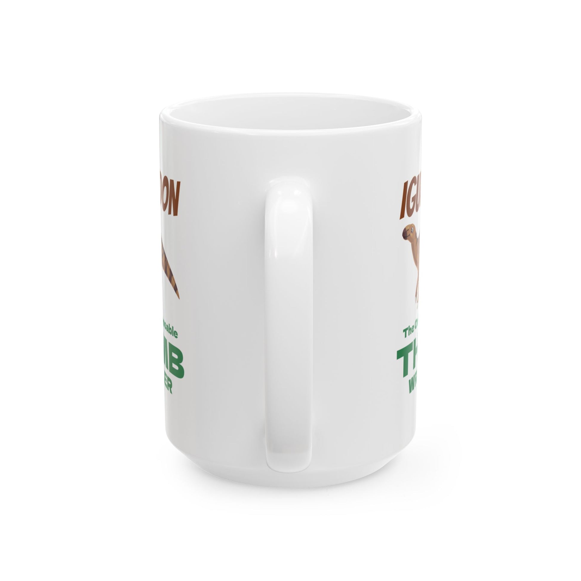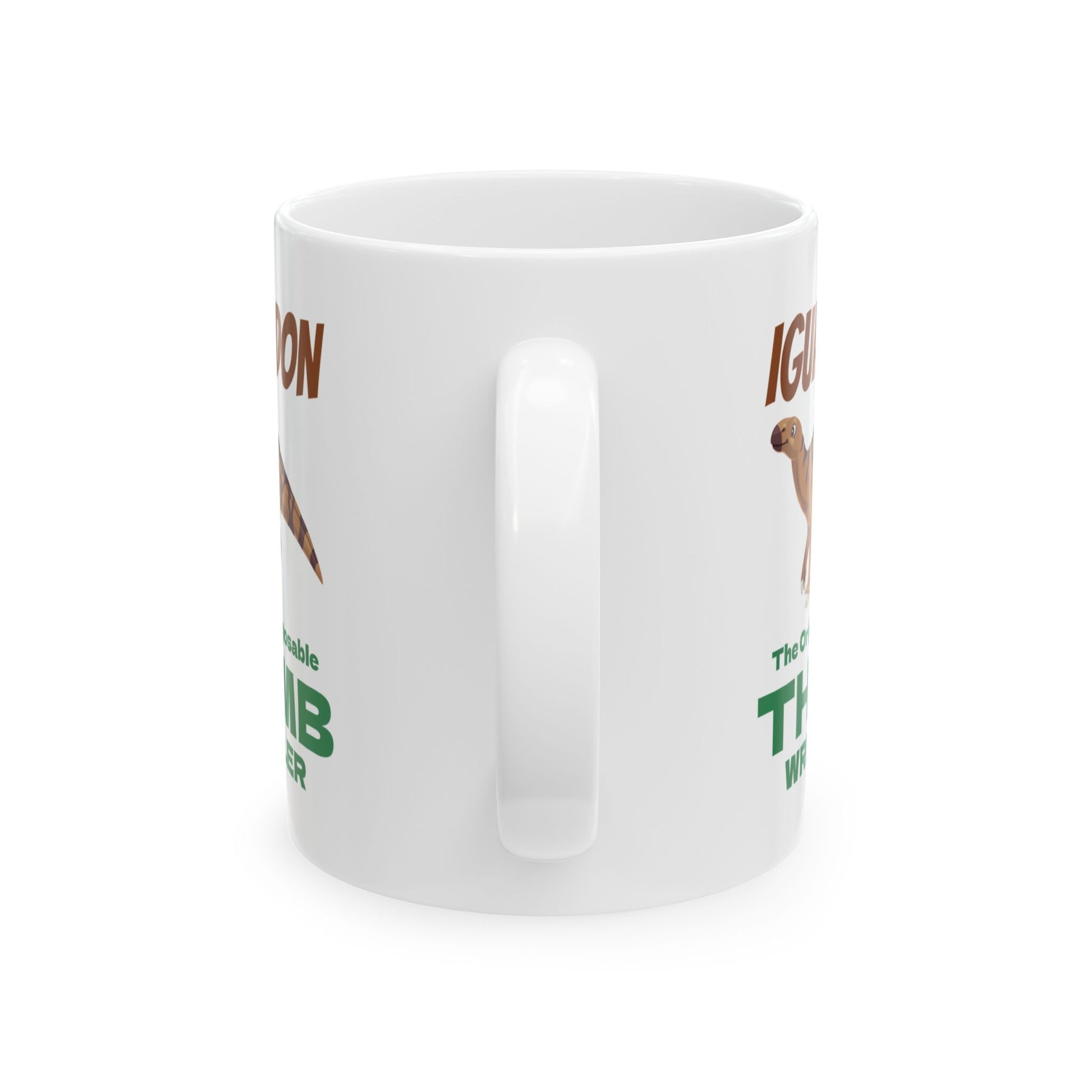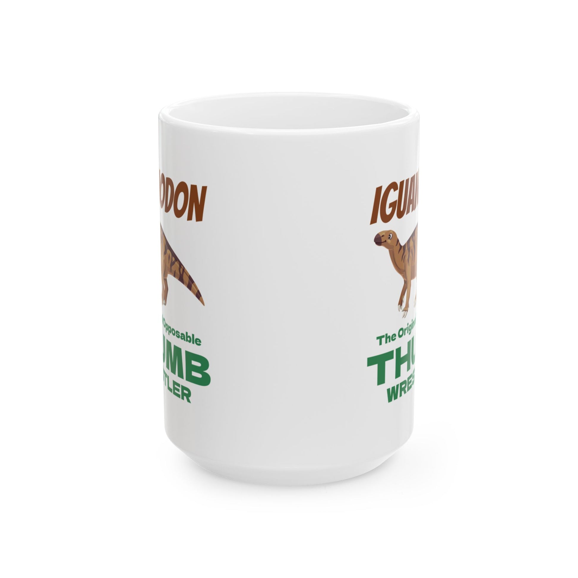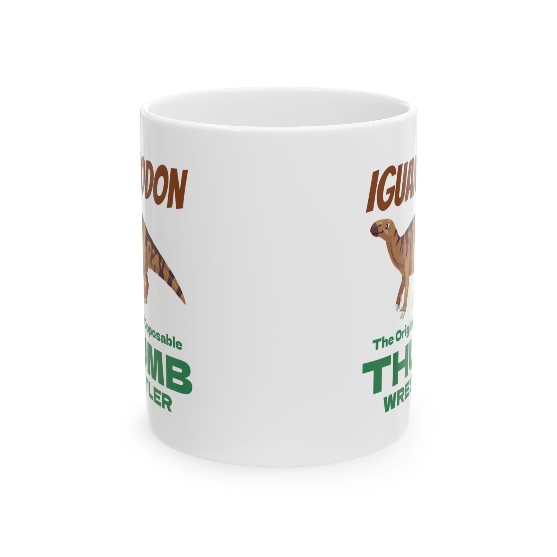 Feiern Sie den faszinierenden Iguanodon mit dieser humorvollen und lehrreichen Tasse mit dem Motiv „Der originale opponierbare Daumenringer“. Perfekt für Paläontologen, Dinosaurier-Enthusiasten und Fossiliensammler, die die Rolle dieses einzigartigen Pflanzenfressers in der Evolutionsgeschichte schätzen. Die Illustration zeigt das unverwechselbare Aussehen des Iguanodon, insbesondere seinen berühmten opponierbaren Daumenstachel – ein bahnbrechendes anatomisches Merkmal, das ihn von anderen Dinosauriern unterschied. Wärmen Sie sich mit einer schönen Tasse Tee aus dieser personalisierten Keramik-Kaffeetasse auf. Sie ist BPA- und bleifrei, mikrowellen- und spülmaschinenfest und aus weißer, robuster Keramik in den Größen 325 ml und 425 ml gefertigt. Dank der fortschrittlichen Drucktechnologie erwachen Ihre Designs in unglaublich lebendigen Farben zum Leben – das perfekte Geschenk für Kaffee-, Tee- und Schokoladenliebhaber. .: Diese Tassen sind aus robuster weißer Keramik gefertigt, damit Ihre Drucke hervorstechen. .: Erhältlich in zwei Größen: 11 oz (0,33 l) und 15 oz (0,44 l).: Alle Becher verfügen über einen bequemen C-Henkel und eine glänzende Oberfläche, sodass sie sowohl einfach zu verwenden als auch toll anzusehen sind. .: Trinken Sie täglich bedenkenlos, da alle Becher blei- und BPA-frei sind.