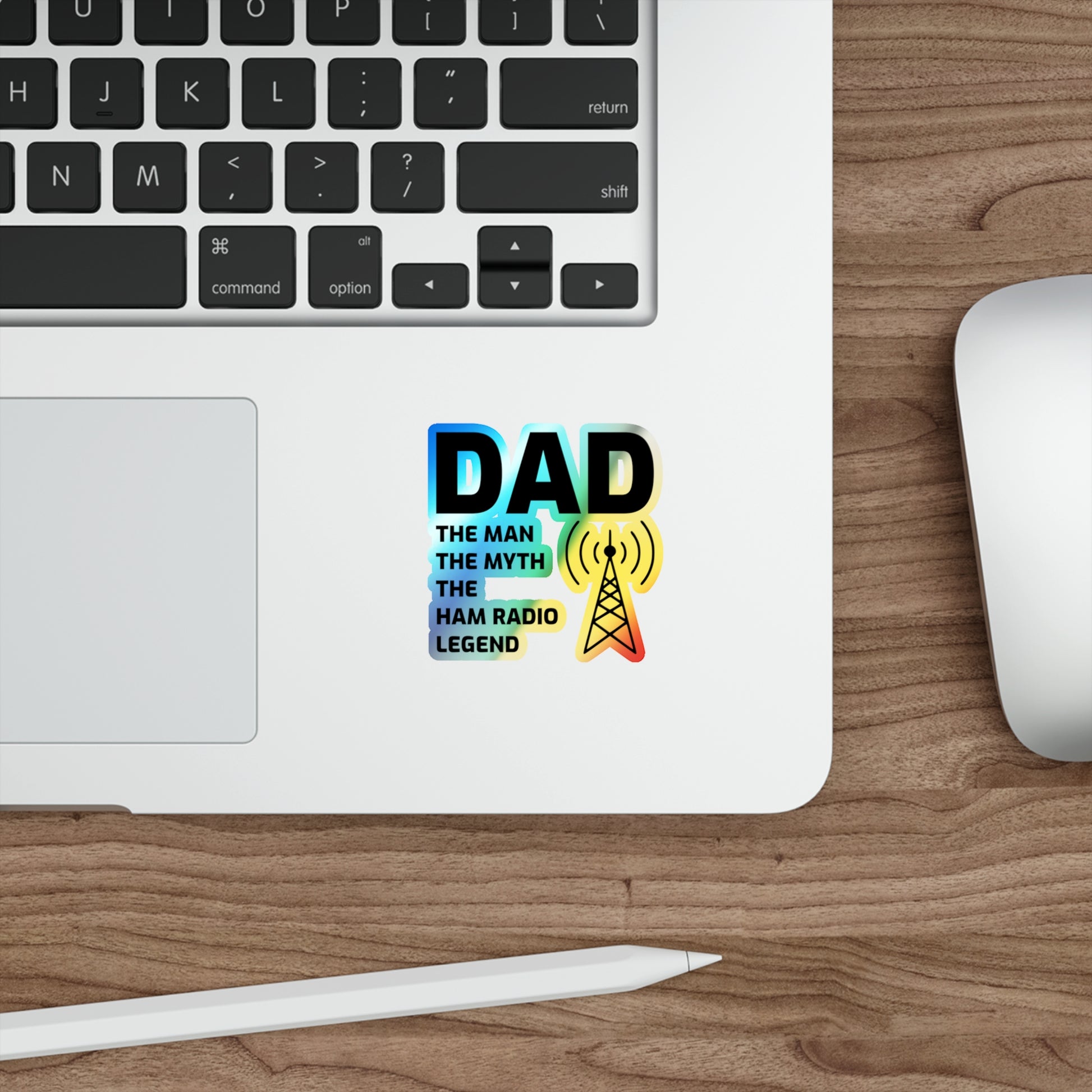 Celebrate the ham radio dad in your life with this premium holographic vinyl decal! Perfect for amateur radio operators, Morse code enthusiasts, and DXing fans, this "Ham Radio Legend" sticker proudly declares his status as a true radio hero. Great for laptops, vehicles, or radio gear to showcase his passion for airwave communication.