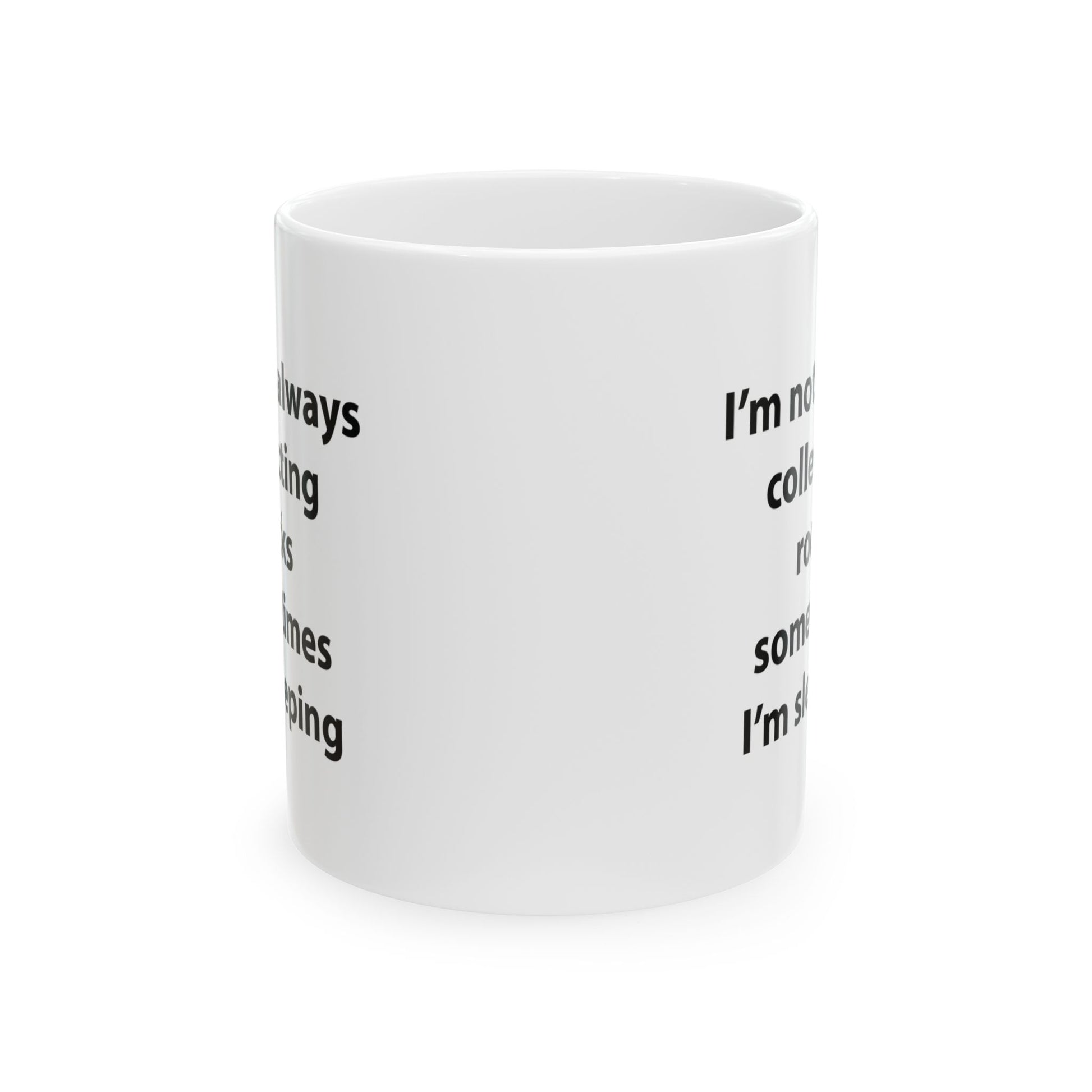 Embrace your inner geologist with this humorous mug, perfect for those whose hearts belong to the world of rocks and minerals. Featuring a playful twist on the dedicated rockhound's lifestyle, this mug is ideal for anyone who lives for the thrill of discovery, whether they're unearthing fossils or simply admiring the intricate patterns in a piece of granite. Enjoy your favorite beverage and celebrate the geological life! Warm-up with a nice cuppa out of this customized ceramic coffee mug. It’s BPA and Lead-free, microwave & dishwasher-safe, and made of white, durable ceramic in 11-ounce and 15-ounce sizes. Thanks to the advanced printing tech, your designs come to life with incredibly vivid colors – the perfect gift for coffee, tea, and chocolate lovers. .: These mugs are made with durable white ceramic so that your prints can stand out. .: Available in two sizes: 11oz (0.33 l) and 15oz (0.44 l) .: All mugs feature a comfortable C-handle and a shiny finish so that they're both easy to use and great to look at. .: Drink confidently on a daily basis as all mugs are lead and BPA-free.