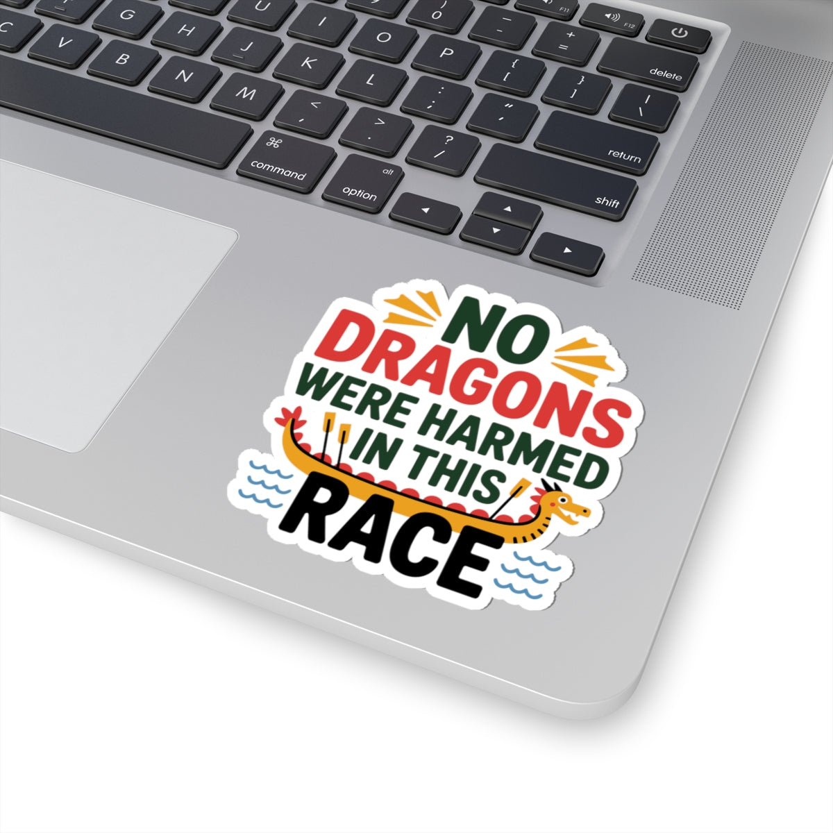 Add some fun to your gear with this playful Dragon Boat Racing sticker! Featuring the cheeky message "No Dragons Were Harmed In This Race," this vinyl decal is perfect for paddlers, teams, and festival-goers. A great way to show team spirit and share a laugh with fellow rowing enthusiasts.