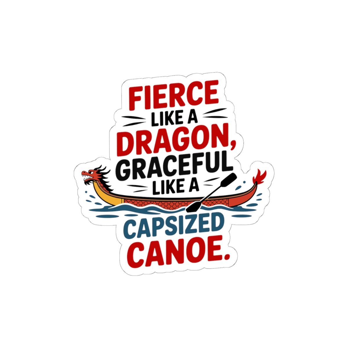 Embrace the glorious contradictions of Dragon Boat racing with this hilarious sticker! Featuring "Fierce Like a Dragon, Graceful Like a Capsized Canoe," this vinyl decal celebrates every paddler's journey from warrior to waterlogged - and back again. Perfect for crews who balance intensity with humility. Product features - Glossy paper finish for a scratch-resistant surface. - Long-lasting vinyl with a strong adhesive suitable for smooth flat surfaces. - Vibrant colors printed with eco-friendly inks for extraordinary brightness. - Available in white and transparent options, choose the perfect style. - Quick, smooth, and bubble-free application for easy decorating. Care instructions - Use a soft, clean and dry cloth to gently brush any dust or dirt off from the center of the sticker outwards.