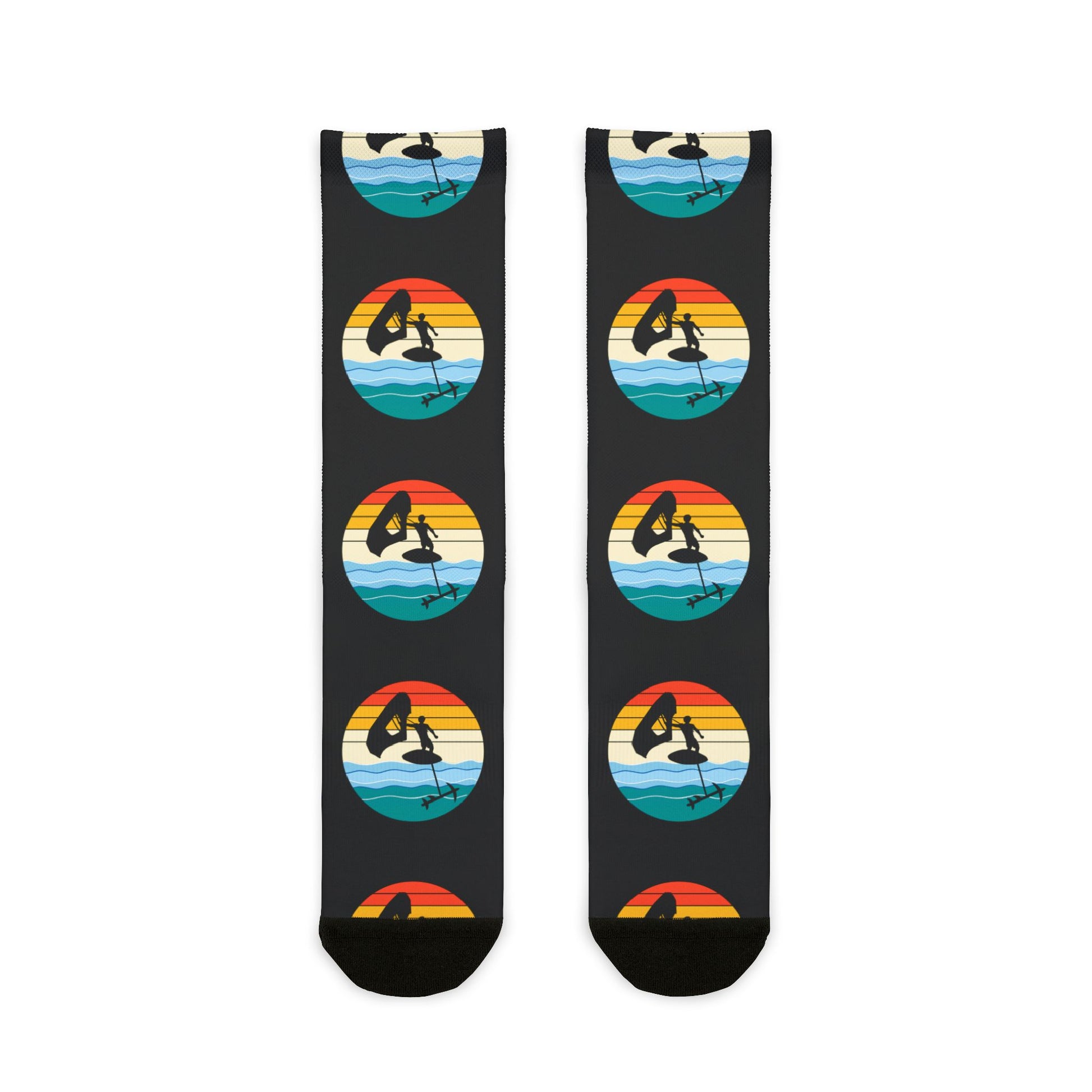 Wing Foiling Socks - Retro Sunset Design for Foil Riders