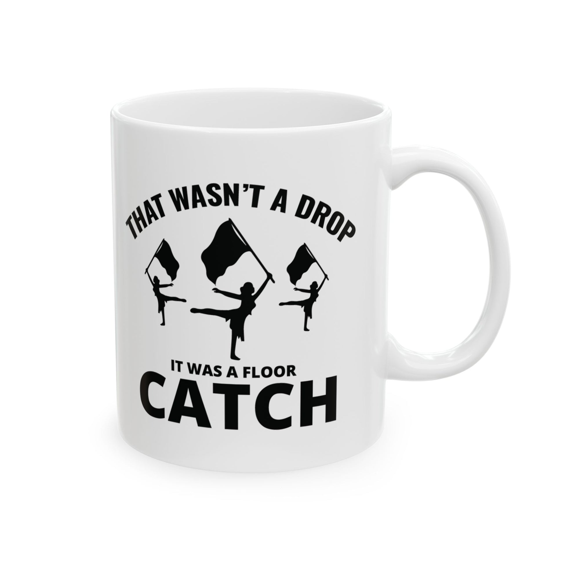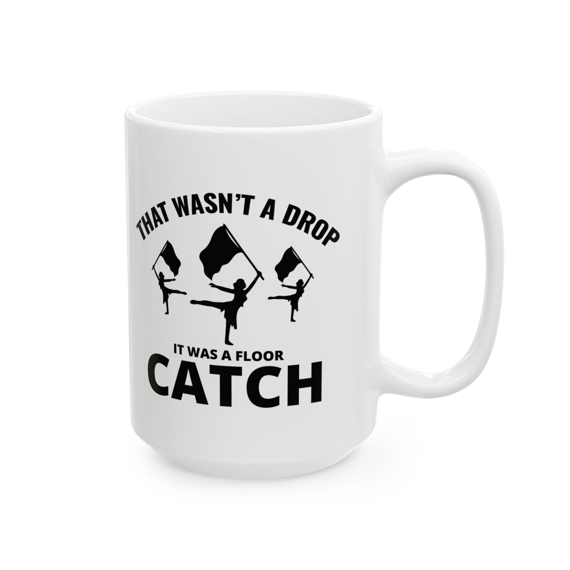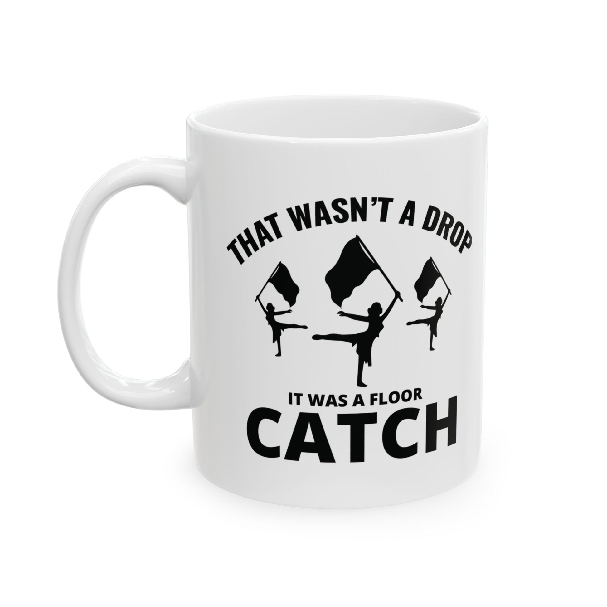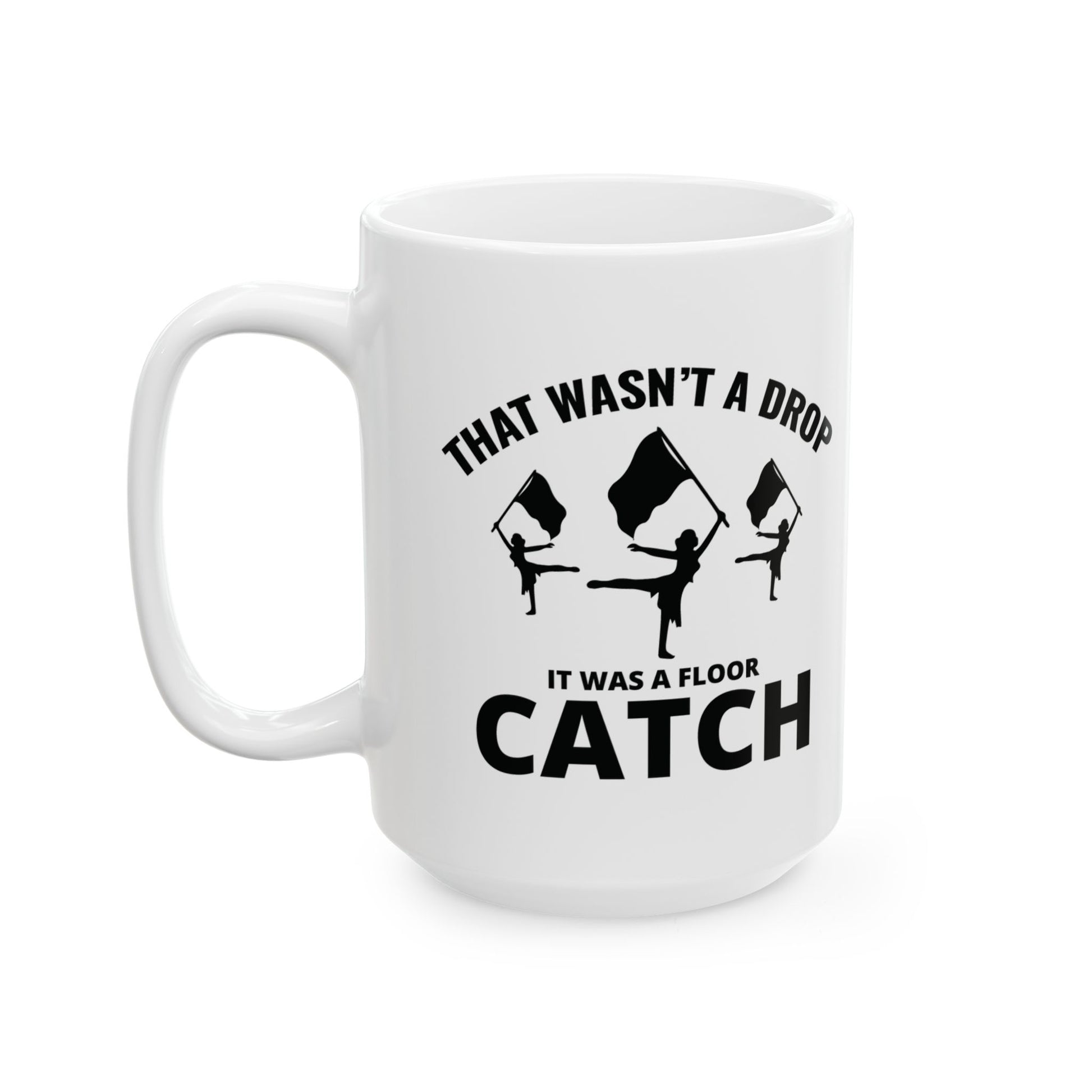 Celebrate the precision and dedication of Color Guard with this playful mug featuring a "That Wasn't a Drop, It Was a Floor Catch" design. Ideal for performers and fans, this mug highlights the skill and humor of Color Guard routines. Whether you're perfecting your moves or cheering on your team, this mug is a fun and spirited tribute to the art of Color Guard. Warm-up with a nice cuppa out of this customized ceramic coffee mug. It’s BPA and Lead-free, microwave & dishwasher-safe, and made of white, durable ceramic in 11-ounce and 15-ounce sizes. Thanks to the advanced printing tech, your designs come to life with incredibly vivid colors – the perfect gift for coffee, tea, and chocolate lovers. .: These mugs are made with durable white ceramic so that your prints can stand out. .: Available in two sizes: 11oz (0.33 l) and 15oz (0.44 l) .: All mugs feature a comfortable C-handle and a shiny finish so that they're both easy to use and great to look at. .: Drink confidently on a daily basis as all mugs are lead and BPA-free.