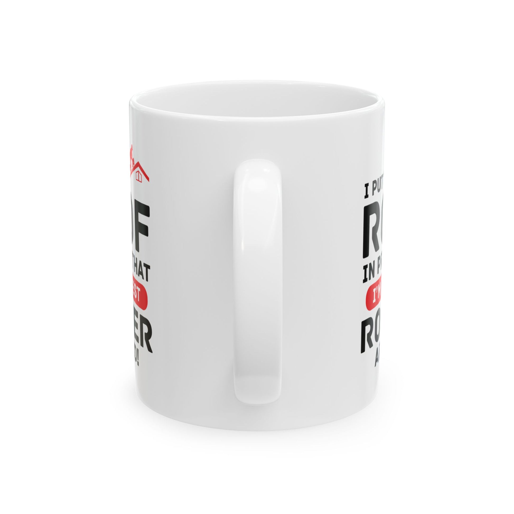 Showcase your roofing expertise with this bold, professionally designed mug featuring a confident statement about roofing craftsmanship. Designed specifically for dedicated roofing professionals who take pride in their skilled trade. Warm-up with a nice cuppa out of this customized ceramic coffee mug. It’s BPA and Lead-free, microwave & dishwasher-safe, and made of white, durable ceramic in 11-ounce and 15-ounce sizes. Thanks to the advanced printing tech, your designs come to life with incredibly vivid colors – the perfect gift for coffee, tea, and chocolate lovers. .: These mugs are made with durable white ceramic so that your prints can stand out. .: Available in two sizes: 11oz (0.33 l) and 15oz (0.44 l) .: All mugs feature a comfortable C-handle and a shiny finish so that they're both easy to use and great to look at. .: Drink confidently on a daily basis as all mugs are lead and BPA-free.