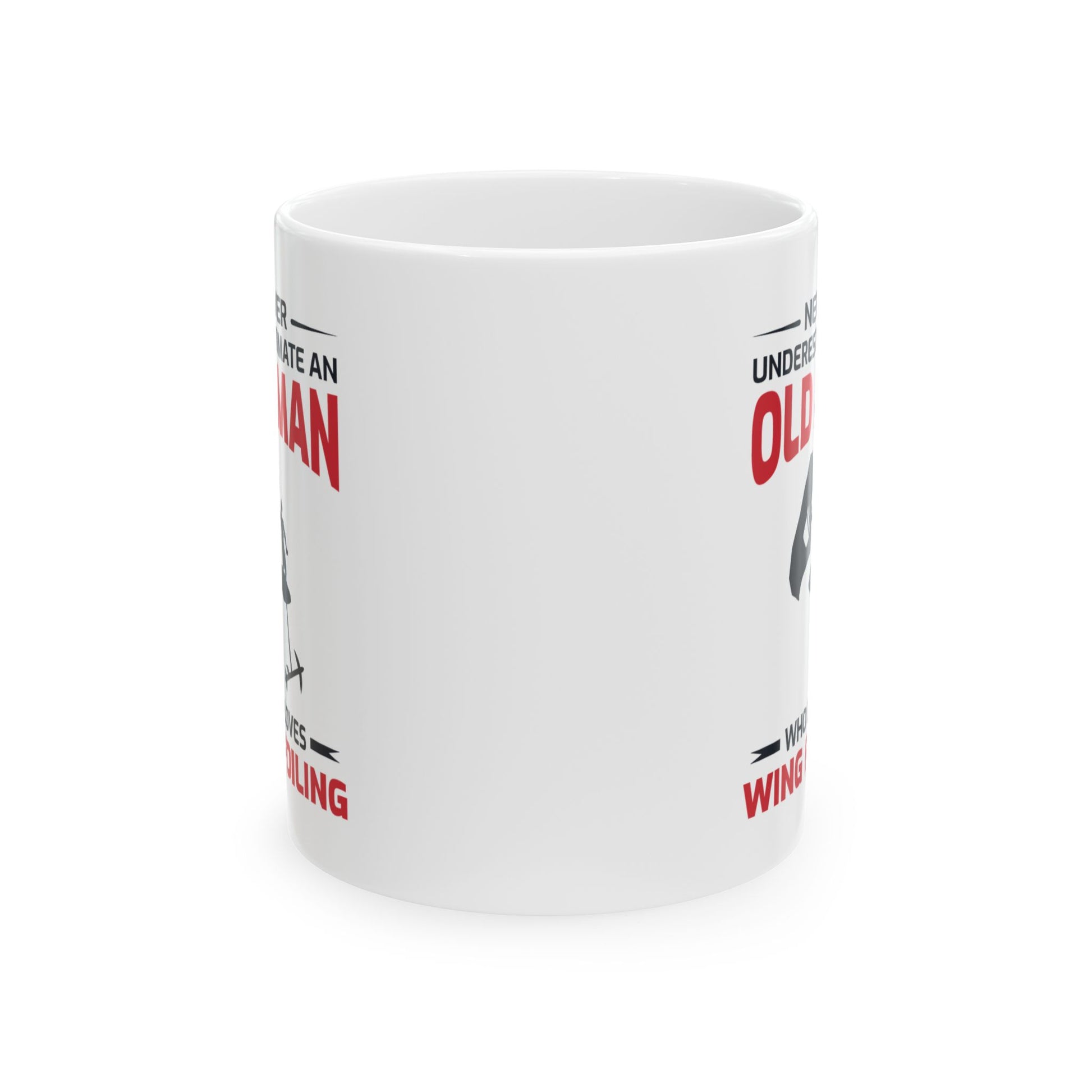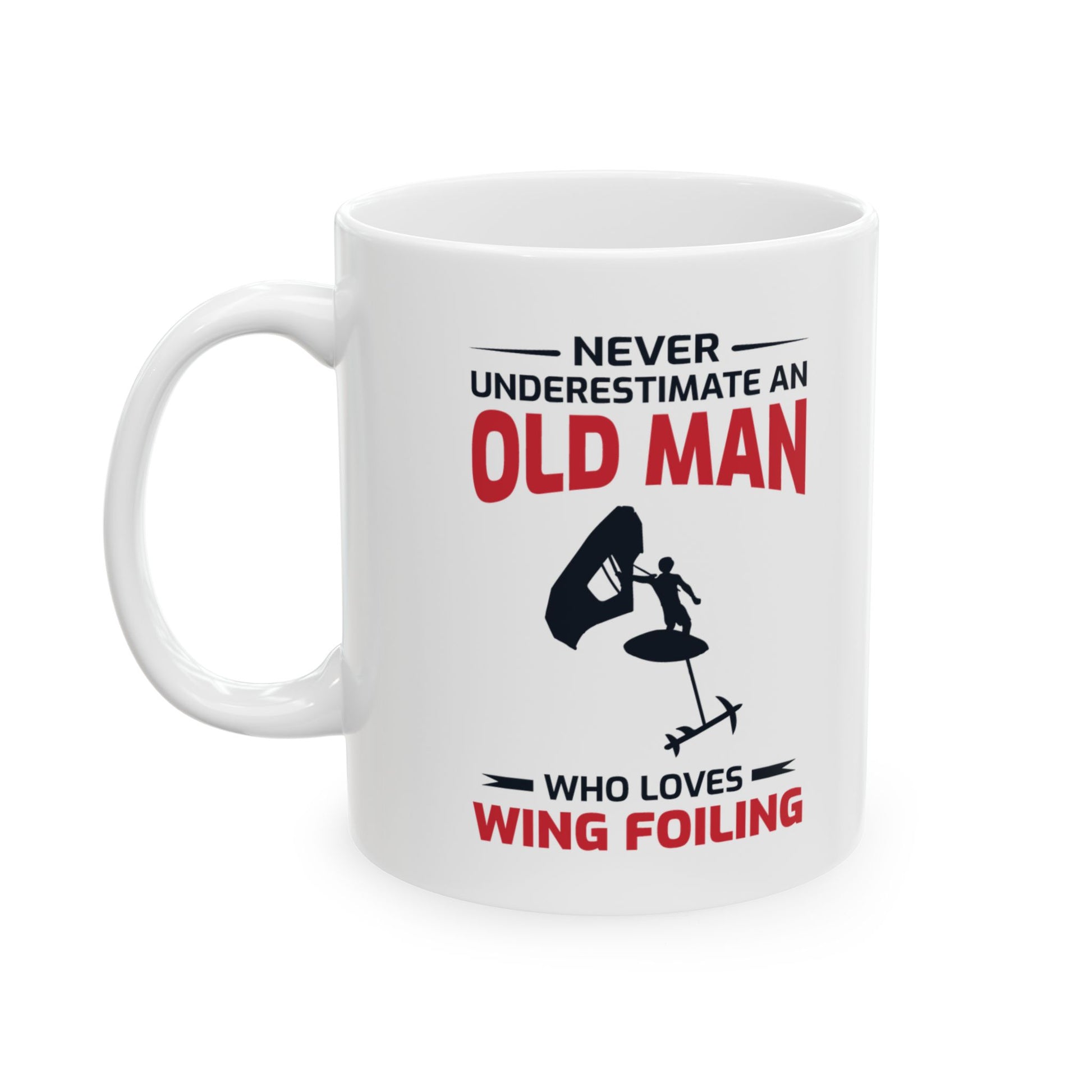 Celebrate the timeless spirit of wingfoiling with this bold design featuring a message that honors experienced wing foilers. This design showcases that age is just a number in the world of wind and water sports, highlighting the enduring passion of senior wing foiling enthusiasts. Warm-up with a nice cuppa out of this customized ceramic coffee mug. It’s BPA and Lead-free, microwave & dishwasher-safe, and made of white, durable ceramic in 11-ounce and 15-ounce sizes. Thanks to the advanced printing tech, your designs come to life with incredibly vivid colors – the perfect gift for coffee, tea, and chocolate lovers. .: These mugs are made with durable white ceramic so that your prints can stand out. .: Available in two sizes: 11oz (0.33 l) and 15oz (0.44 l) .: All mugs feature a comfortable C-handle and a shiny finish so that they're both easy to use and great to look at. .: Drink confidently on a daily basis as all mugs are lead and BPA-free.