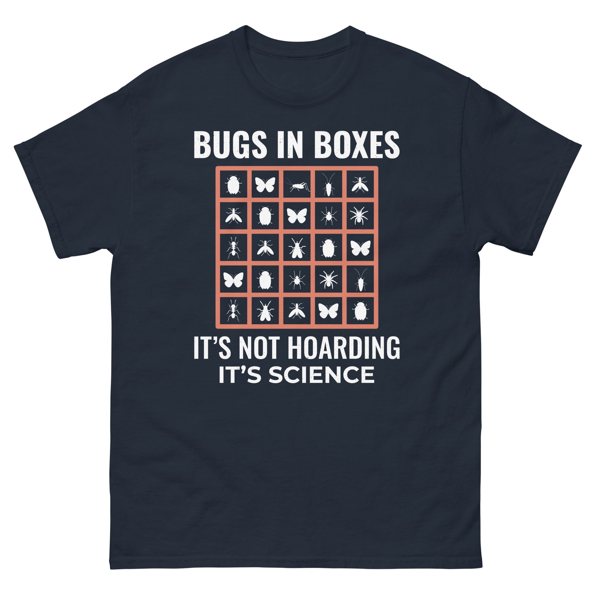 Show off your passion for insect collecting with the witty "Bugs in Boxes: It’s Not Hoarding, It’s Science!" T-shirt. Perfect for entomologists and bug lovers, this design celebrates the art and science of insect collection.