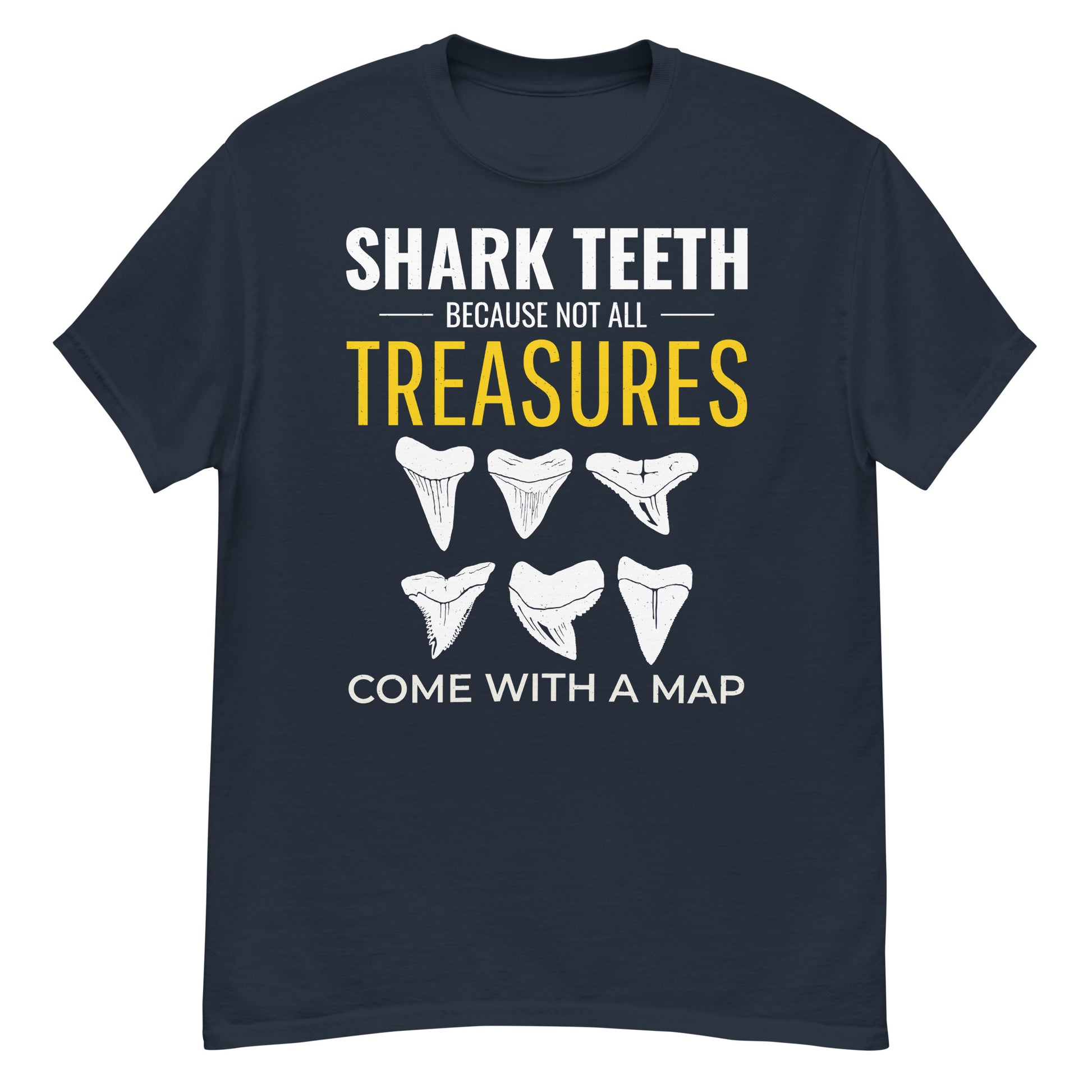 Celebrate the mystery of the ocean with our Shark Teeth T-Shirt. This unique design highlights the allure of shark teeth, showcasing that not all treasures come with a map. Perfect for marine enthusiasts and fossil collectors.
