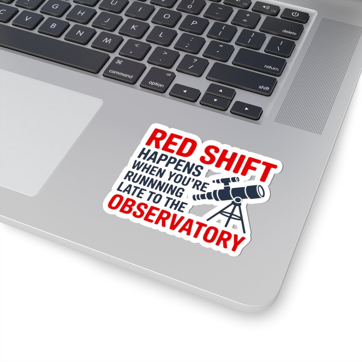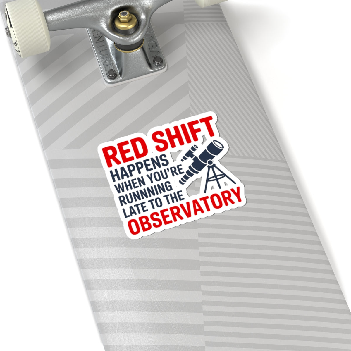 A cosmic twist on running late! This witty astronomy sticker turns the Doppler effect into an excuse for tardy stargazers. Perfect for astrophysicists, observatory staff, and anyone who blames redshift for their poor timekeeping.