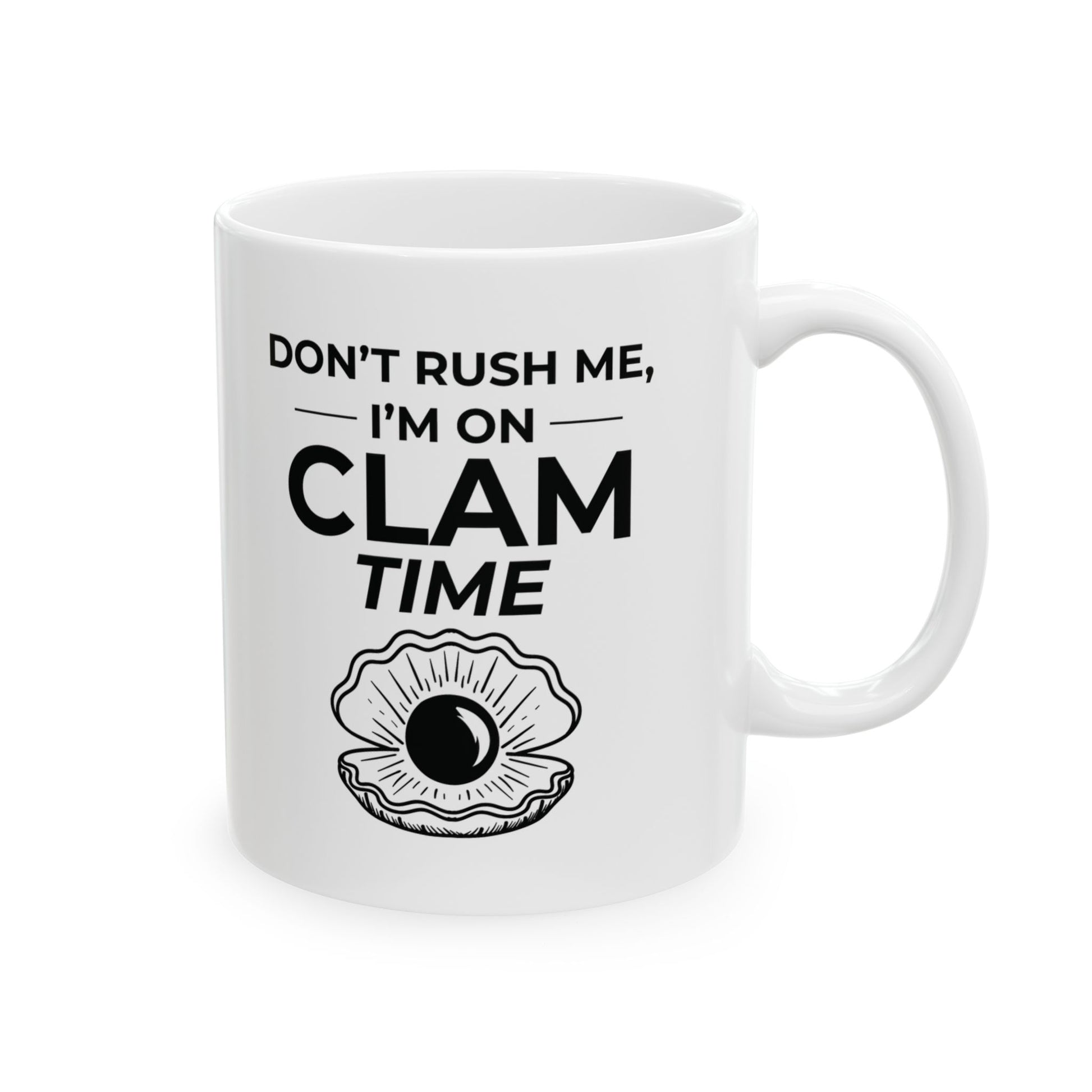 Clam Time Mug, Funny Beach Quote, Relaxed Ocean Gift