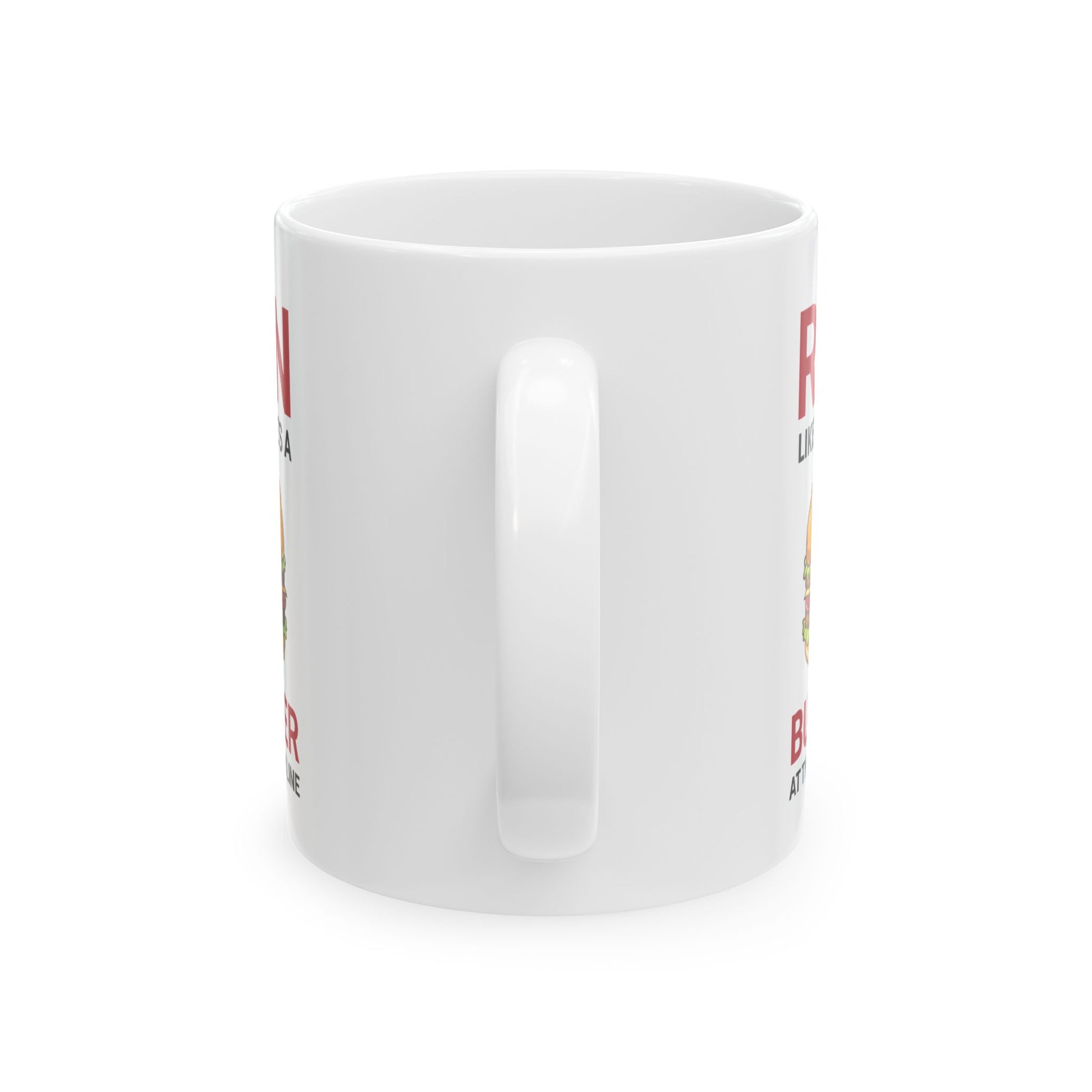 Running Mug - Funny Runner Gift, Burger Lover, Marathon Motivation