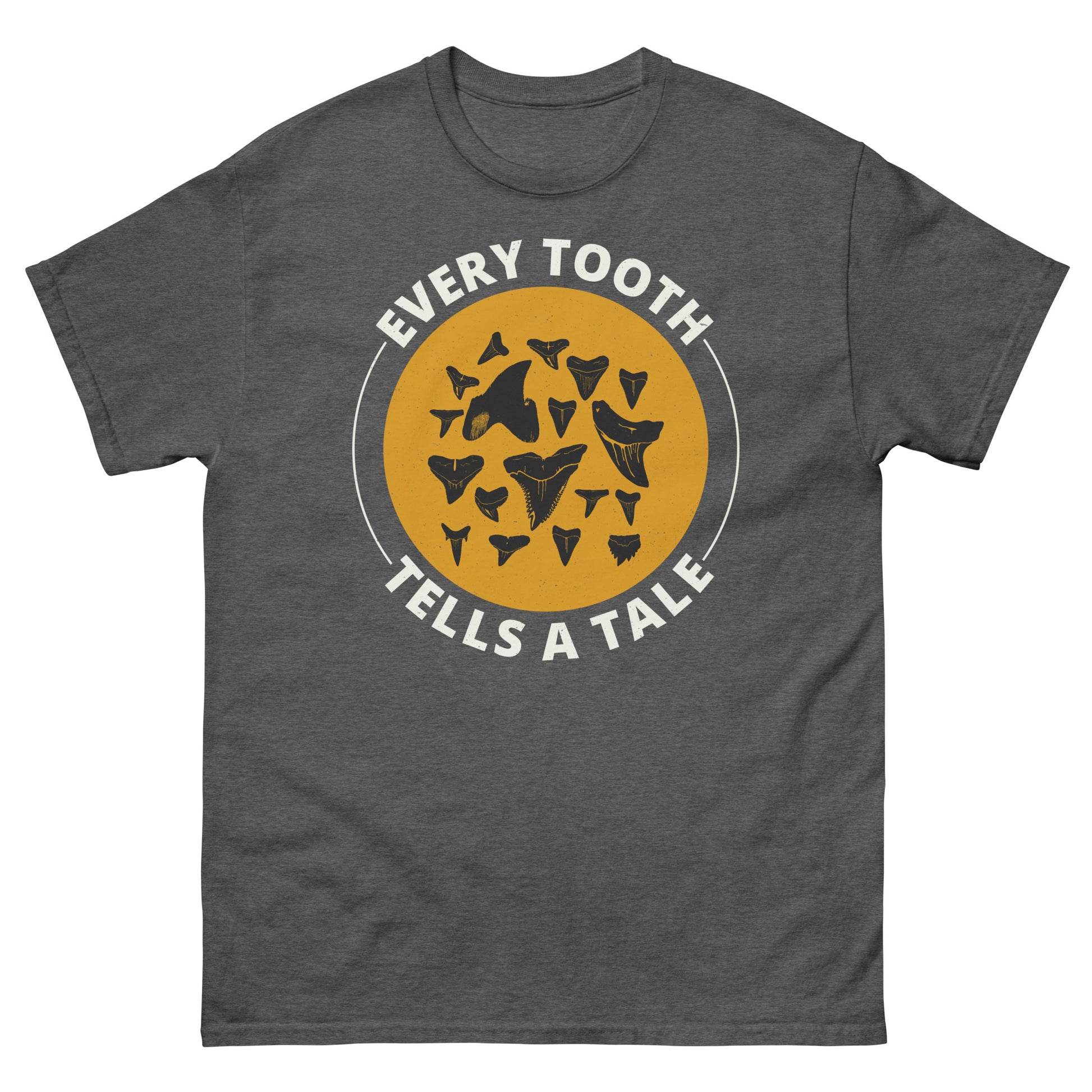 Embrace the stories of the deep with our Shark Teeth T-Shirt. Featuring a design that highlights the narrative behind each tooth, this shirt is perfect for ocean enthusiasts and fossil collectors.