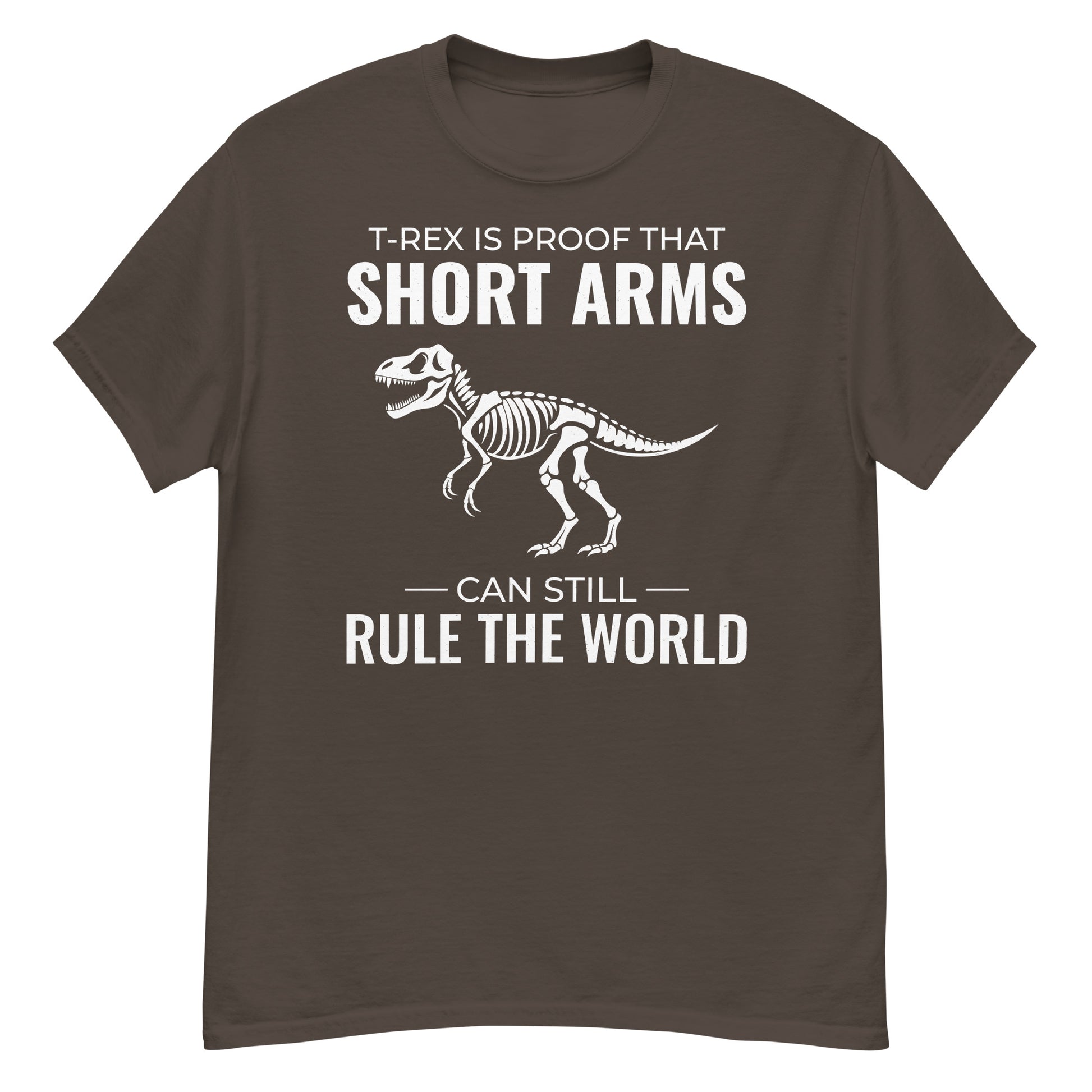Celebrate the mighty T. Rex with this witty Paleontologist T-Shirt. Featuring the phrase "T. Rex: Proof that short arms can still rule the world," this shirt is perfect for dinosaur enthusiasts and fans of the king of the Cretaceous.
