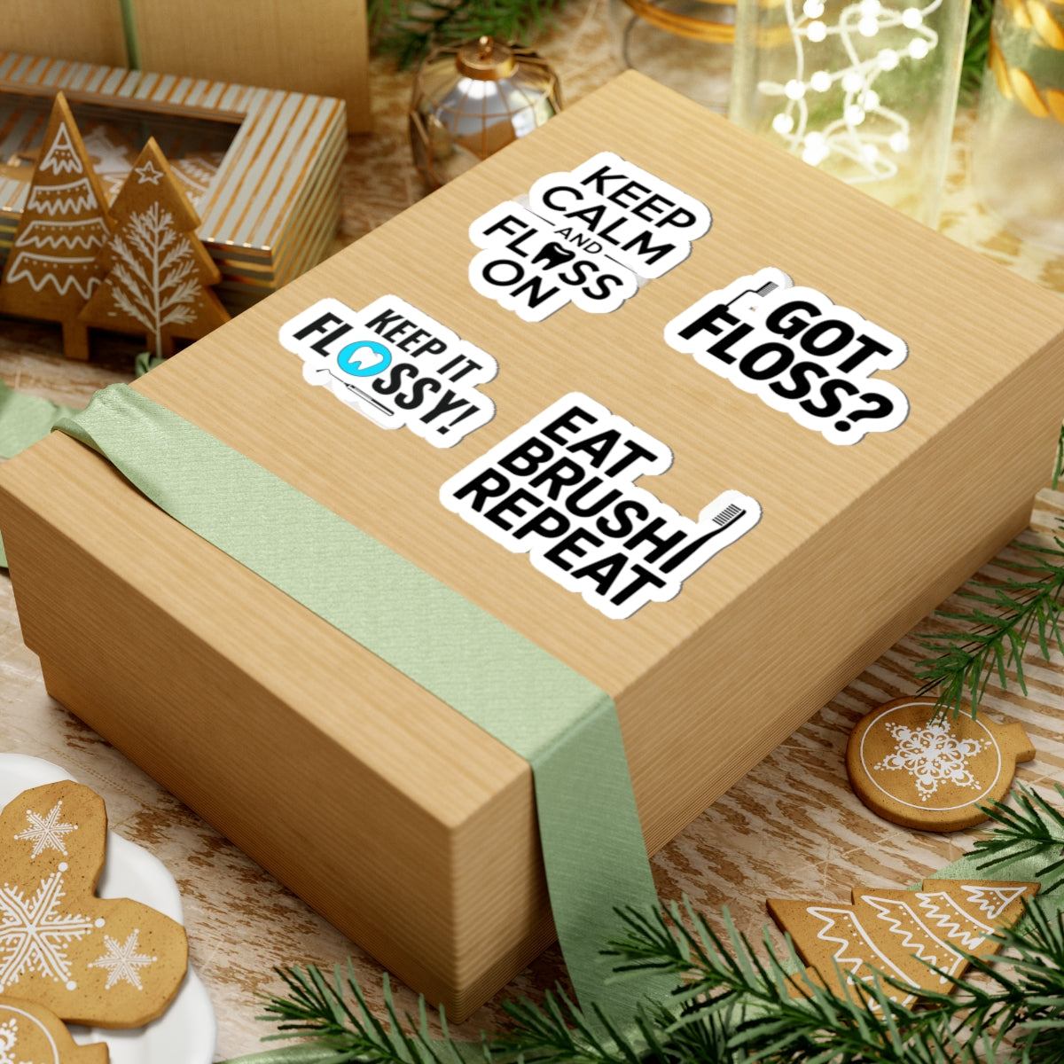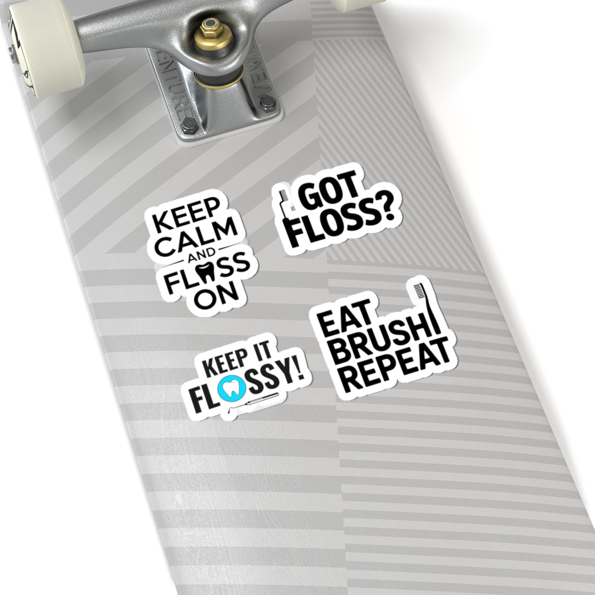 Upgrade your dental practice with this 4-piece floss-themed sticker pack, featuring hygiene motivation and dental humor. This set includes "Keep Calm and Floss On," "Got Floss?," "Keep It Flossy," and "Eat. Brush. Repeat."—perfect for dental hygienists, assistants, and dentists to decorate operatories, tools, or patient education materials. These vinyl decals blend professionalism with playful messaging, ideal for team morale, dental student gifts, or clinic branding.