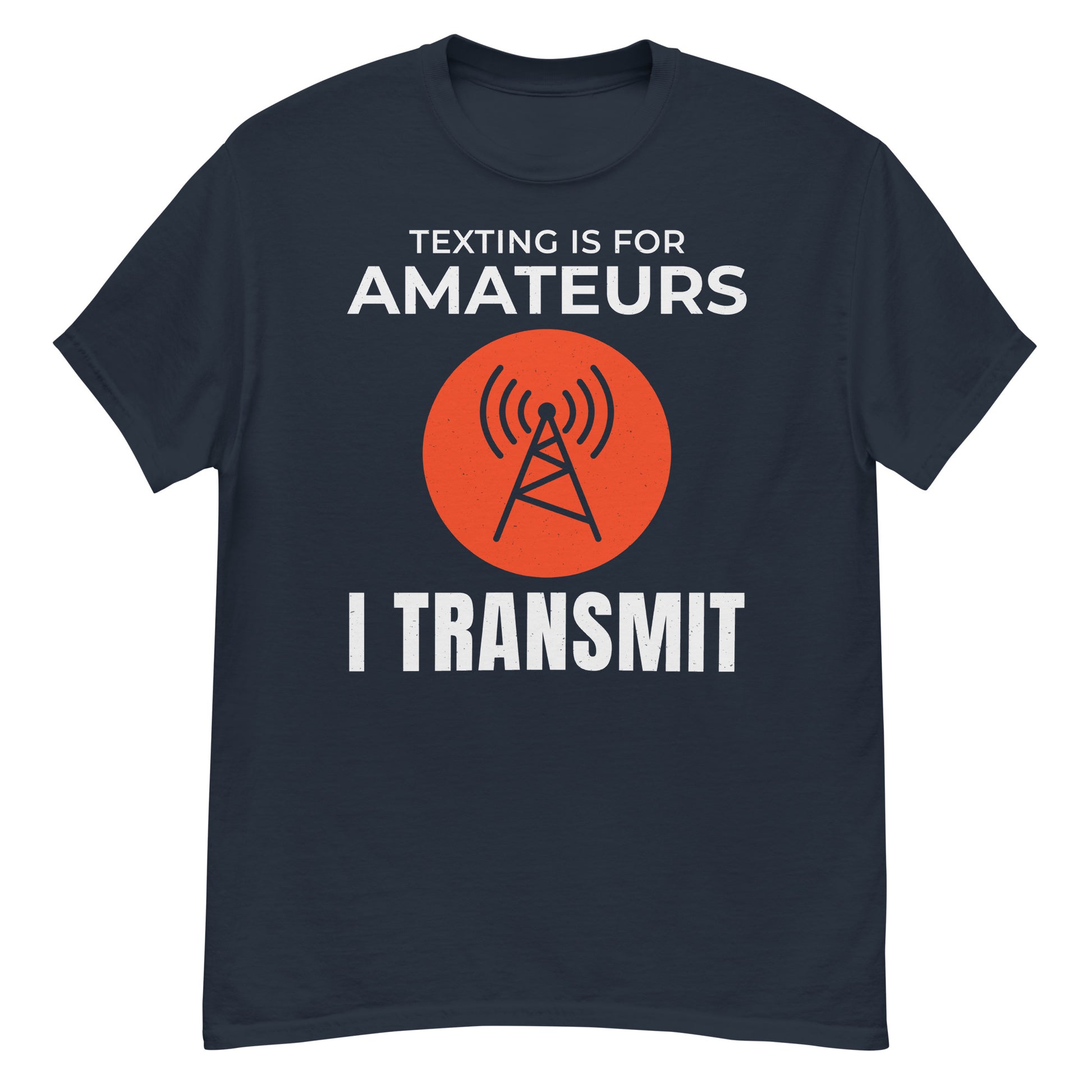 Showcase your passion for ham radio with our "Texting is for Amateurs, I Transmit" Ham Radio T-Shirt. Perfect for dedicated ham operators who prefer transmitting over texting. Ideal for enthusiasts who value the art of radio communication.