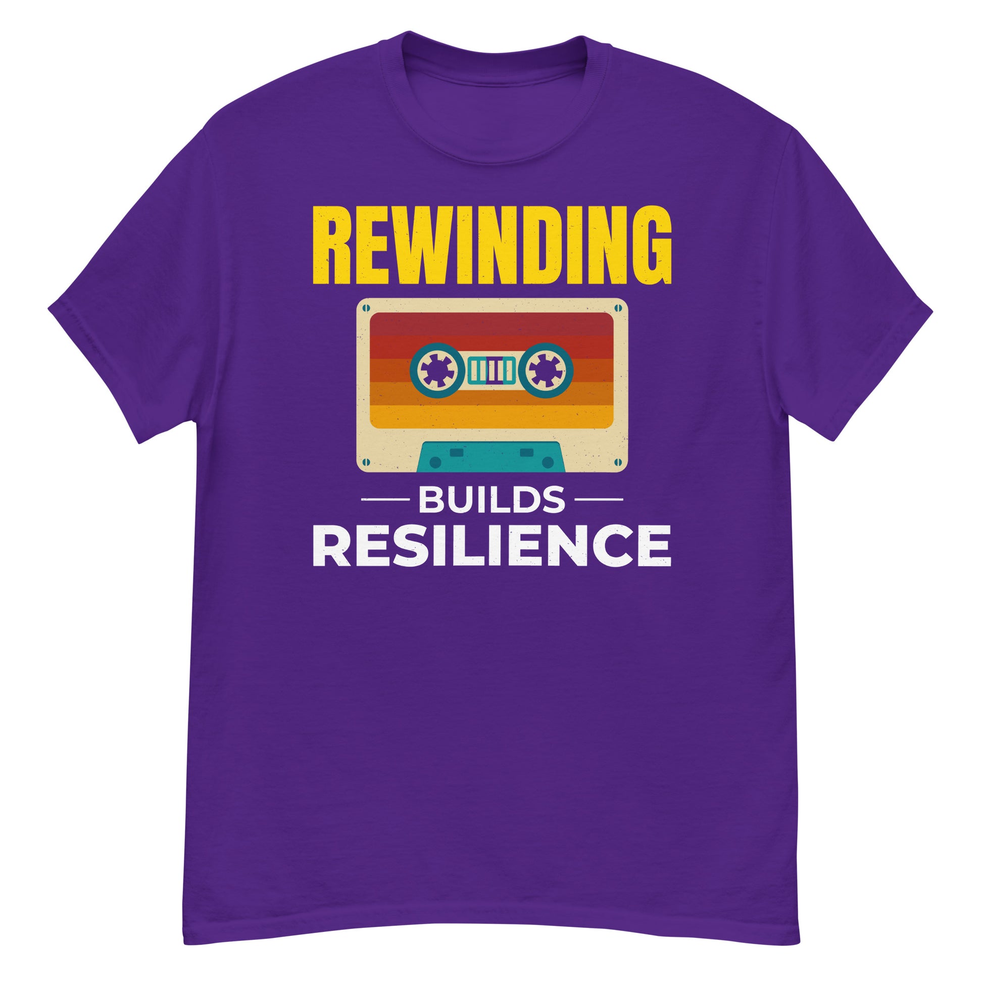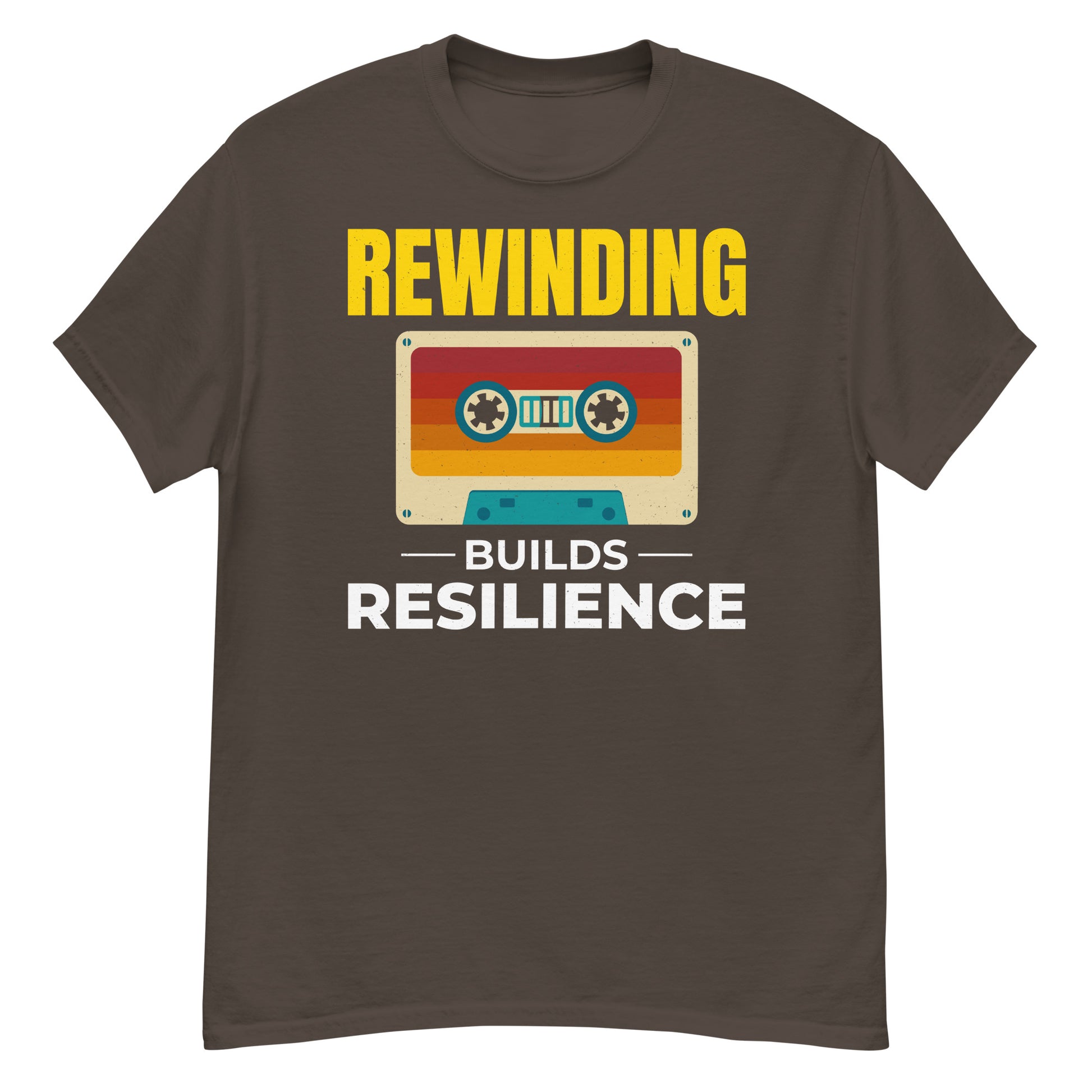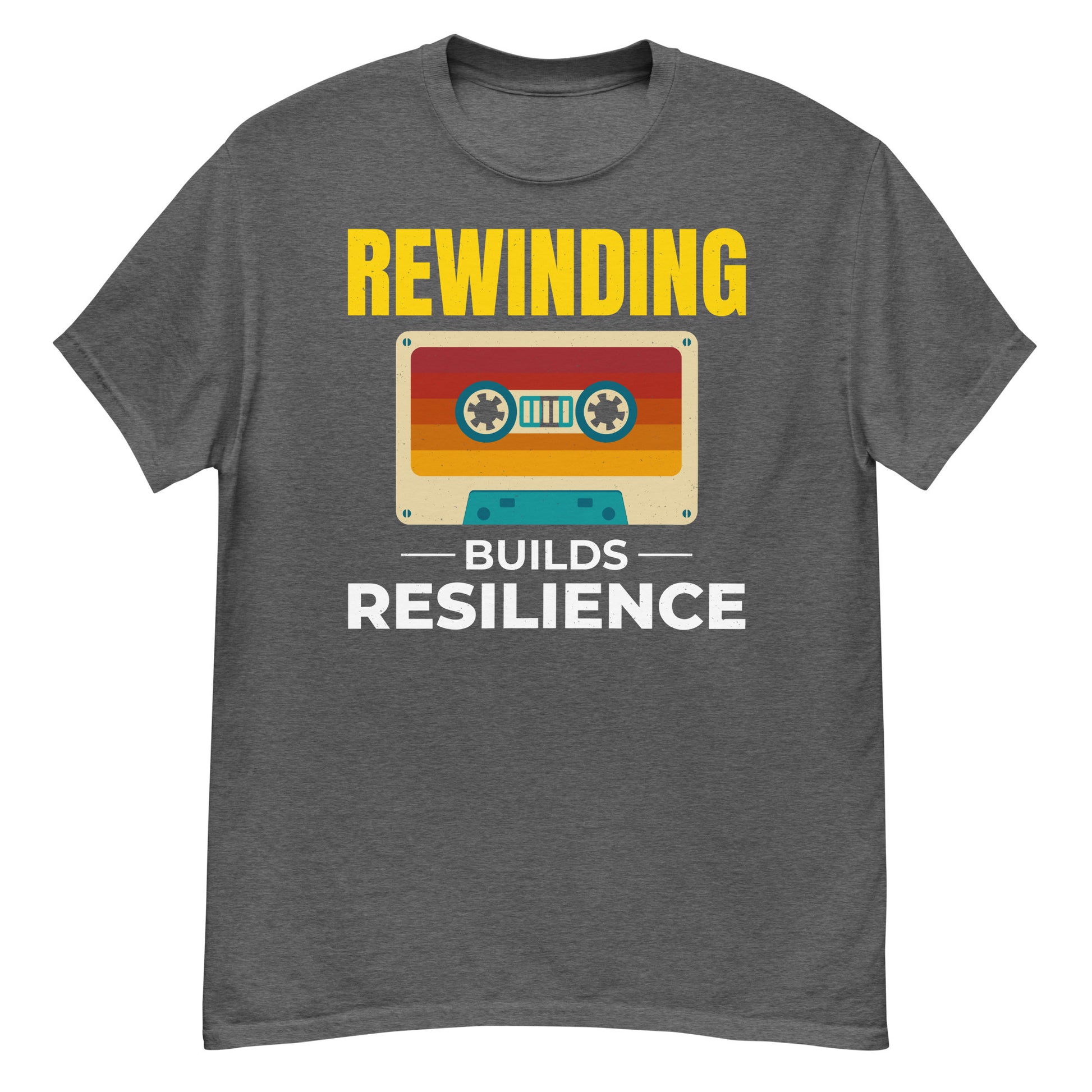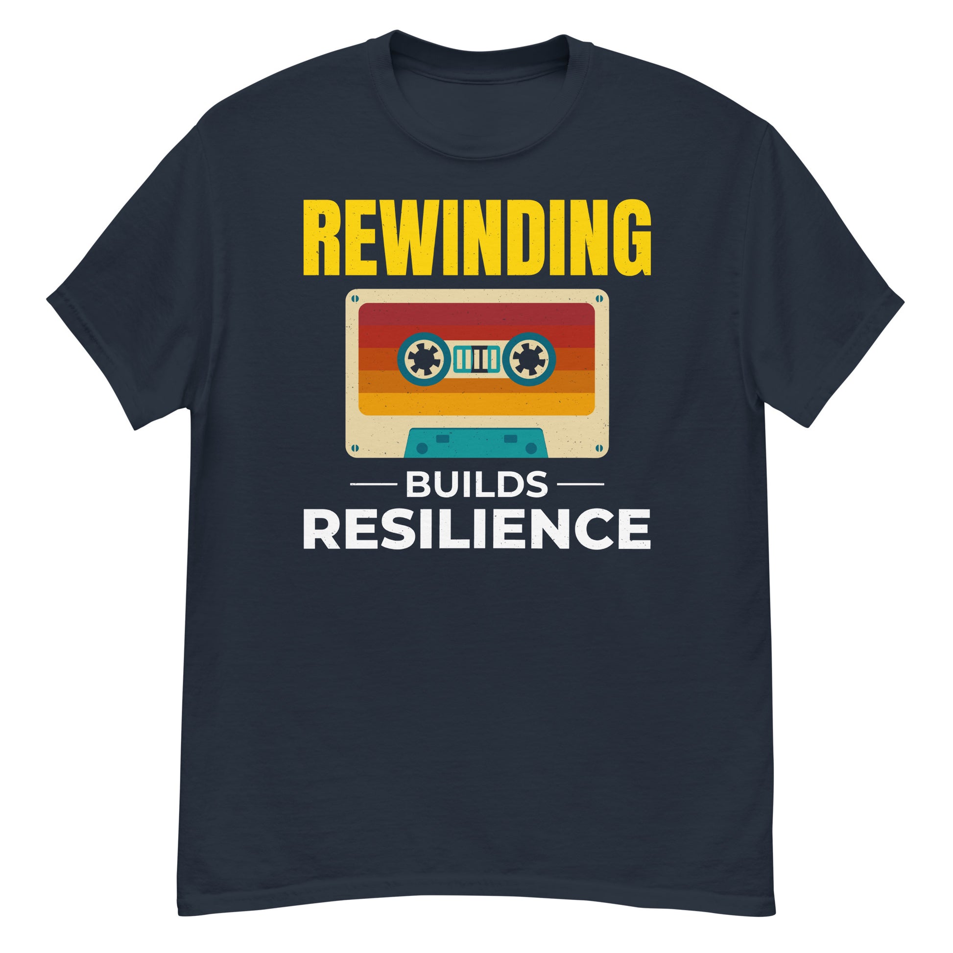 Celebrate the resilience and nostalgia of the cassette tape era with our "Rewinding: Builds Resilience" T-Shirt. Perfect for music lovers and retro enthusiasts, this shirt captures the essence of patience and determination that comes with manually rewinding tapes.