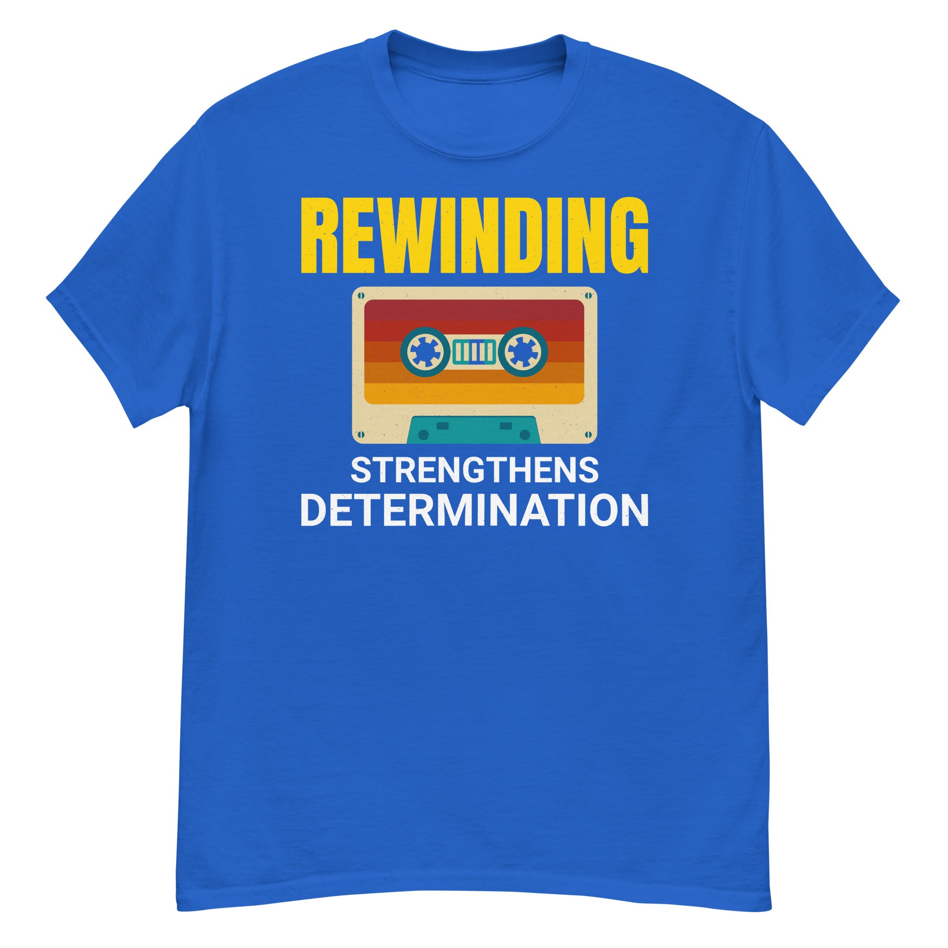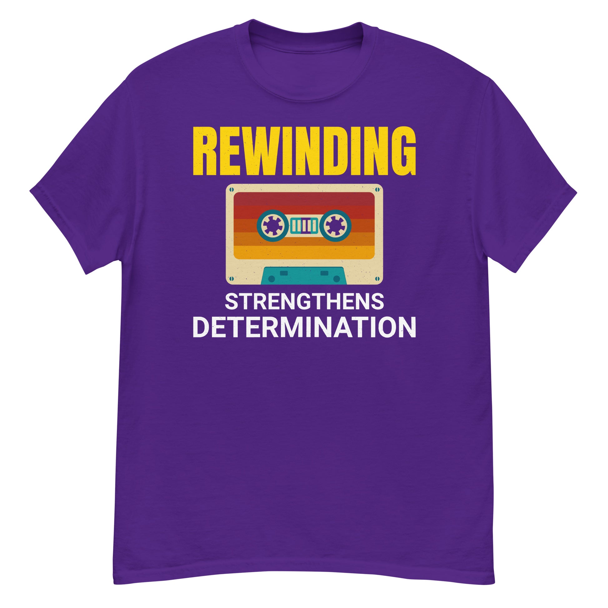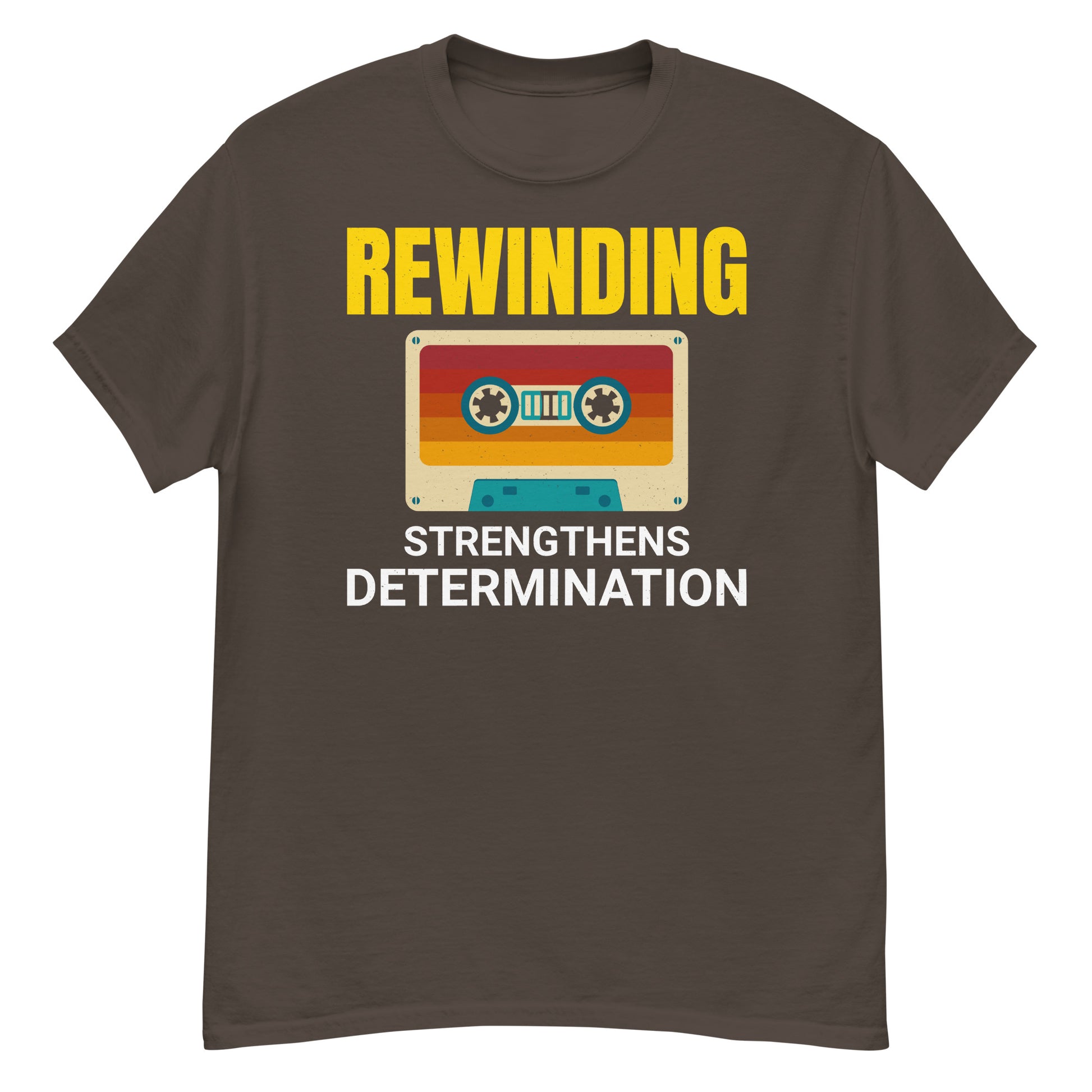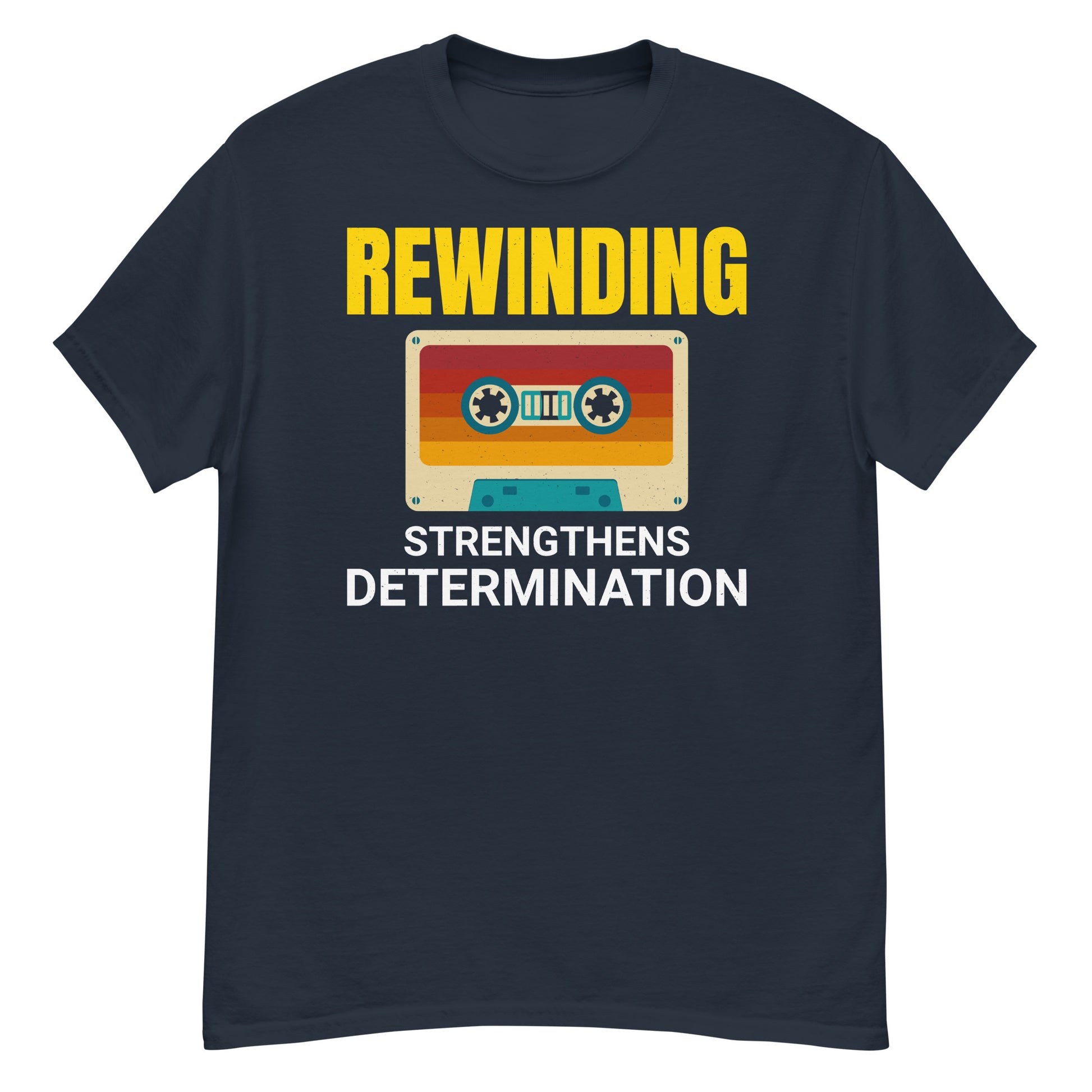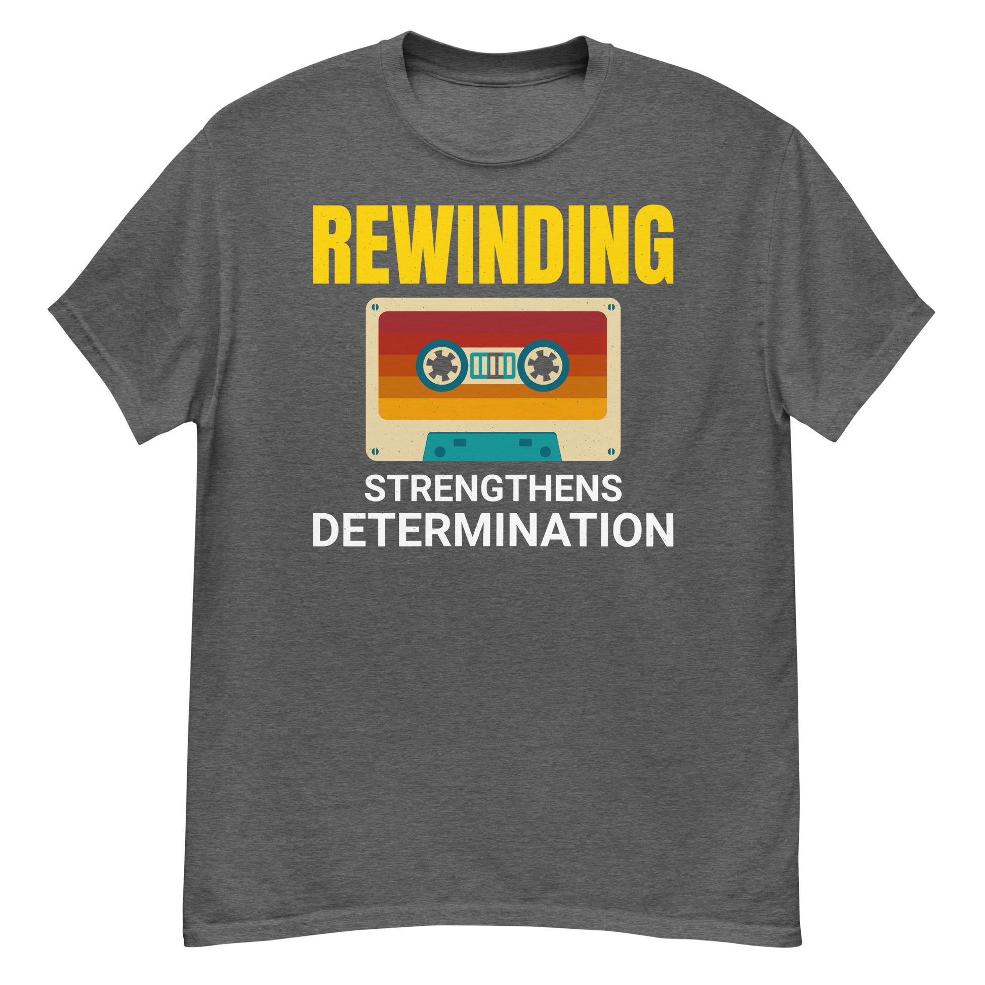 Celebrate the determination and nostalgia of the cassette tape era with our "Rewinding: Strengthens Determination" T-Shirt. Perfect for music lovers and retro enthusiasts, this shirt embodies the persistence and patience required to rewind tapes, capturing a sense of commitment and nostalgia.