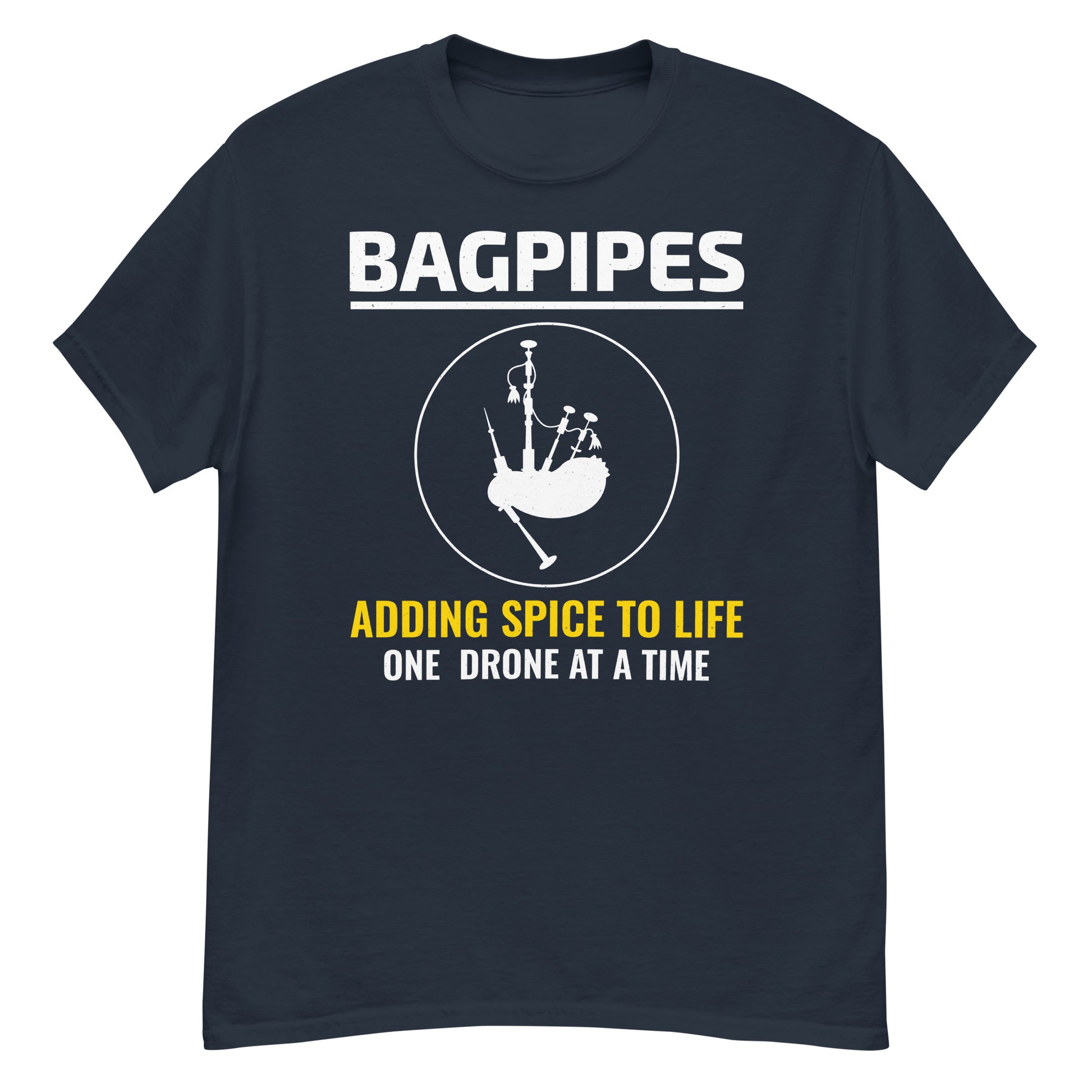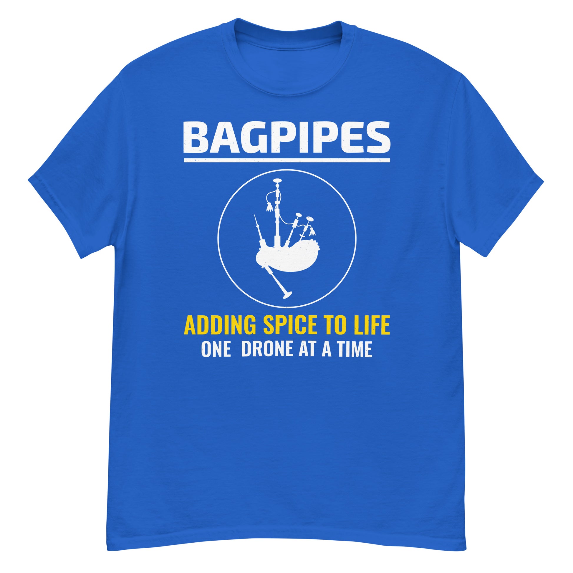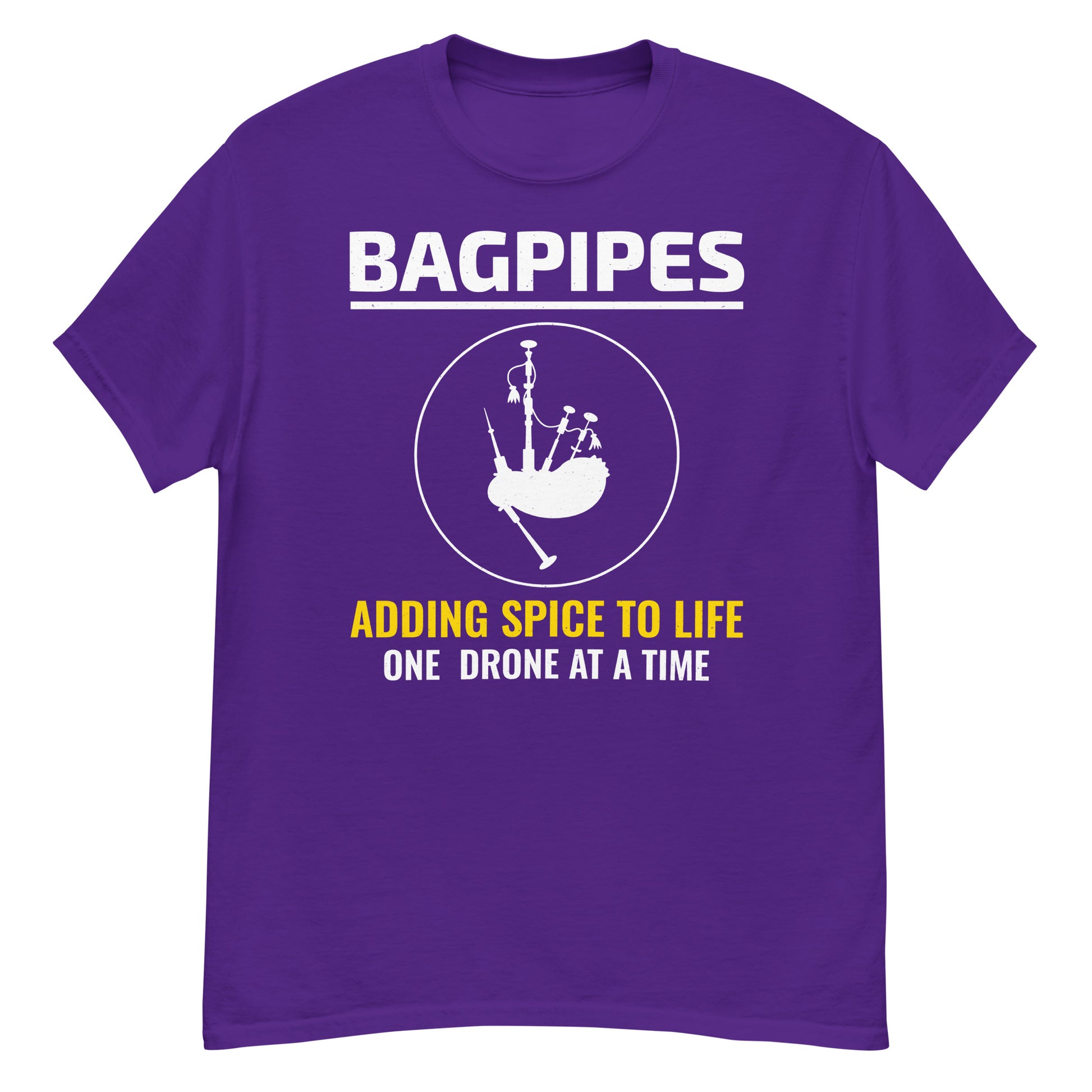 Adopte el espíritu animado de Escocia con nuestra camiseta "Gaitas: agregando sabor a la vida, un zumbido a la vez". Con un diseño vibrante de gaitas, esta camiseta es perfecta para quienes aman la rica cultura y música de Escocia.