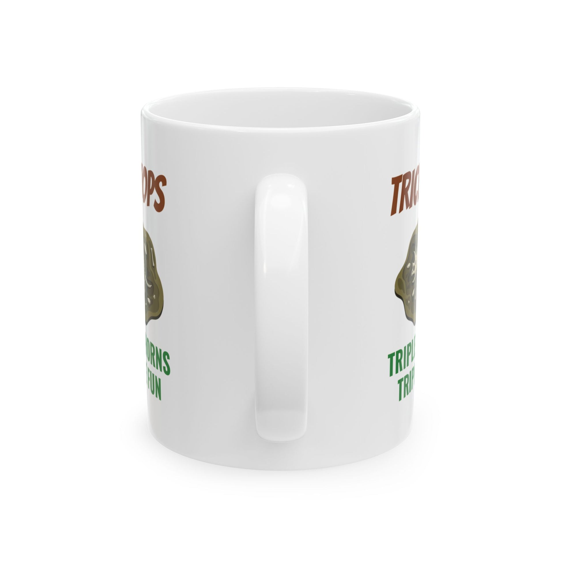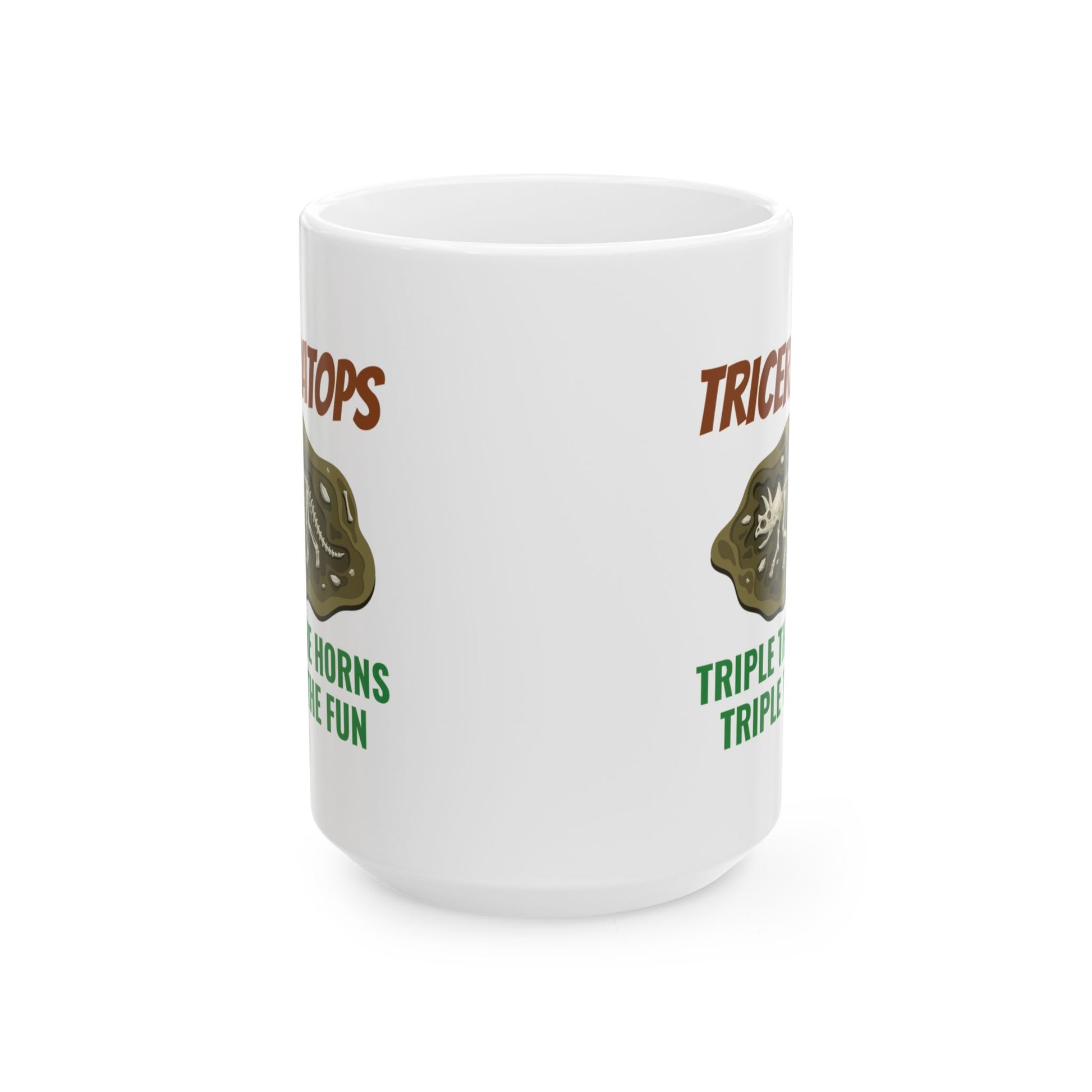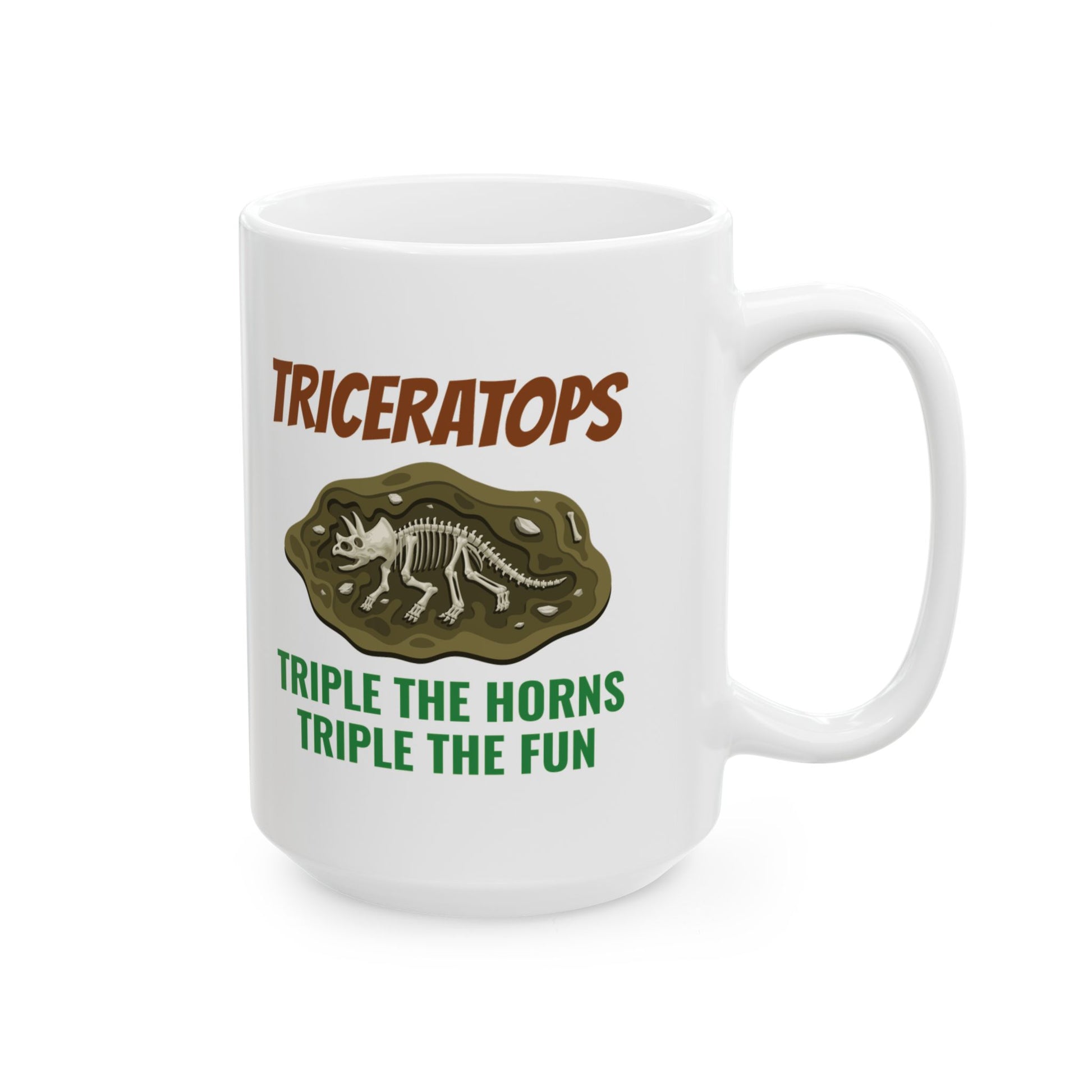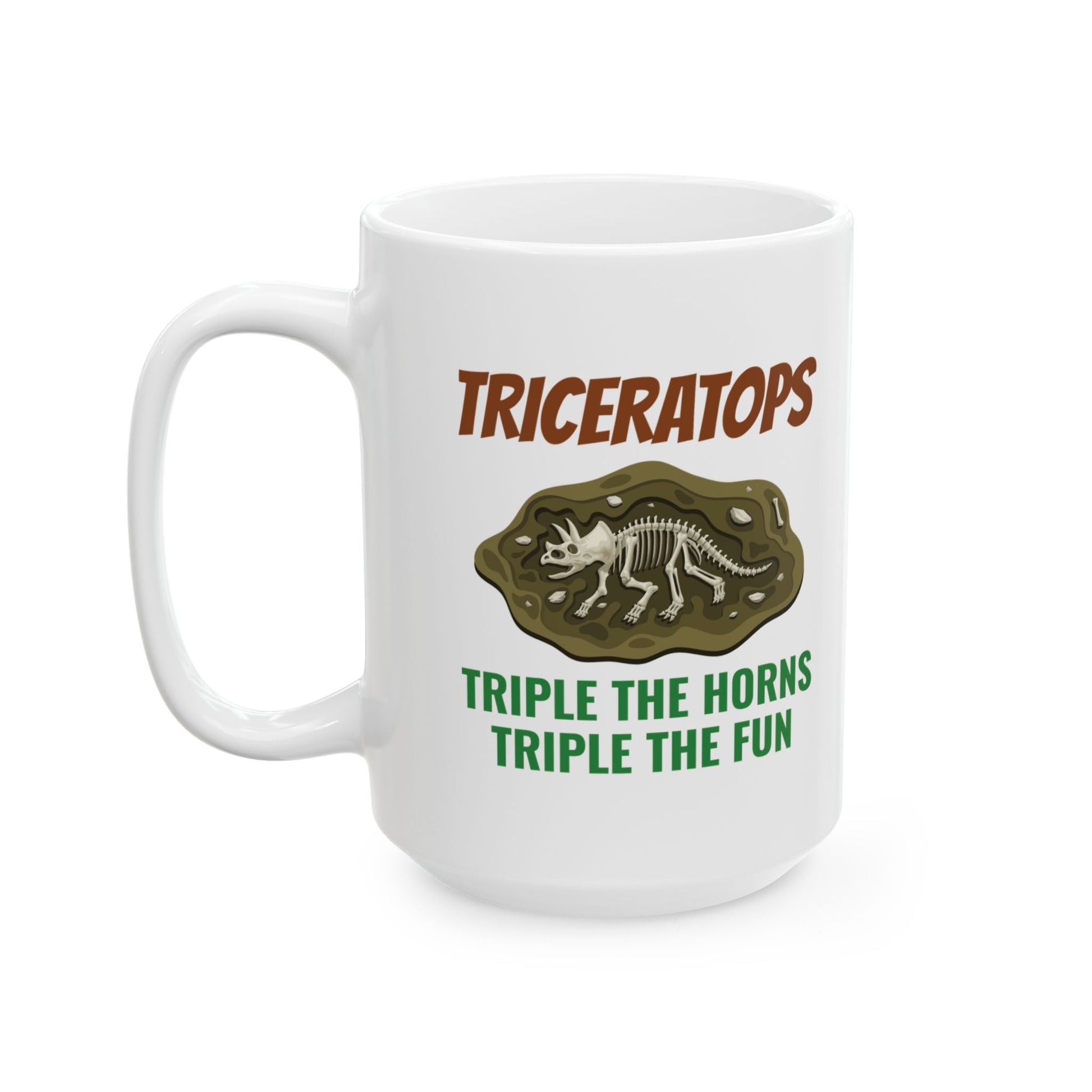 Esta llamativa taza de Triceratops presenta un detallado diseño de impresión fósil con la divertida frase "TRICERATOPS: TRIPLE CUERNOS, TRIPLE DIVERSIÓN" en letras marrones y verdes. La pieza central muestra un esqueleto de Triceratops meticulosamente reproducido, incrustado en una formación rocosa sedimentaria realista, que resalta el distintivo cráneo de tres cuernos y el volante que hicieron famoso a este herbívoro. Perfecta para paleontólogos, coleccionistas de fósiles y entusiastas del Cretácico. Disfruta de una deliciosa taza de café en esta taza de cerámica personalizada. No contiene BPA ni plomo, es apta para microondas y lavavajillas, y está hecha de cerámica blanca resistente en tamaños de 325 y 440 ml. Gracias a la avanzada tecnología de impresión, tus diseños cobran vida con colores increíblemente vivos: el regalo perfecto para los amantes del café, el té y el chocolate. Estas tazas están hechas de cerámica blanca resistente para que tus impresiones destaquen. .: Disponible en dos tamaños: 11 oz (0,33 l) y 15 oz (0,44 l) .: Todas las tazas cuentan con un cómodo asa en forma de C y un acabado brillante para que sean fáciles de usar y agradables a la vista. .: Beba con confianza todos los días ya que todas las tazas están libres de plomo y BPA.