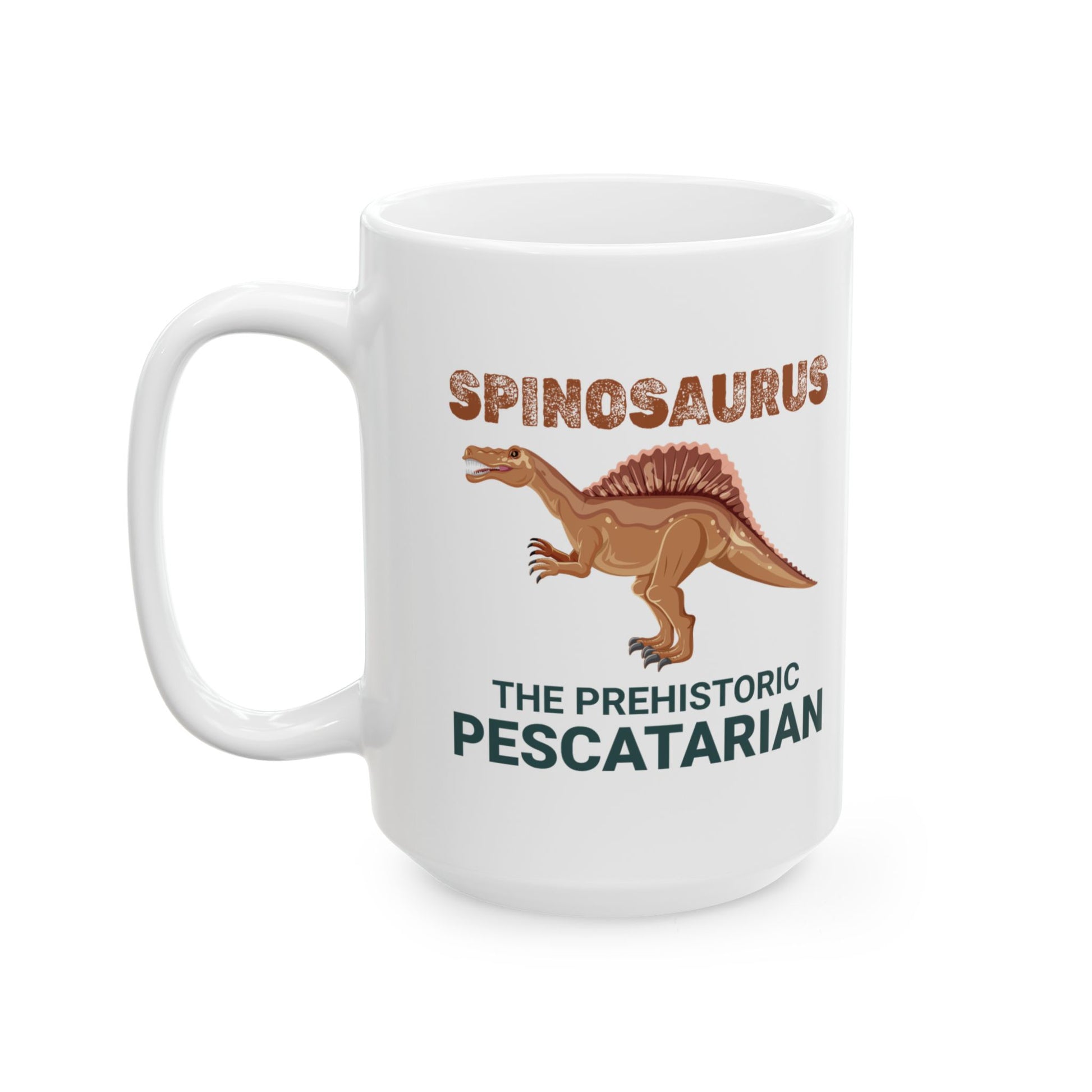 Taza con fósil de dinosaurio Spinosaurus, diseño pescatariano para amantes de la paleontología