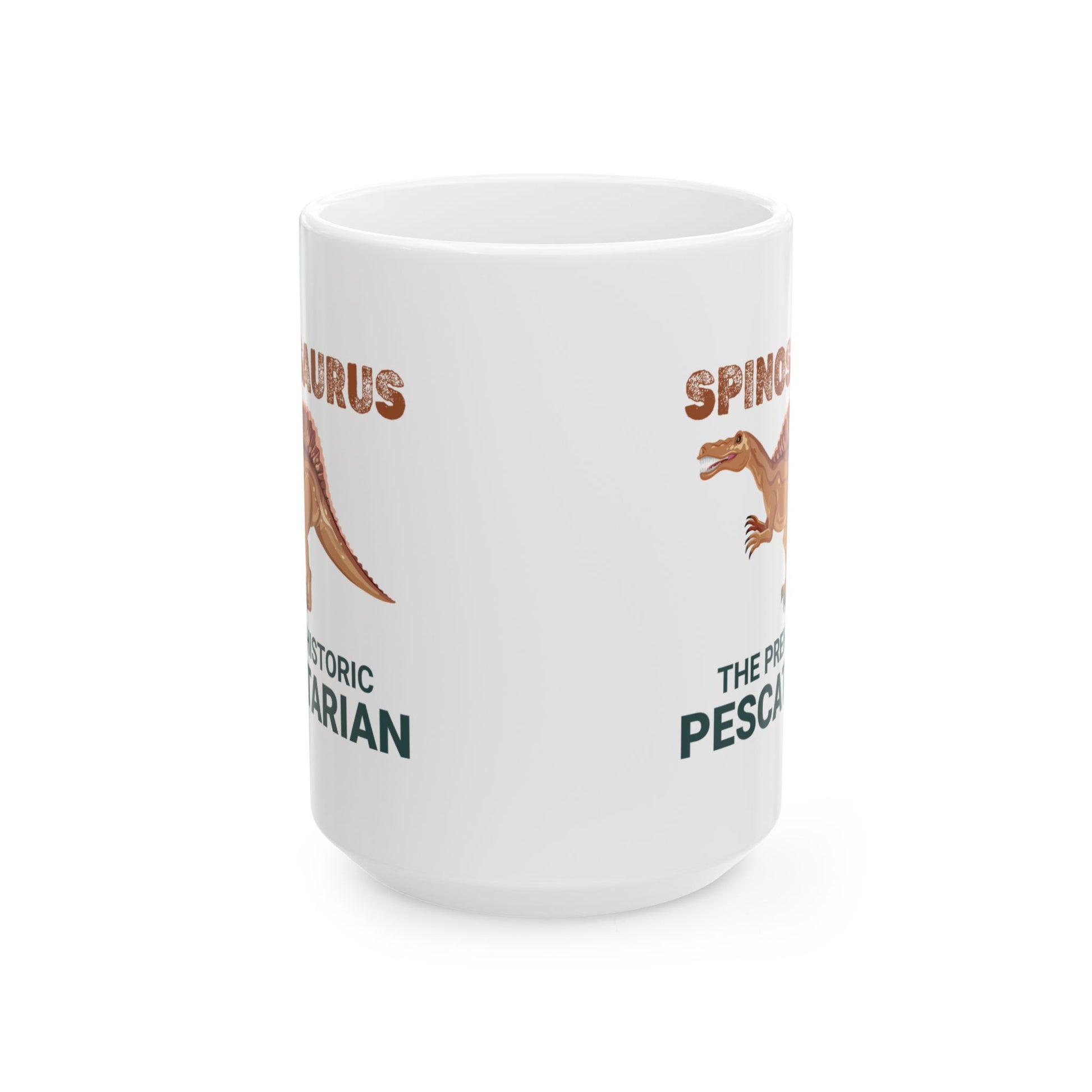 Demuestra tu conocimiento sobre dinosaurios con esta ingeniosa taza del Spinosaurus con la imagen "El Pescatariano Prehistórico". Perfecta para paleontólogos, coleccionistas de fósiles y entusiastas de los dinosaurios que aprecian las adaptaciones de este terópodo único para la pesca. La ilustración resalta la distintiva vela y las características depredadoras del Spinosaurus, que lo convirtieron en uno de los dinosaurios semiacuáticos más fascinantes del Cretácico. Disfruta de una deliciosa taza de café en esta taza de cerámica personalizada. Está libre de BPA y plomo, es apta para microondas y lavavajillas, y está hecha de cerámica blanca resistente en tamaños de 325 y 440 ml. Gracias a la avanzada tecnología de impresión, tus diseños cobran vida con colores increíblemente vivos: el regalo perfecto para los amantes del café, el té y el chocolate. Estas tazas están hechas de cerámica blanca resistente para que tus impresiones destaquen. .: Disponible en dos tamaños: 11 oz (0,33 l) y 15 oz (0,44 l) .: Todas las tazas cuentan con un cómodo asa en forma de C y un acabado brillante para que sean fáciles de usar y agradables a la vista. .: Beba con confianza todos los días ya que todas las tazas están libres de plomo y BPA.