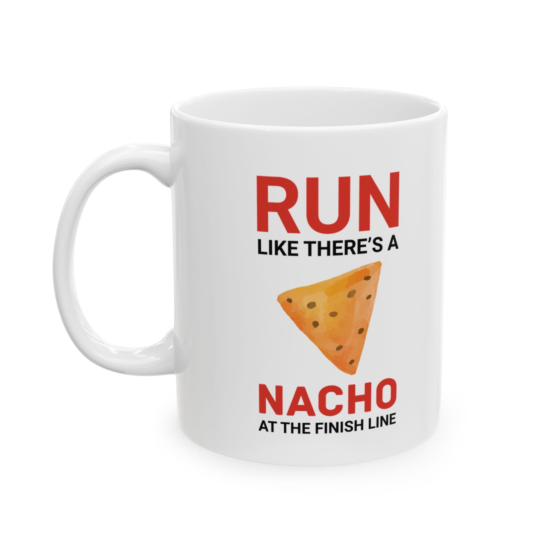 Taza para correr: regalo divertido para corredores, amantes de los nachos y motivación para maratones.
