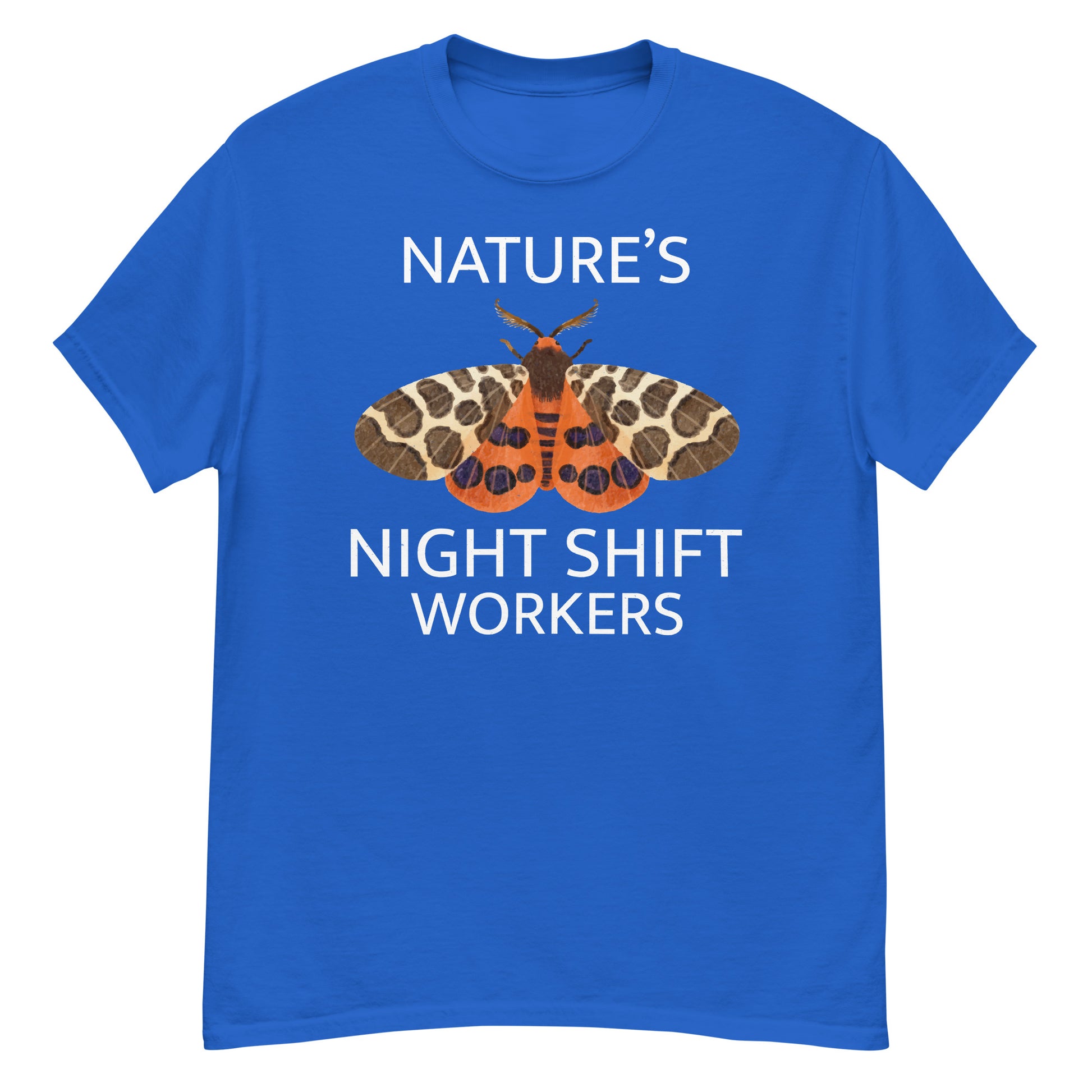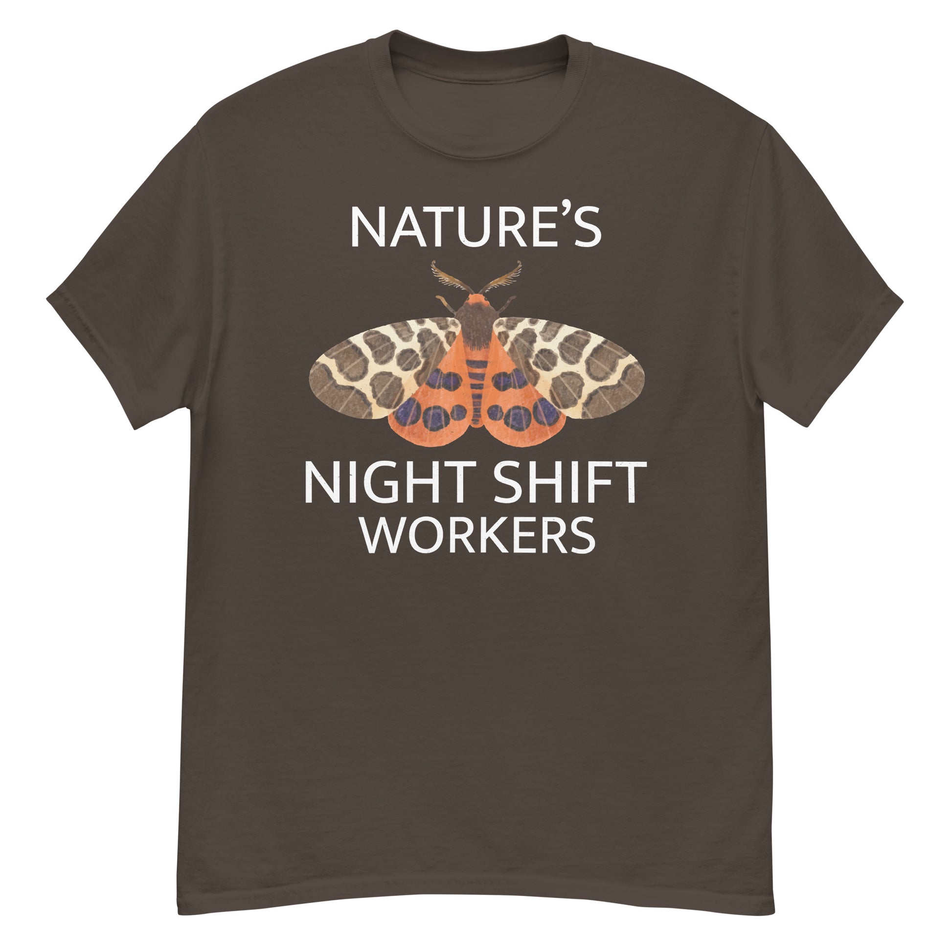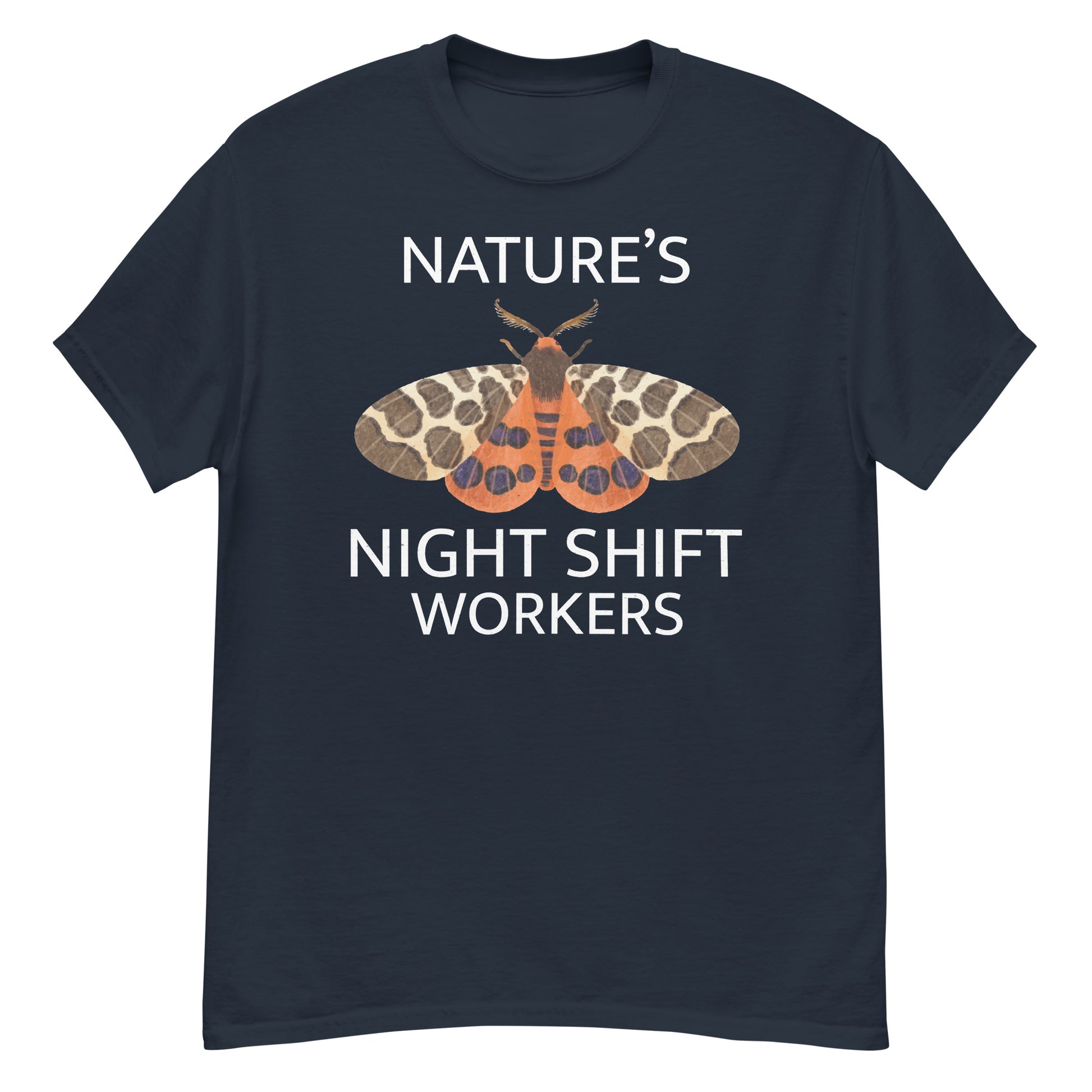 Celebrate the hard-working nocturnal creatures with the "Nature’s Night Shift Workers" T-shirt. Perfect for moth lovers and insect collectors, this design highlights the essential role moths play during the nighttime hours.
