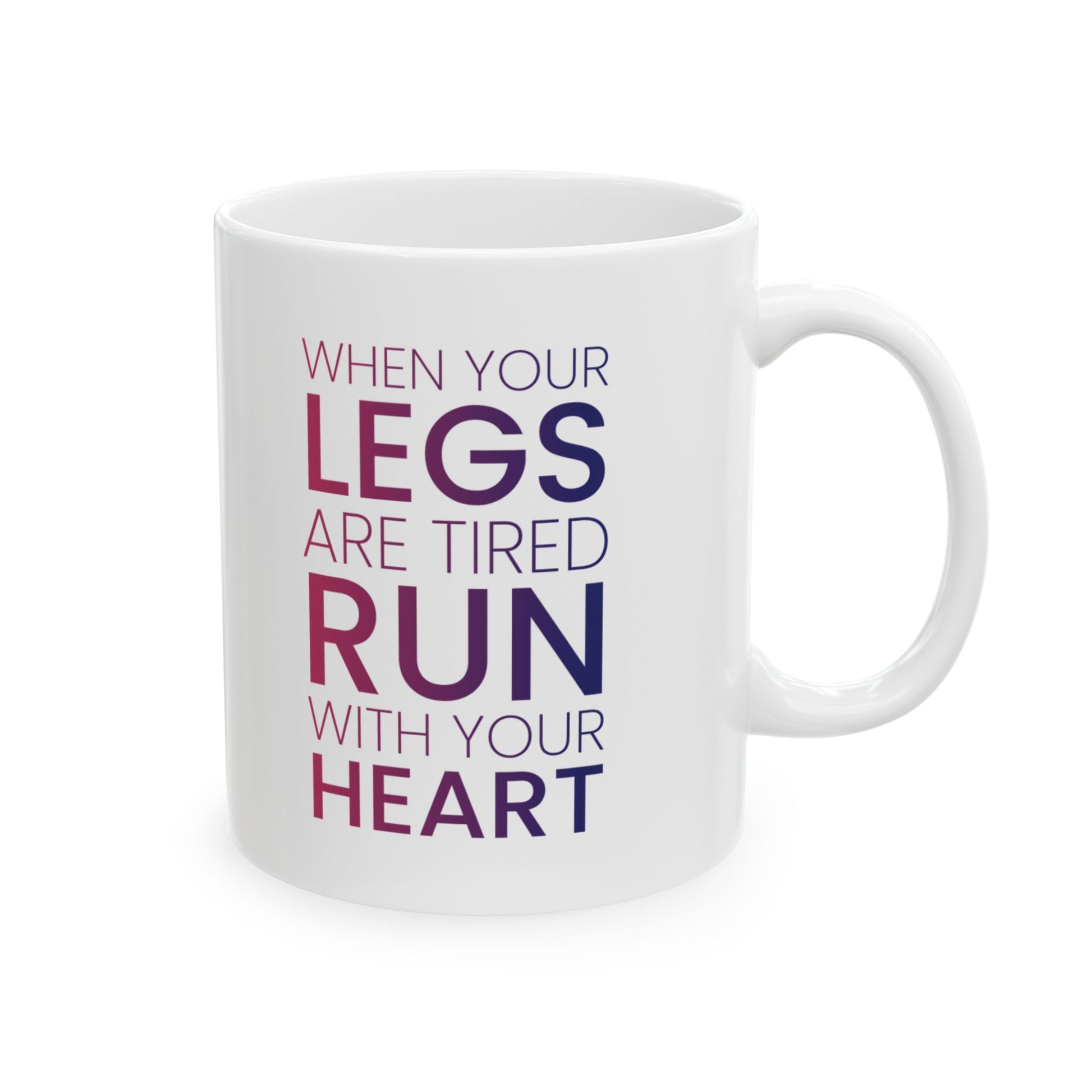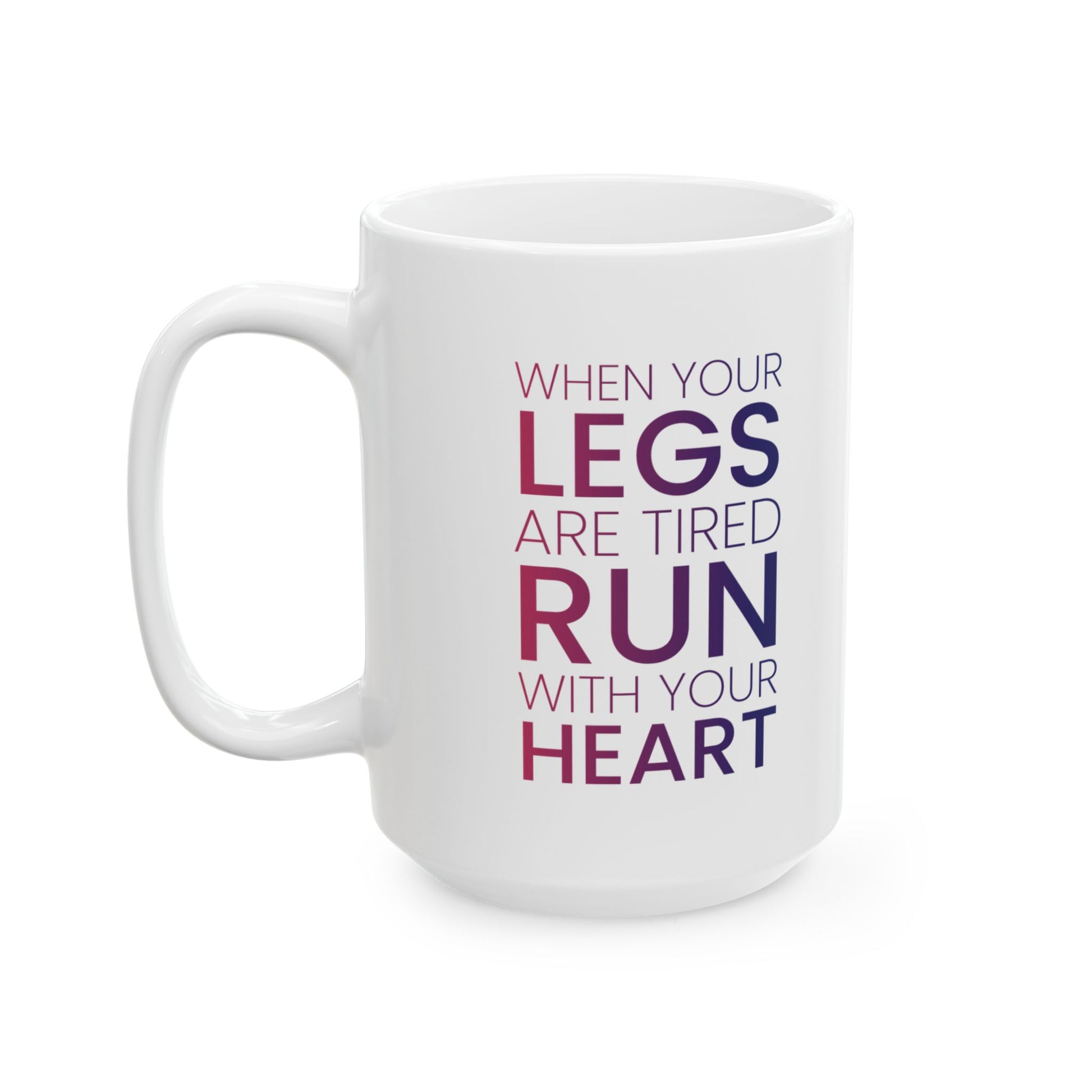 Fuel your runs with inspiration with this "When Your Legs Get Tired, Run With Your Heart" mug, featuring a vibrant gradient design. This mug, showcasing a powerful and motivational quote, is the perfect gift for runners who push their limits. It serves as a reminder to find the strength within, making it a thoughtful and encouraging present. Warm-up with a nice cuppa out of this customized ceramic coffee mug. It’s BPA and Lead-free, microwave & dishwasher-safe, and made of white, durable ceramic in 11-ounce and 15-ounce sizes. Thanks to the advanced printing tech, your designs come to life with incredibly vivid colors – the perfect gift for coffee, tea, and chocolate lovers. .: These mugs are made with durable white ceramic so that your prints can stand out. .: Available in two sizes: 11oz (0.33 l) and 15oz (0.44 l) .: All mugs feature a comfortable C-handle and a shiny finish so that they're both easy to use and great to look at. .: Drink confidently on a daily basis as all mugs are lead and BPA-free.
