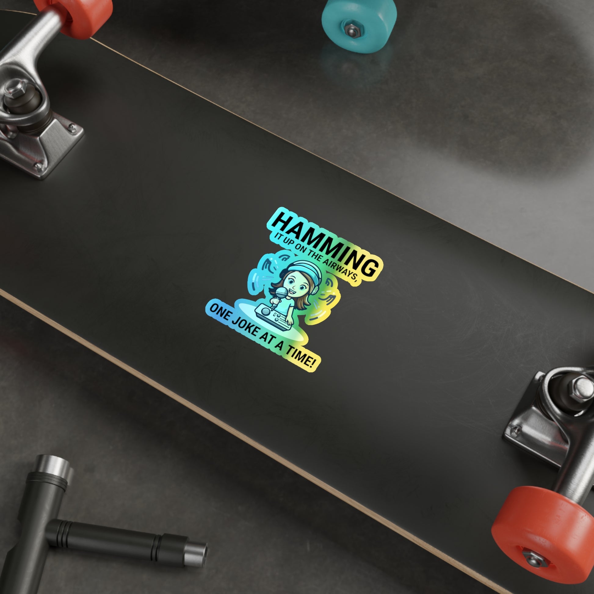 Keep the airwaves laughing with this playful holographic decal! Perfect for QSO comedians, radio pranksters, and operators who love mixing humor with their transmissions. This sticker celebrates the lighter side of amateur radio, ideal for your shack, gear, or vehicle to show your fun-loving operator personality.