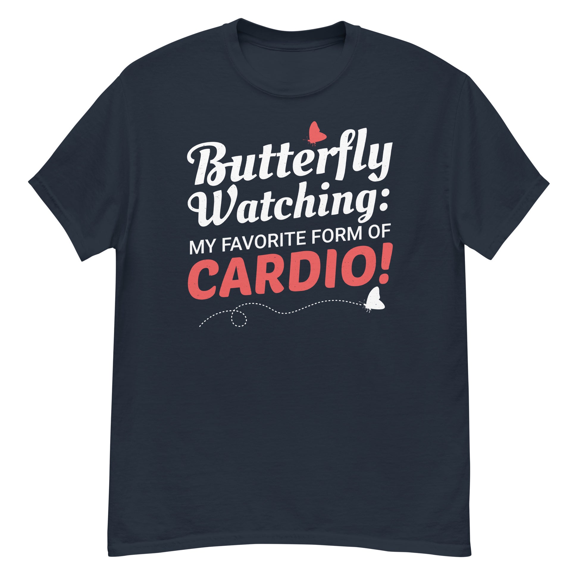 Embrace your love for butterflies and fitness with the "Butterfly Watching: My Favorite Form of Cardio" T-shirt. Ideal for butterfly enthusiasts and insect collectors, this shirt combines a love for nature with a playful take on staying active.