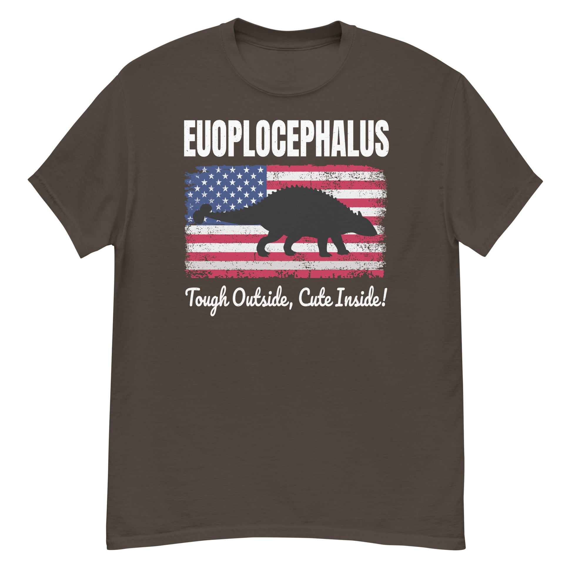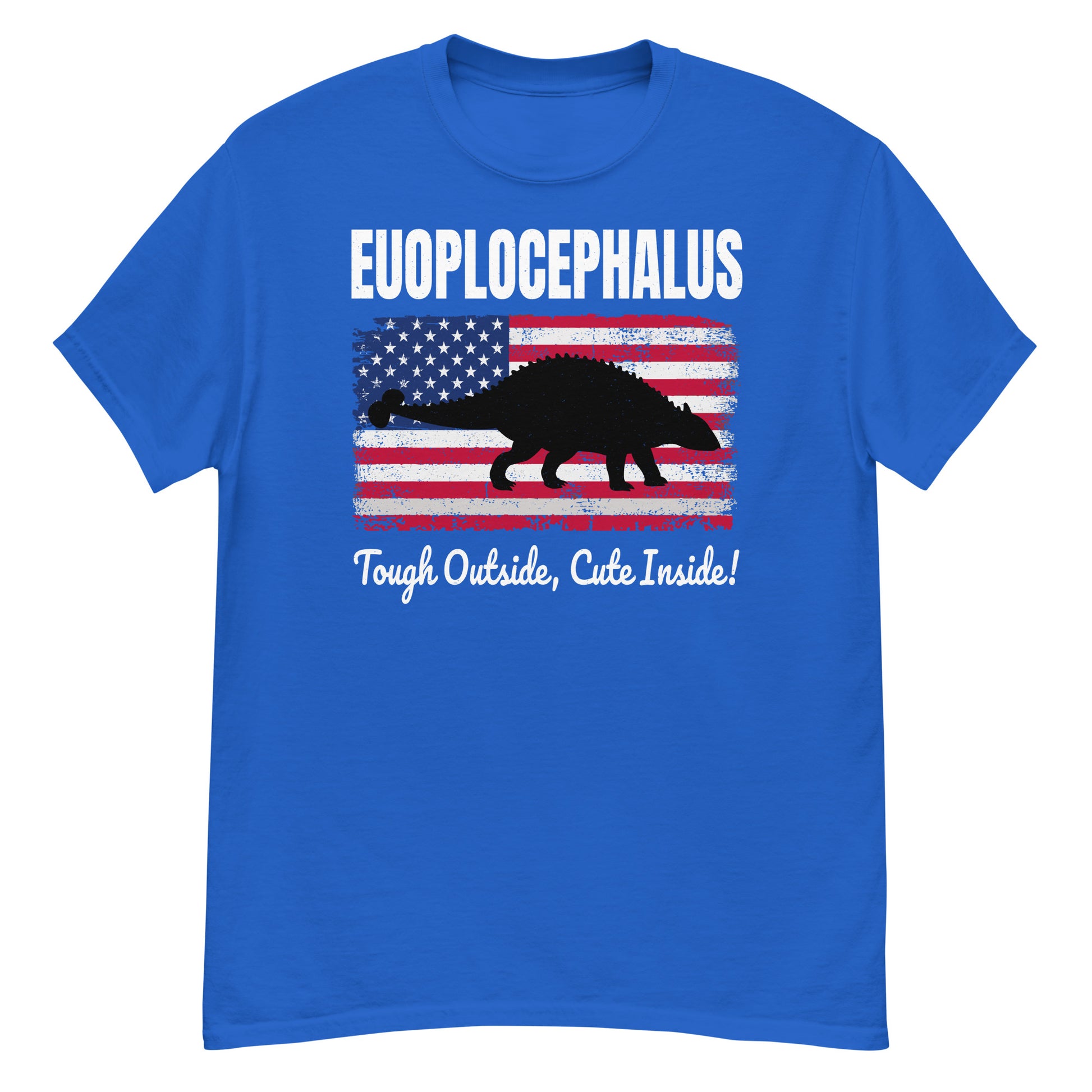 Celebrate your love for both dinosaurs and the USA with this American Flag-themed Euoplocephalus T-Shirt. Perfect for patriots and dino enthusiasts, this design showcases the armored Euoplocephalus, combining toughness with a touch of cuteness.