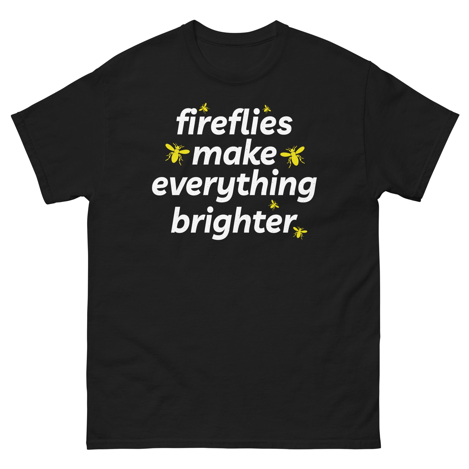 Brighten up your wardrobe with the "Fireflies Make Everything Brighter" T-shirt. Perfect for insect enthusiasts and nature lovers, this shirt celebrates the magic and beauty of fireflies.