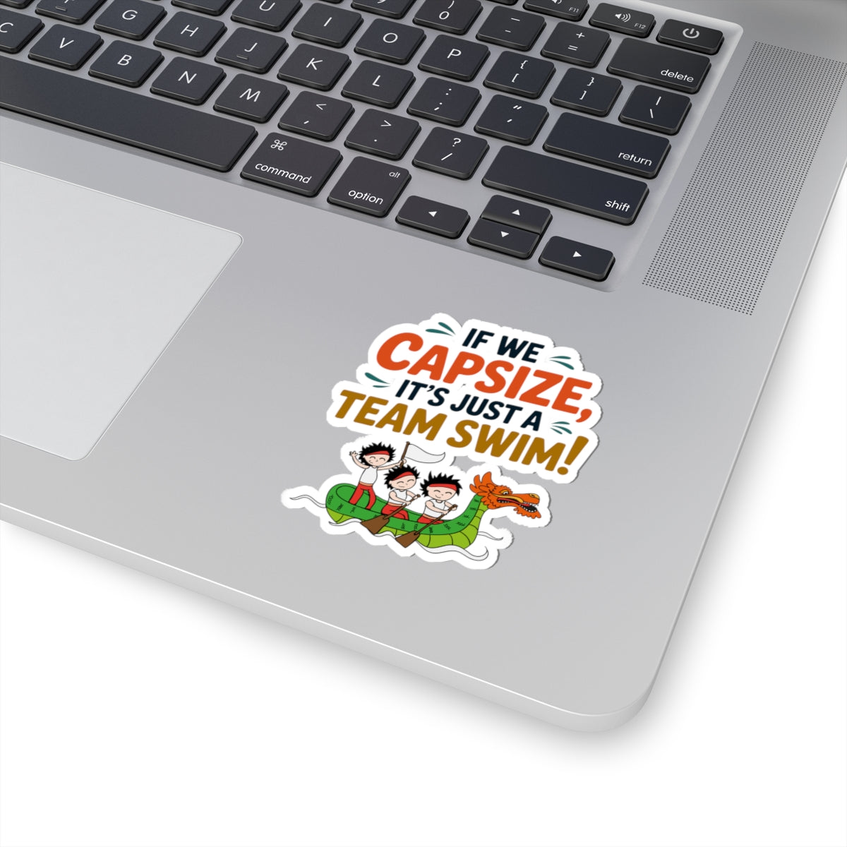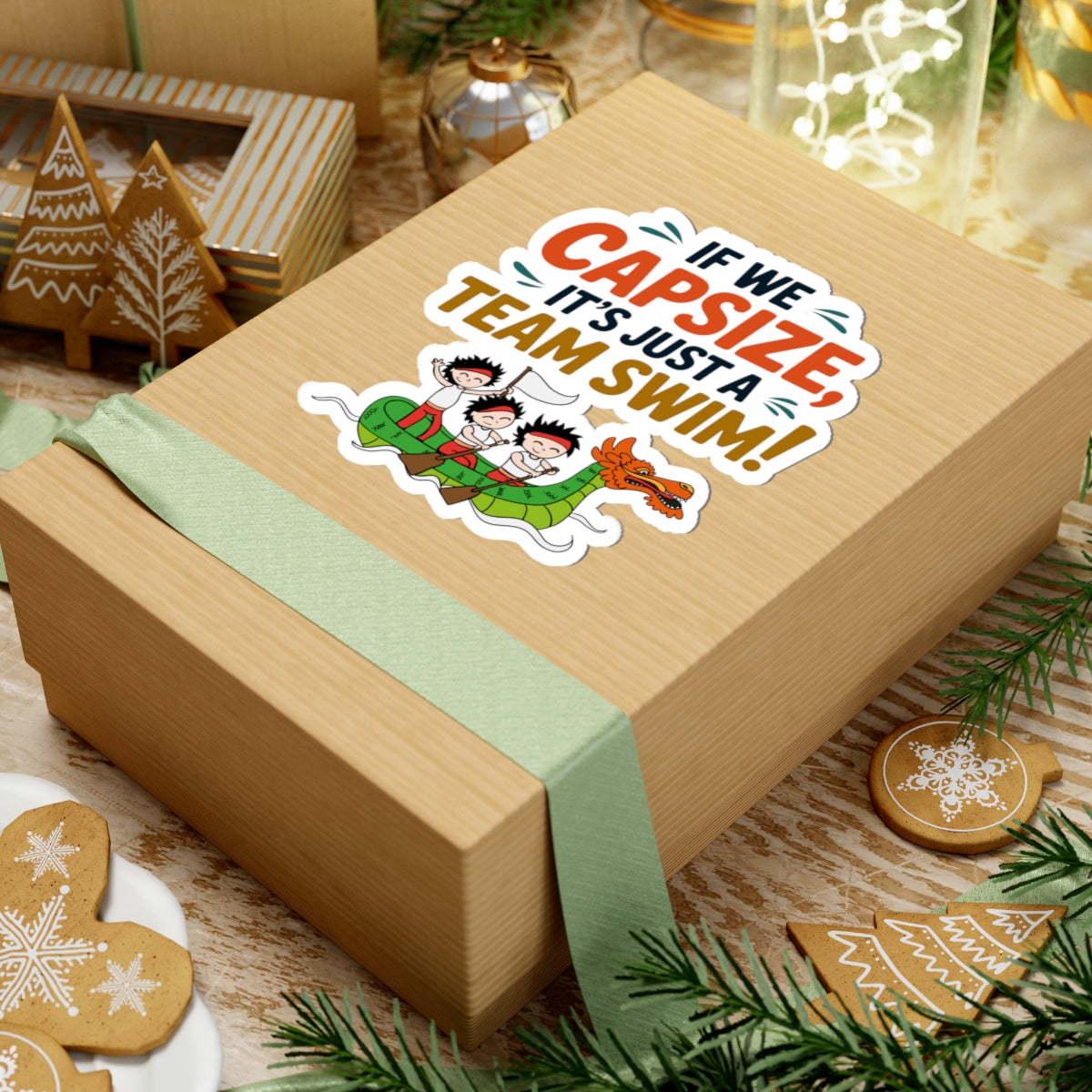 Celebrate the spirited nature of Dragon Boat racing with this lighthearted sticker! Featuring "If We Capsize, It's Just a Team Swim!", this vinyl decal turns every splash into a team bonding opportunity. Perfect for crews who embrace every moment on the water with humor and camaraderie.