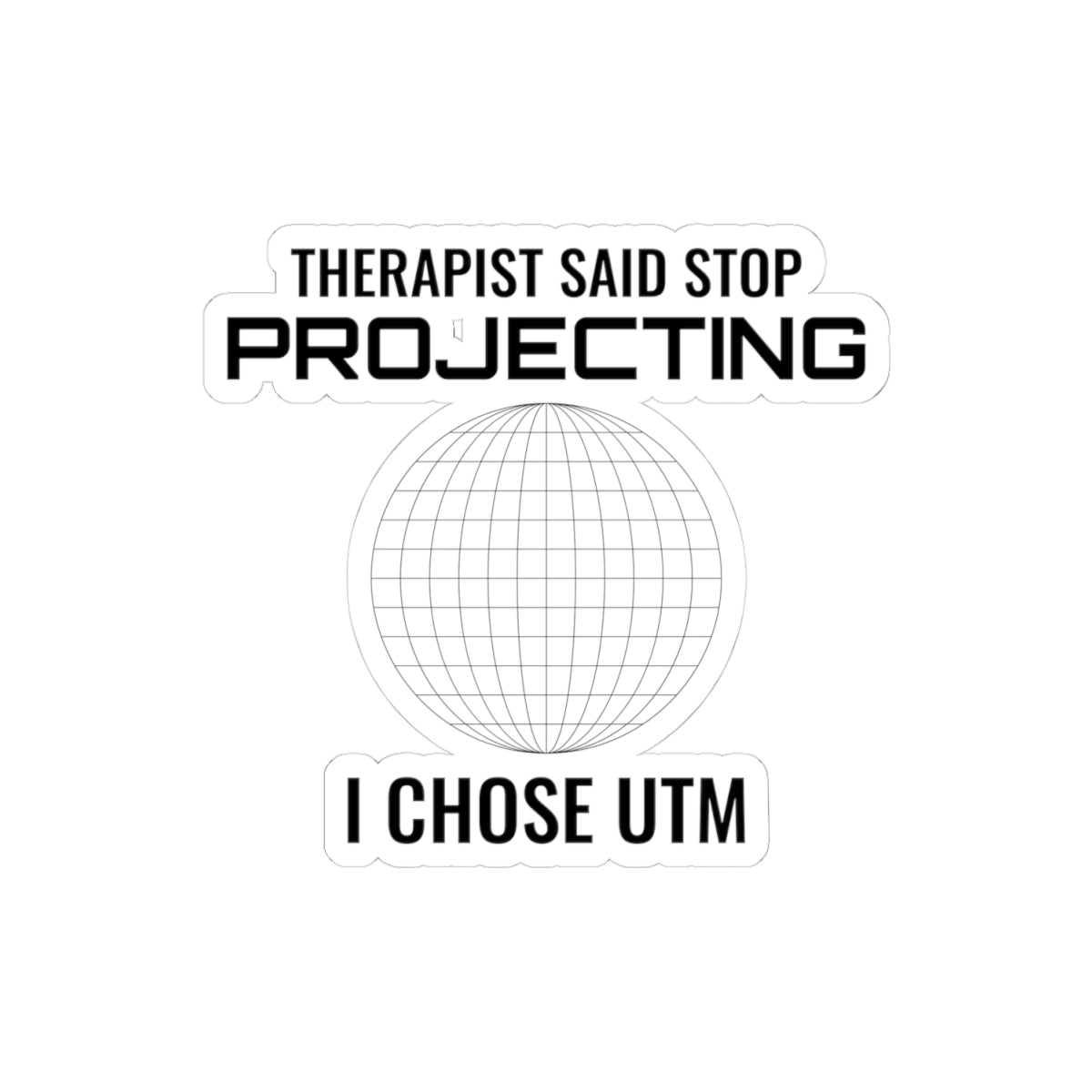 When your therapist says "stop projecting," but you're a GIS pro who knows the right coordinate system is non-negotiable! This hilarious sticker blends mapping humor with relatable struggles, perfect for geospatial analysts, surveyors, and geography nerds. A must-have for anyone who's ever passionately defended their projection choices, whether in the office or at happy hour.