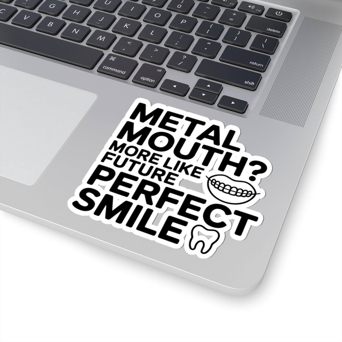 Transform the narrative with this positive orthodontics sticker that turns "metal mouth" into a future perfect smile prediction. This uplifting decal provides encouragement for braces patients, focusing on the beautiful results of their orthodontic journey rather than the temporary hardware.