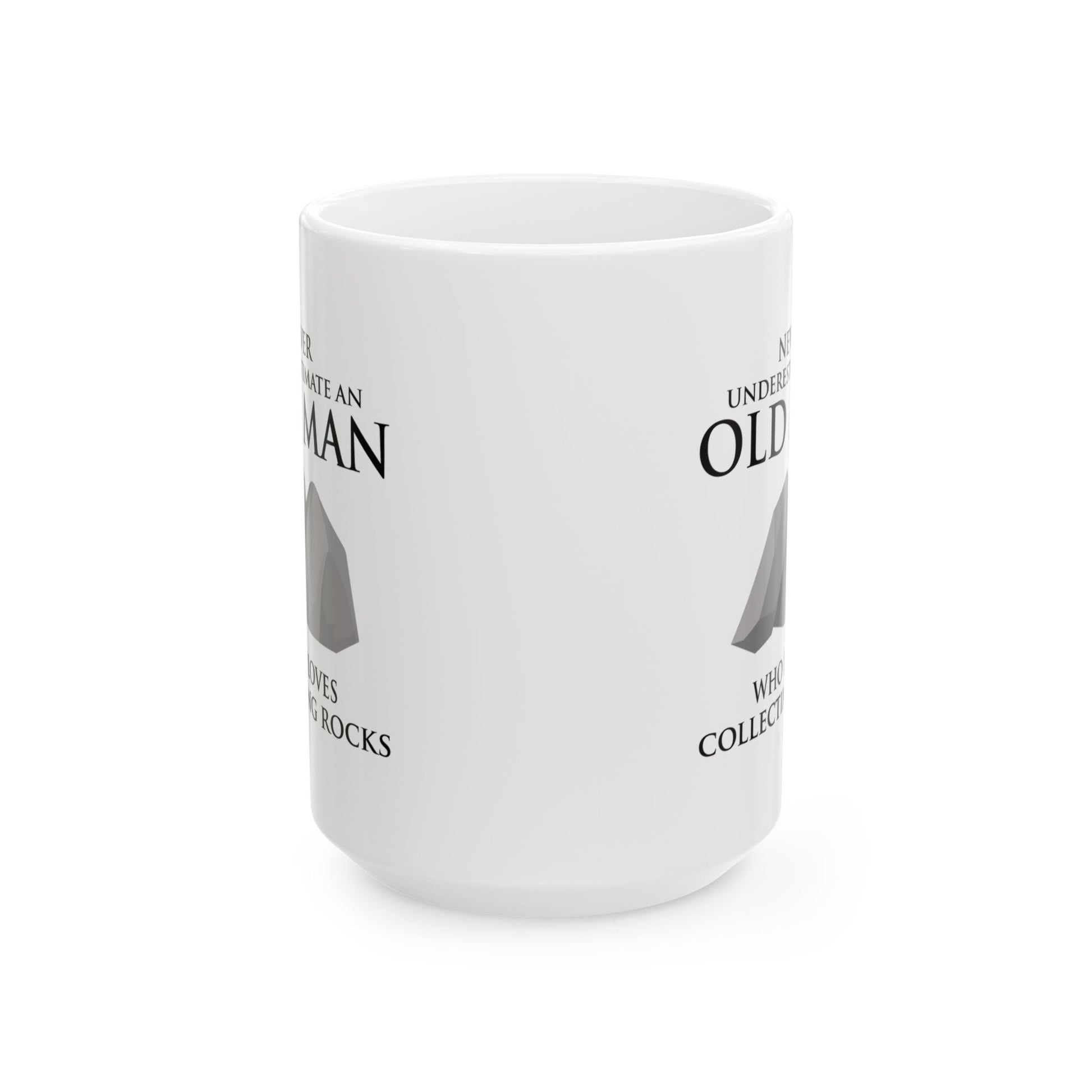 Celebrate the timeless passion for rock collecting with this Geologist Mug. Featuring the inspiring quote, "Never Underestimate an Old Man Who Loves Collecting Rocks," this mug is perfect for seasoned rock enthusiasts. Whether you're enjoying a quiet moment or sharing your love for geology, this mug is a tribute to the dedication and joy of rock collecting. Warm-up with a nice cuppa out of this customized ceramic coffee mug. It’s BPA and Lead-free, microwave & dishwasher-safe, and made of white, durable ceramic in 11-ounce and 15-ounce sizes. Thanks to the advanced printing tech, your designs come to life with incredibly vivid colors – the perfect gift for coffee, tea, and chocolate lovers. .: These mugs are made with durable white ceramic so that your prints can stand out. .: Available in two sizes: 11oz (0.33 l) and 15oz (0.44 l) .: All mugs feature a comfortable C-handle and a shiny finish so that they're both easy to use and great to look at. .: Drink confidently on a daily basis as all mugs are lead and BPA-free.