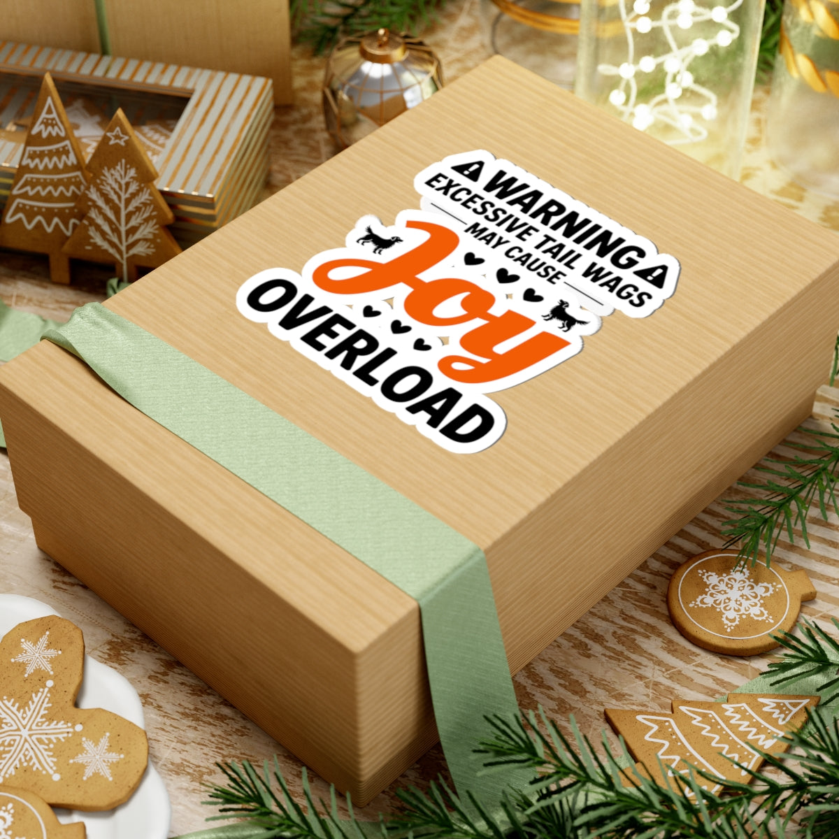 This hilarious Golden Retriever sticker features a playful warning "Excessive Tail Wags May Cause Joy Overload" with adorable dog silhouettes and heart graphics. Perfect for Golden Retriever owners, pet parents, and dog lovers who understand the incredible happiness these dogs bring with their enthusiastic tail wagging. The humorous design celebrates the breed's joyful nature and ability to spread happiness wherever they go. Ideal for decorating personal items, pet supplies, and any surface where you want to showcase your Golden Retriever's contagious joy and tail-wagging enthusiasm. Great for Golden Retriever parents, dog enthusiasts, veterinary staff, and anyone who appreciates the breed's happy-go-lucky personality and mood-lifting presence.
