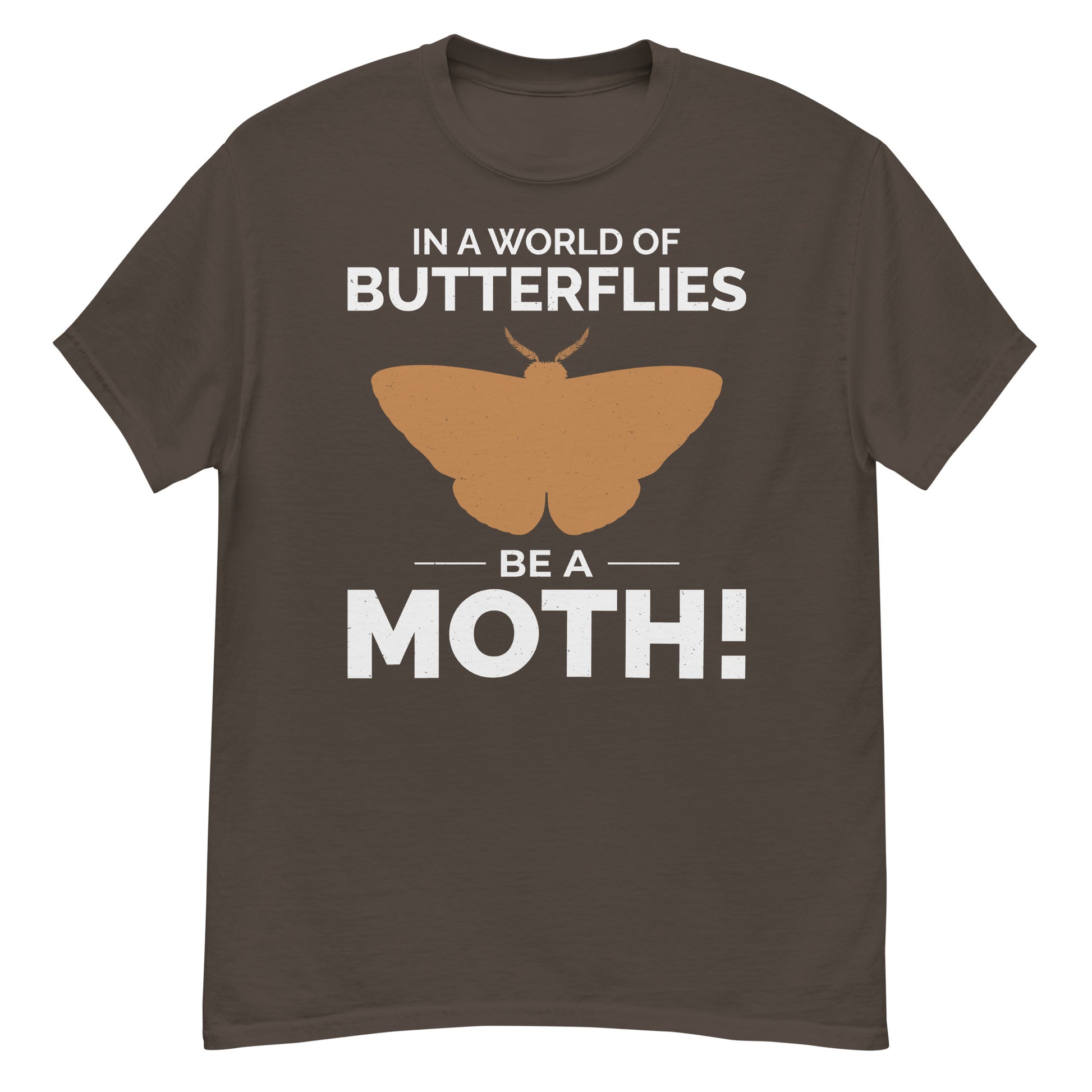 Stand out with the "In a World of Butterflies, Be a Moth" T-shirt. Perfect for moth lovers and insect collectors, this design encourages embracing individuality and celebrating the unique beauty of moths.