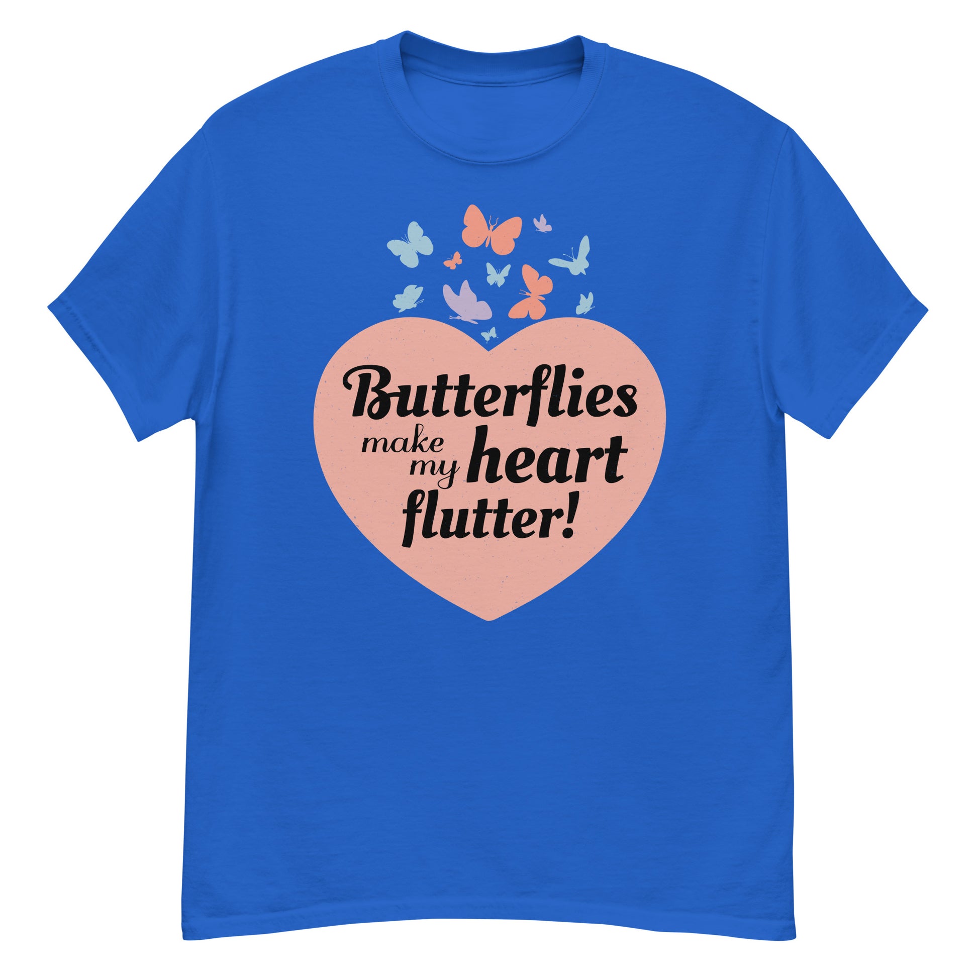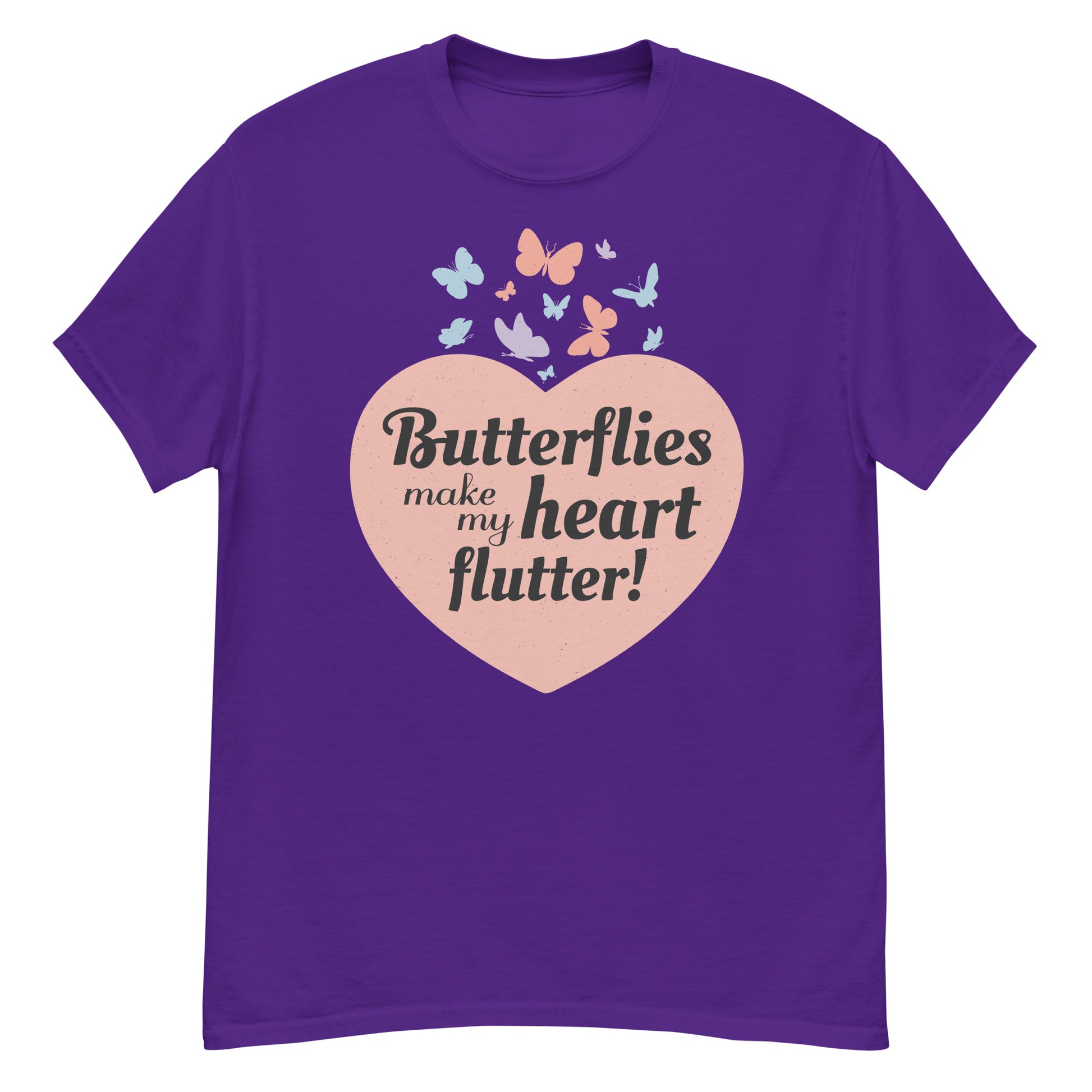 Show your love for butterflies with the "Butterflies Make My Heart Flutter" T-shirt. Perfect for butterfly enthusiasts and insect collectors, this design captures the joy and beauty of these delicate creatures.