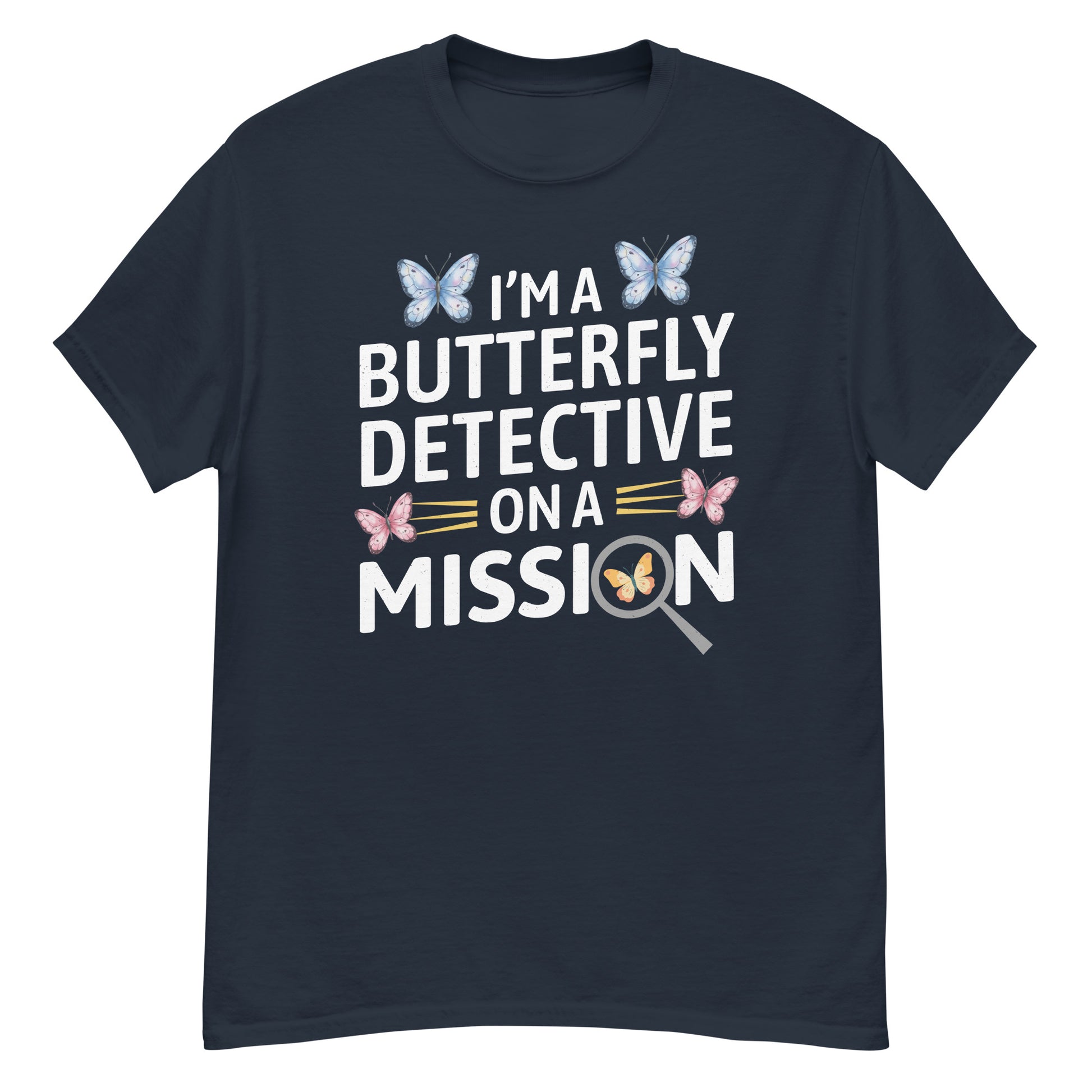 Unleash your inner explorer with the "I'm a Butterfly Detective on a Mission" T-shirt. Perfect for butterfly lovers and insect collectors, this fun design highlights your passion for discovering and protecting these beautiful creatures.