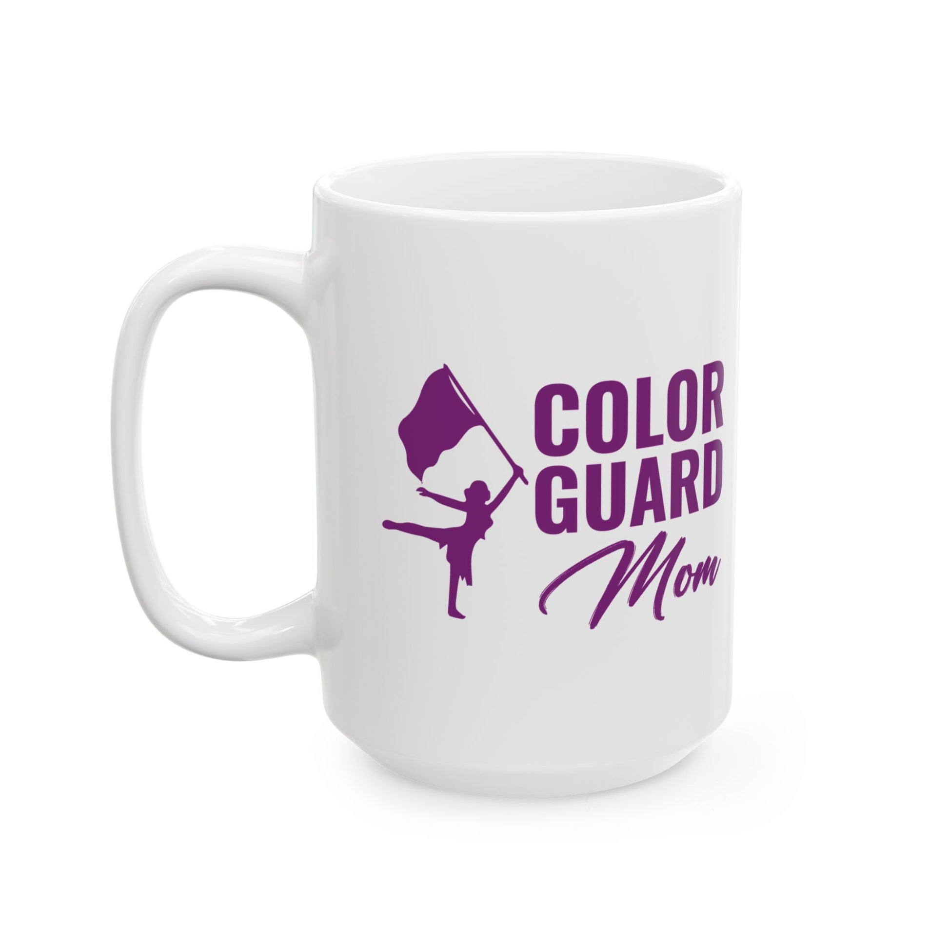 Celebrate the dedication of Color Guard moms with this heartfelt mug featuring a bold "Color Guard Mom" design. Perfect for supporters and enthusiasts, this mug honors the commitment and encouragement of those who cheer from the sidelines. Whether you're a proud mom or a fan, this mug is a tribute to the unwavering support behind every Color Guard performer.