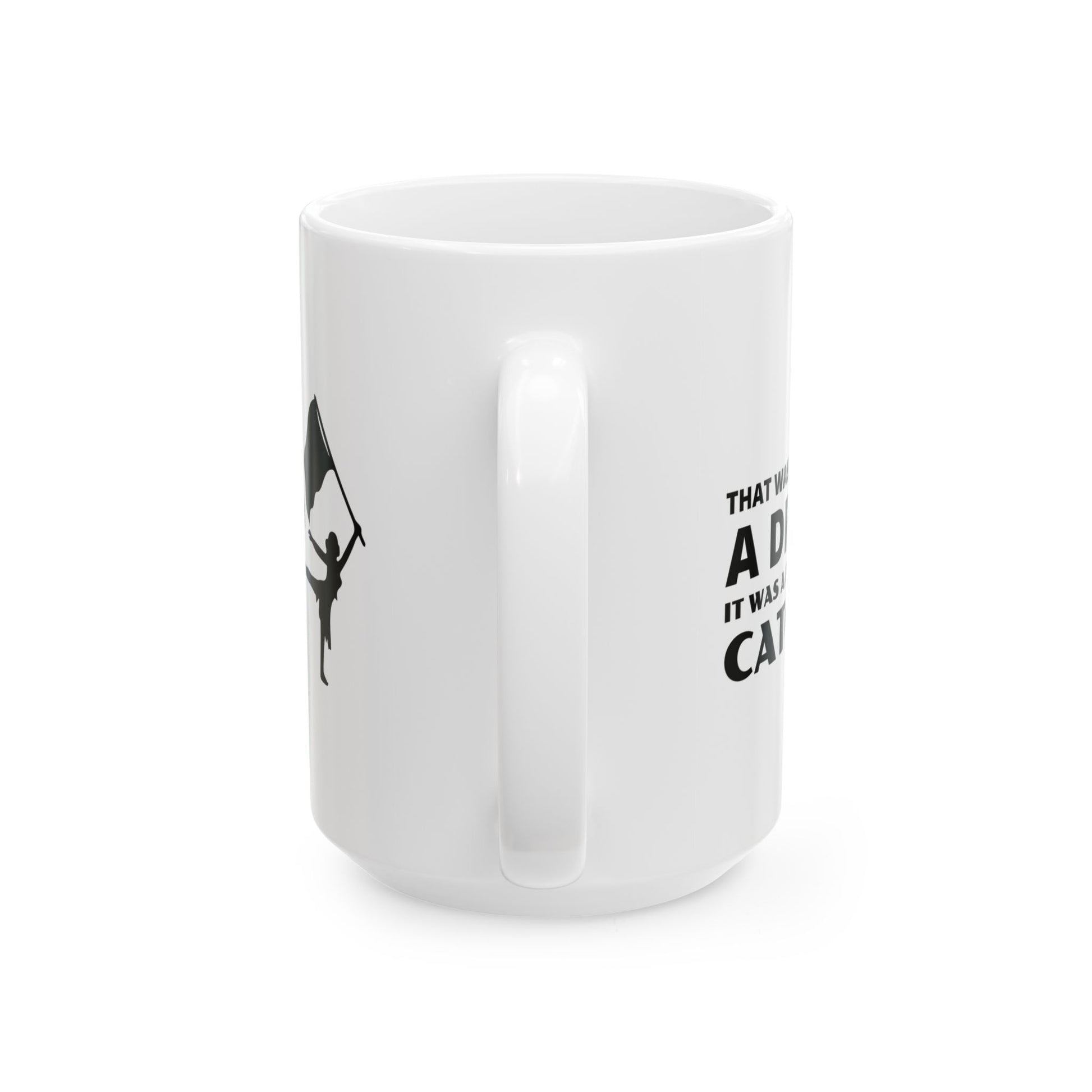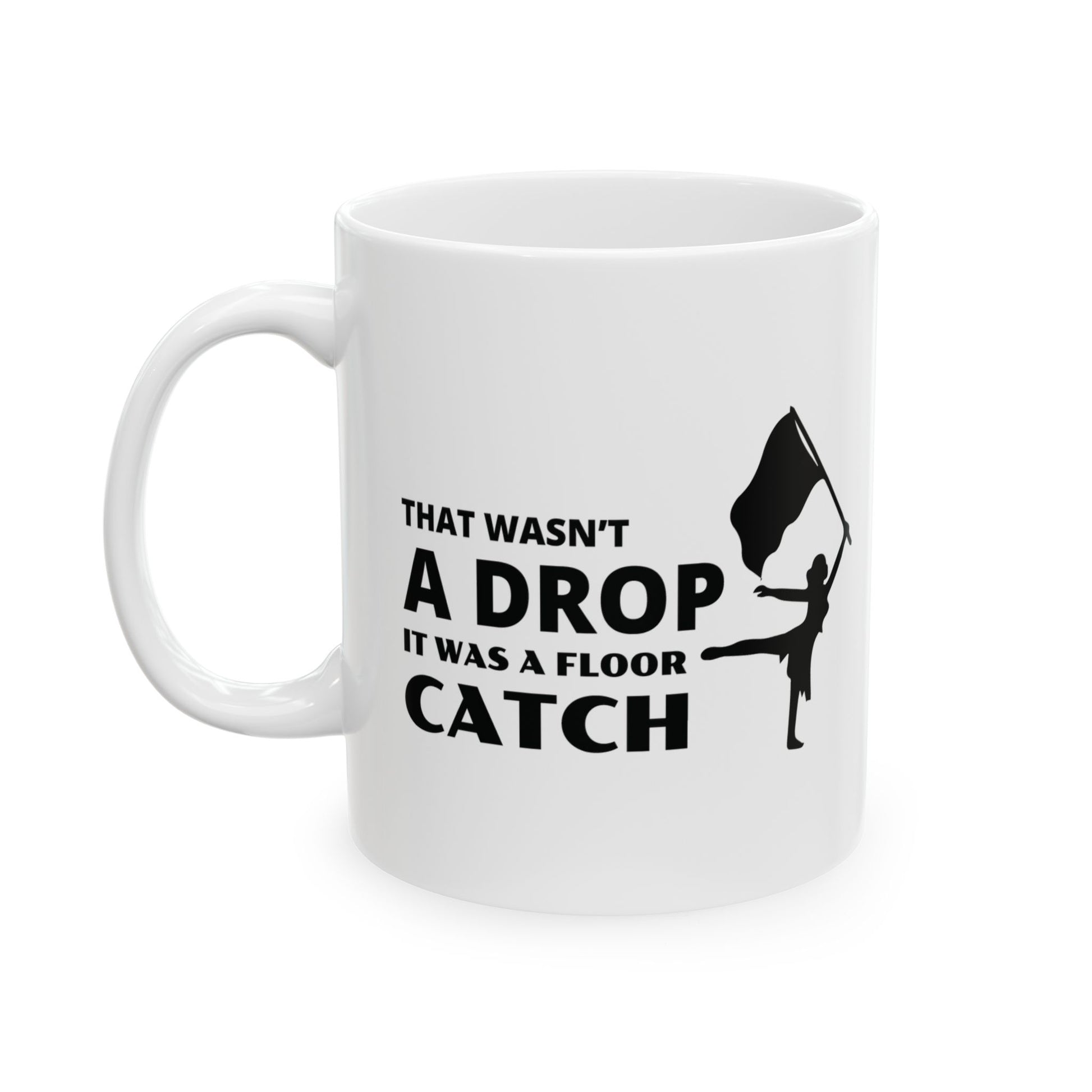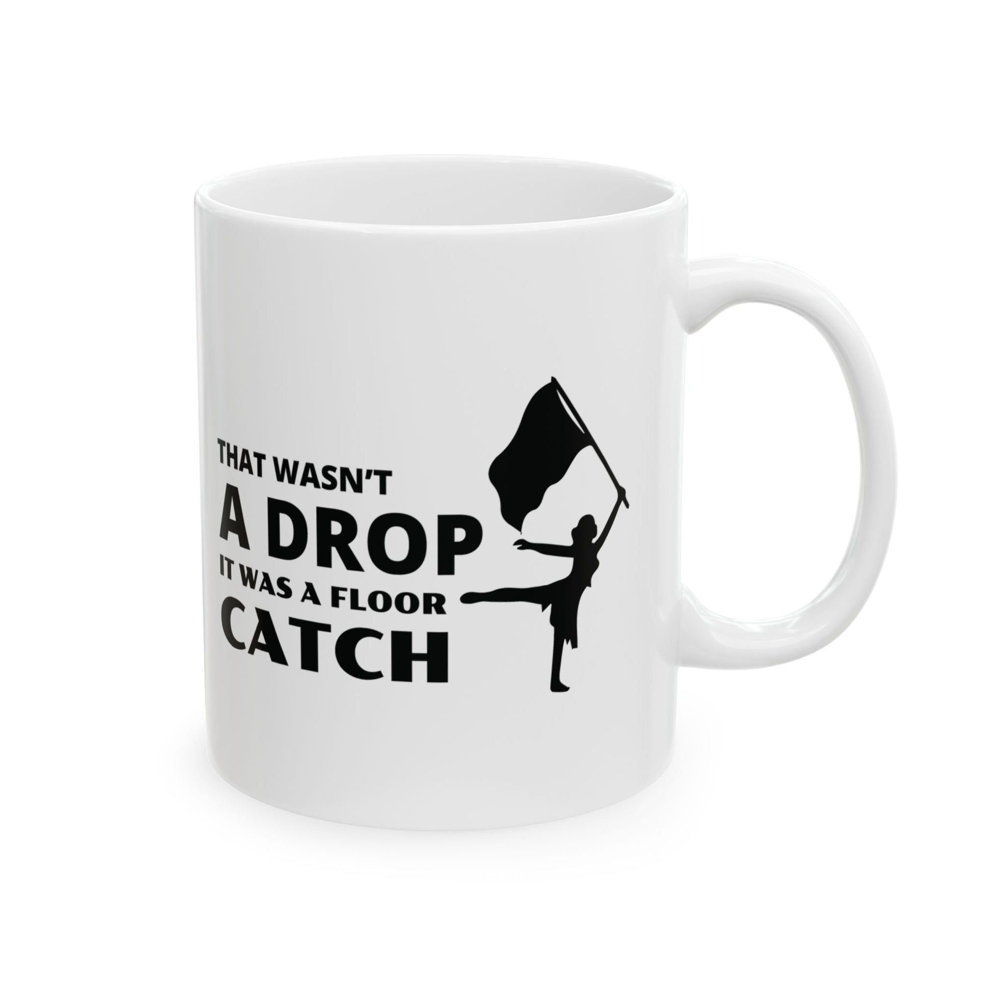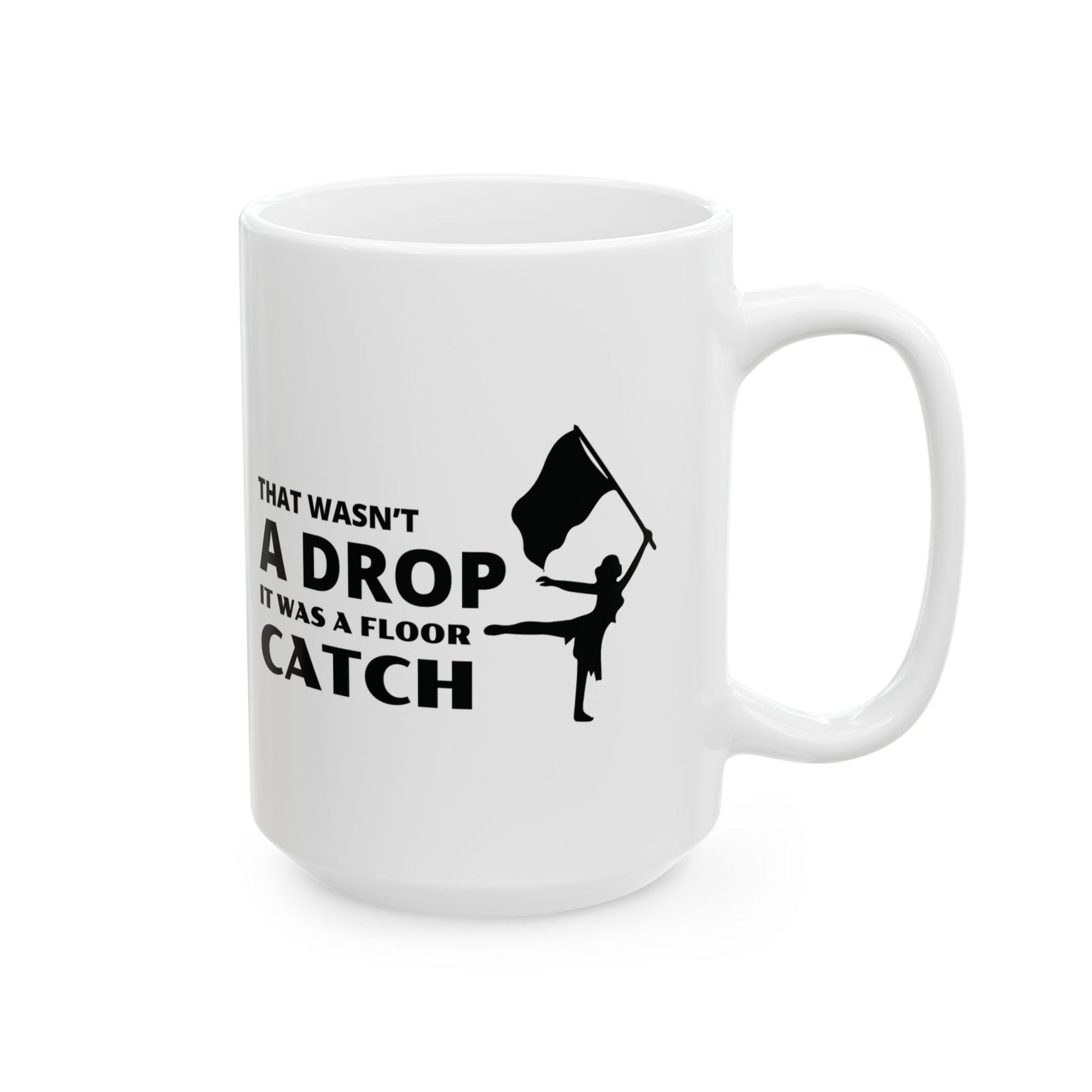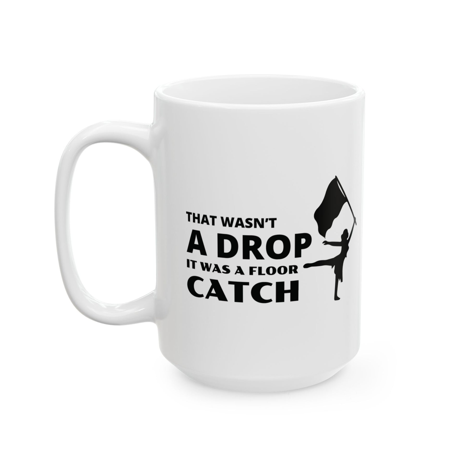 Celebrate the precision and skill of Color Guard with this unique mug featuring a playful "That Wasn't a Drop, It Was a Floor Catch" design. Perfect for performers and enthusiasts, this mug captures the humor and dedication of Color Guard routines. Whether you're perfecting your catches or supporting your team, this mug is a fun tribute to the artistry of Color Guard. Warm-up with a nice cuppa out of this customized ceramic coffee mug. It’s BPA and Lead-free, microwave & dishwasher-safe, and made of white, durable ceramic in 11-ounce and 15-ounce sizes. Thanks to the advanced printing tech, your designs come to life with incredibly vivid colors – the perfect gift for coffee, tea, and chocolate lovers. .: These mugs are made with durable white ceramic so that your prints can stand out. .: Available in two sizes: 11oz (0.33 l) and 15oz (0.44 l) .: All mugs feature a comfortable C-handle and a shiny finish so that they're both easy to use and great to look at. .: Drink confidently on a daily basis as all mugs are lead and BPA-free.