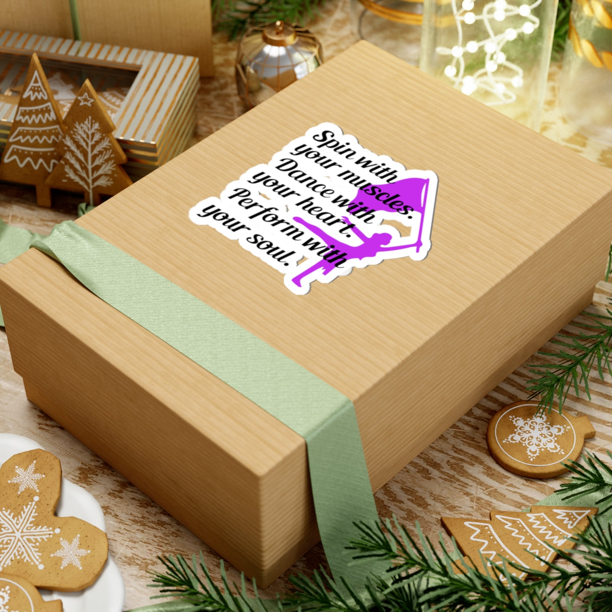 Showcase your passion for color guard with this inspiring vinyl sticker. The design features a twirling dancer silhouette and the motivational phrase "Spin with your muscles, Dance with your heart, Perform with your soul." Perfect for adding a touch of flair to your laptop, notebook, water bottle, or any smooth surface.