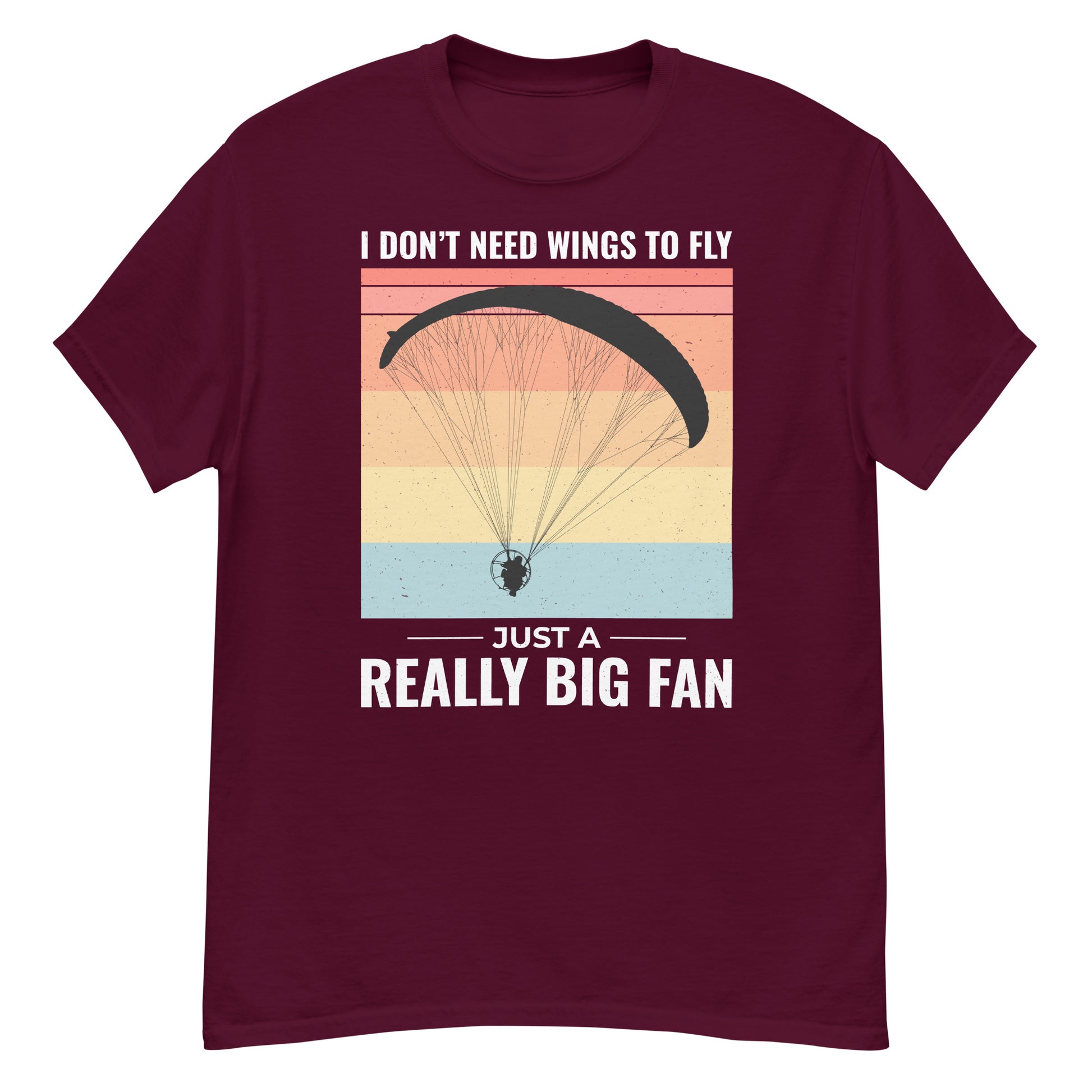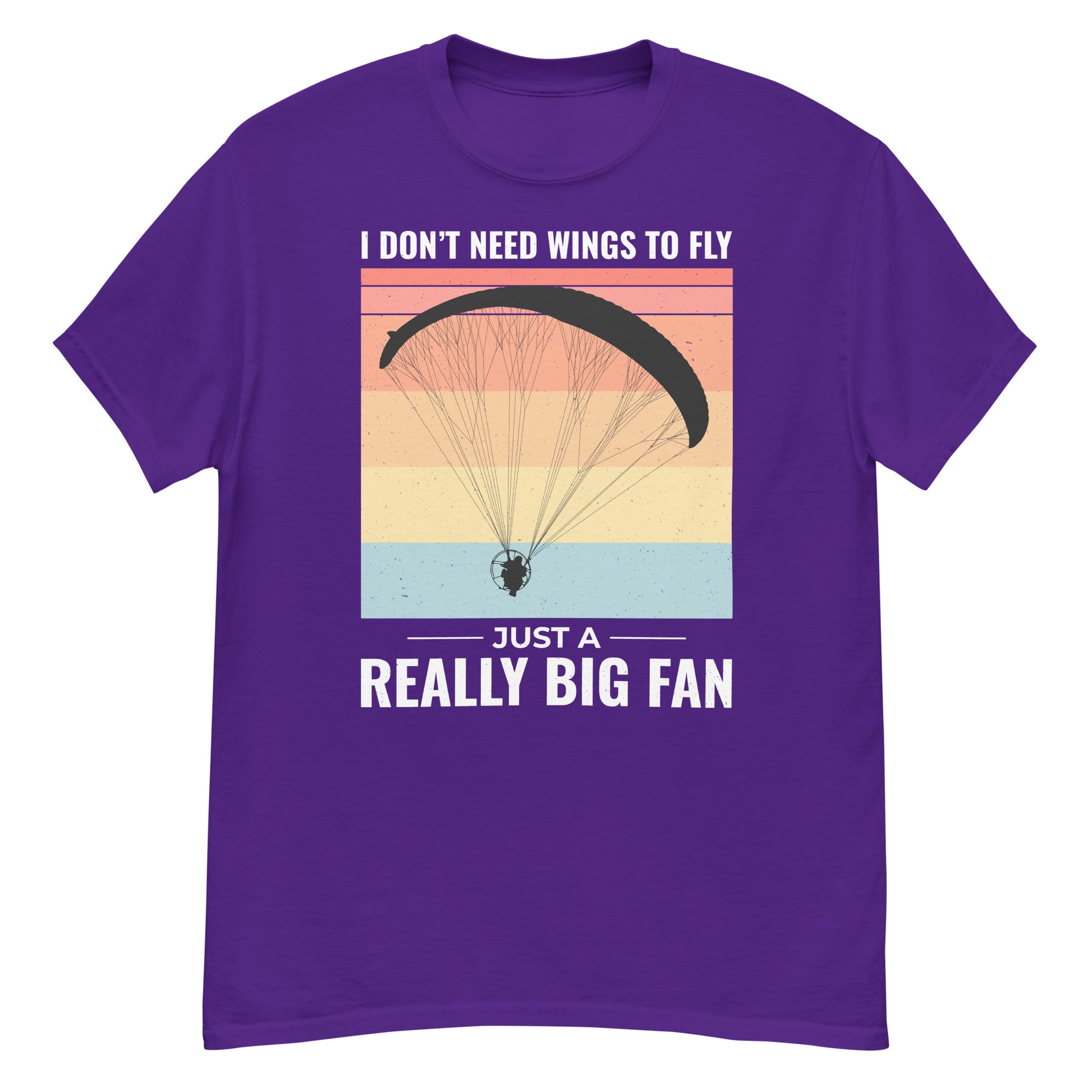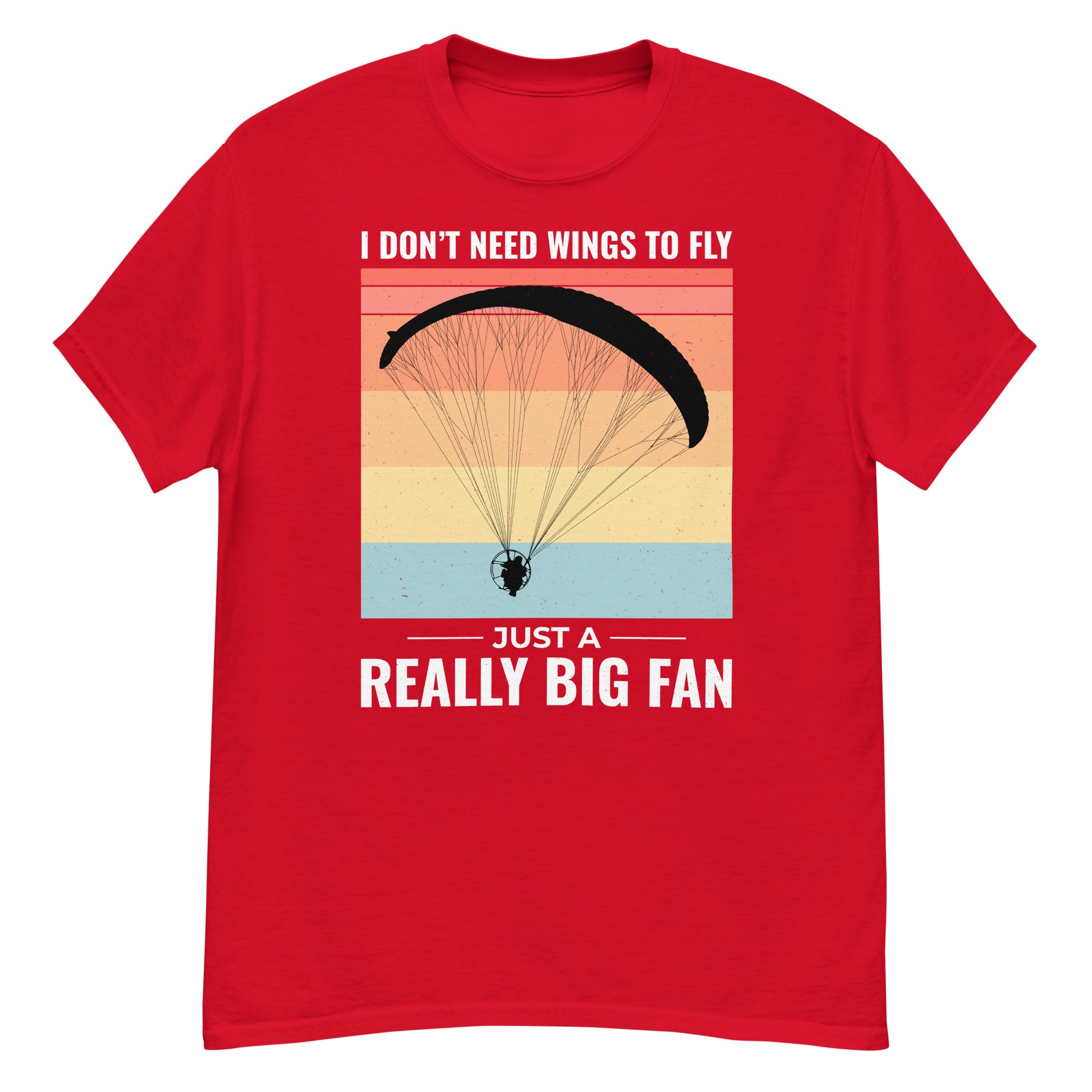 Celebrate your love for paramotoring with this witty T-Shirt featuring the phrase, "I don't need wings to fly, just a really big fan." Perfect for powered paragliding enthusiasts who enjoy the unique thrill of this sport.