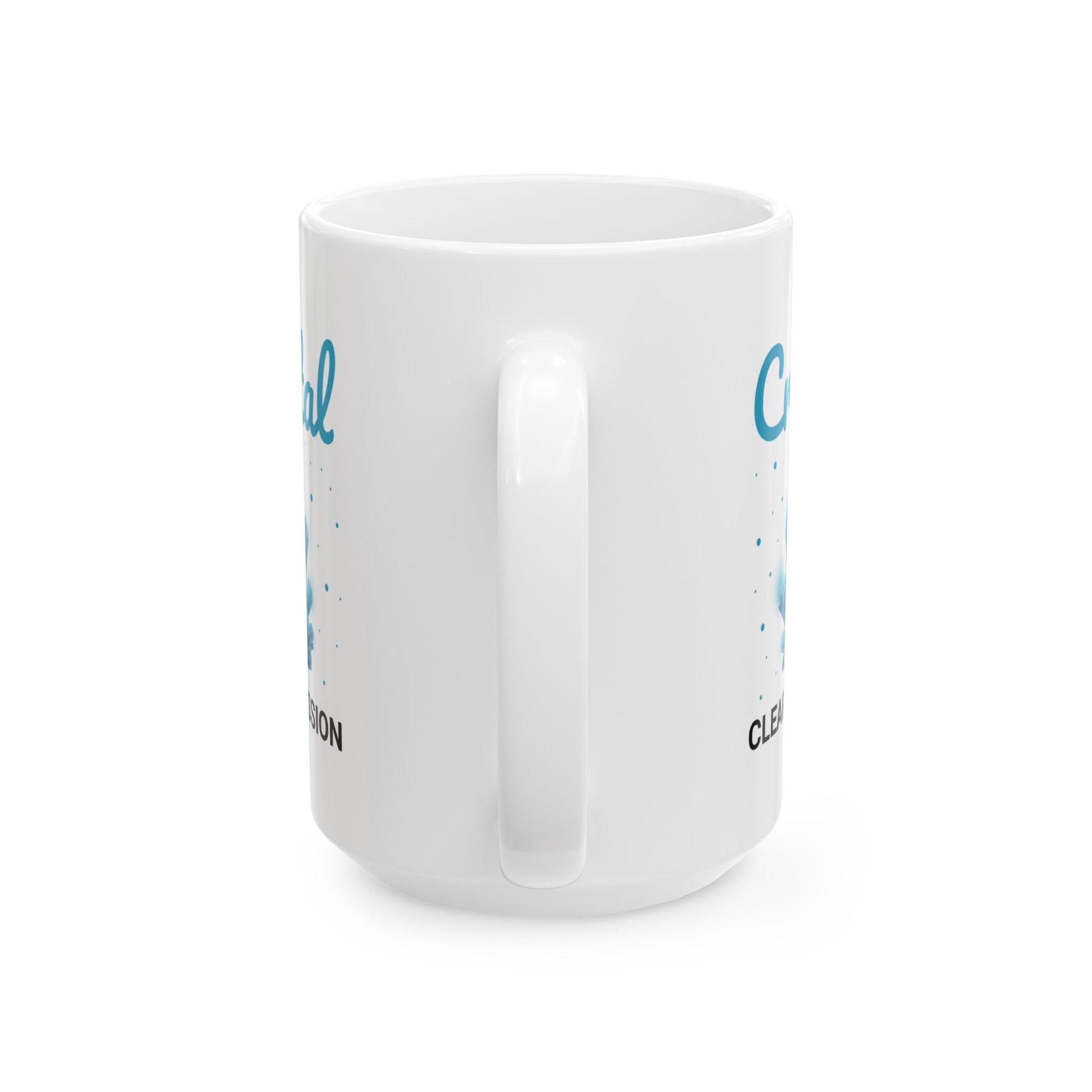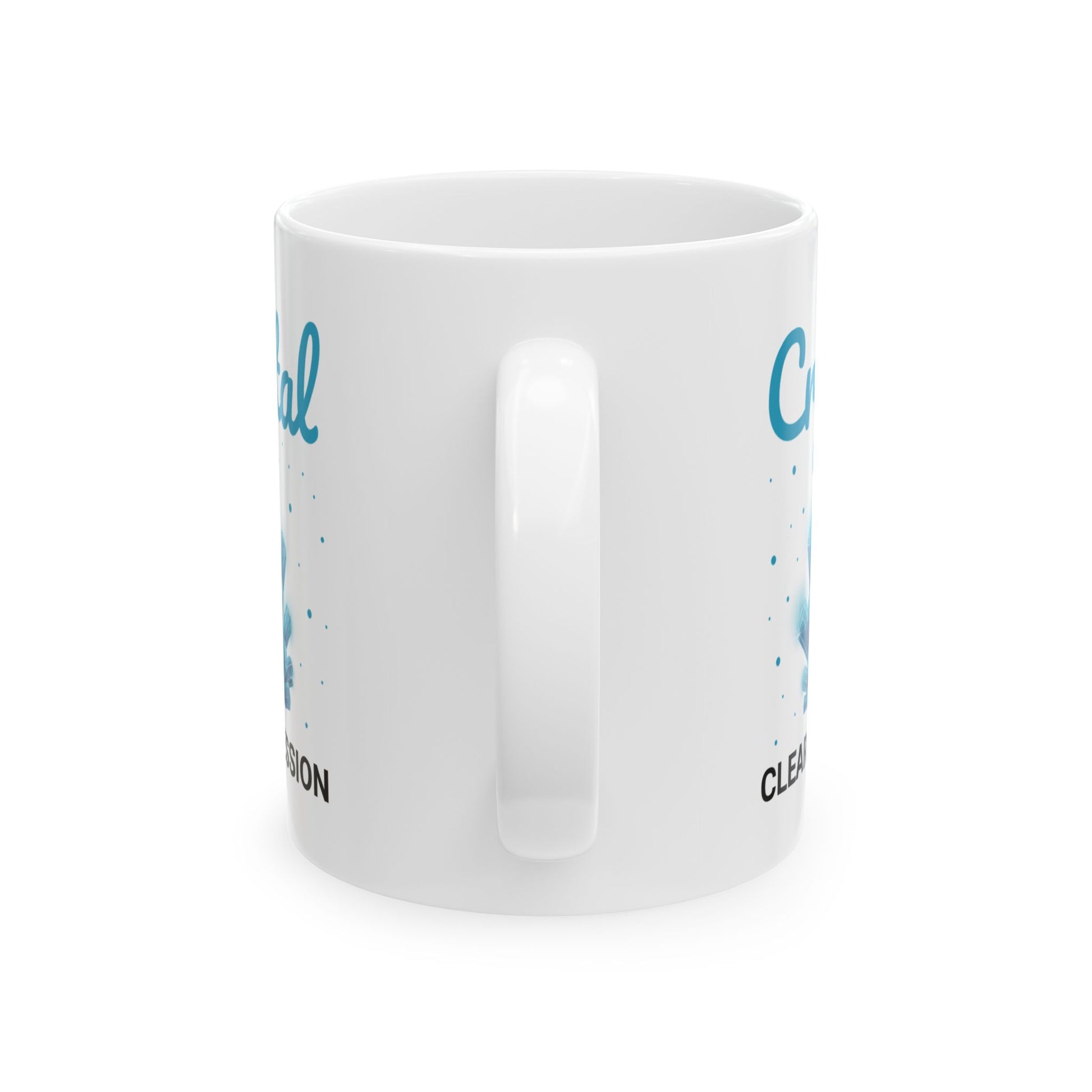 Celebrate your passion for crystals with this themed mug featuring stunning blue quartz crystal formations. The elegant design displays a cluster of hexagonal crystal points in varying heights and widths, creating a beautiful three-dimensional effect against a clean white background. The playful "Crystal Clear Obsession" text cleverly acknowledges the undeniable attraction that crystal collectors feel toward these natural geometric wonders. The turquoise blue color scheme evokes the serene beauty of aquamarine or blue quartz specimens, making this mug a must-have for any serious mineral enthusiast. Warm-up with a nice cuppa out of this customized ceramic coffee mug. It’s BPA and Lead-free, microwave & dishwasher-safe, and made of white, durable ceramic in 11-ounce and 15-ounce sizes. Thanks to the advanced printing tech, your designs come to life with incredibly vivid colors – the perfect gift for coffee, tea, and chocolate lovers. .: These mugs are made with durable white ceramic so that your prints can stand out. .: Available in two sizes: 11oz (0.33 l) and 15oz (0.44 l) .: All mugs feature a comfortable C-handle and a shiny finish so that they're both easy to use and great to look at. .: Drink confidently on a daily basis as all mugs are lead and BPA-free.