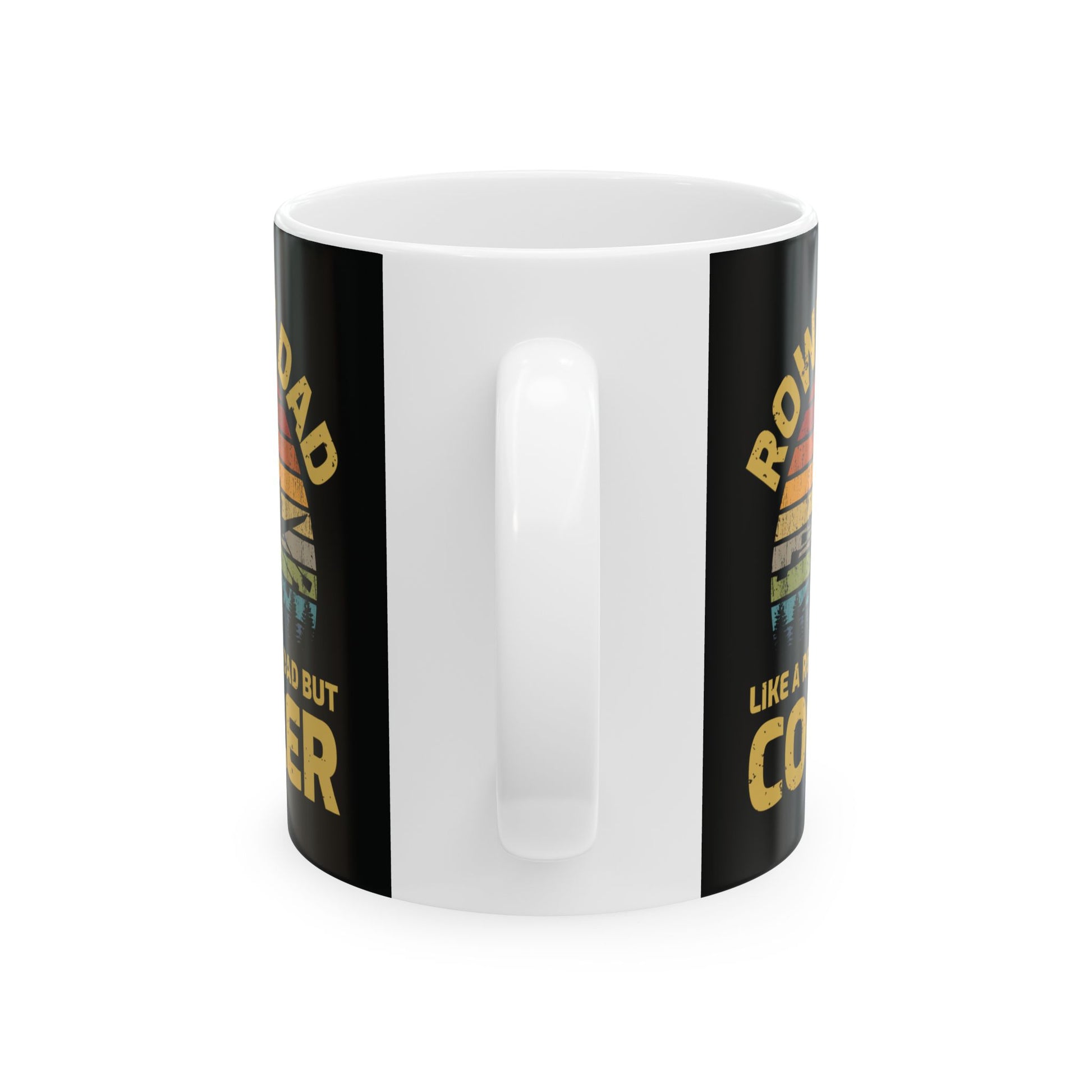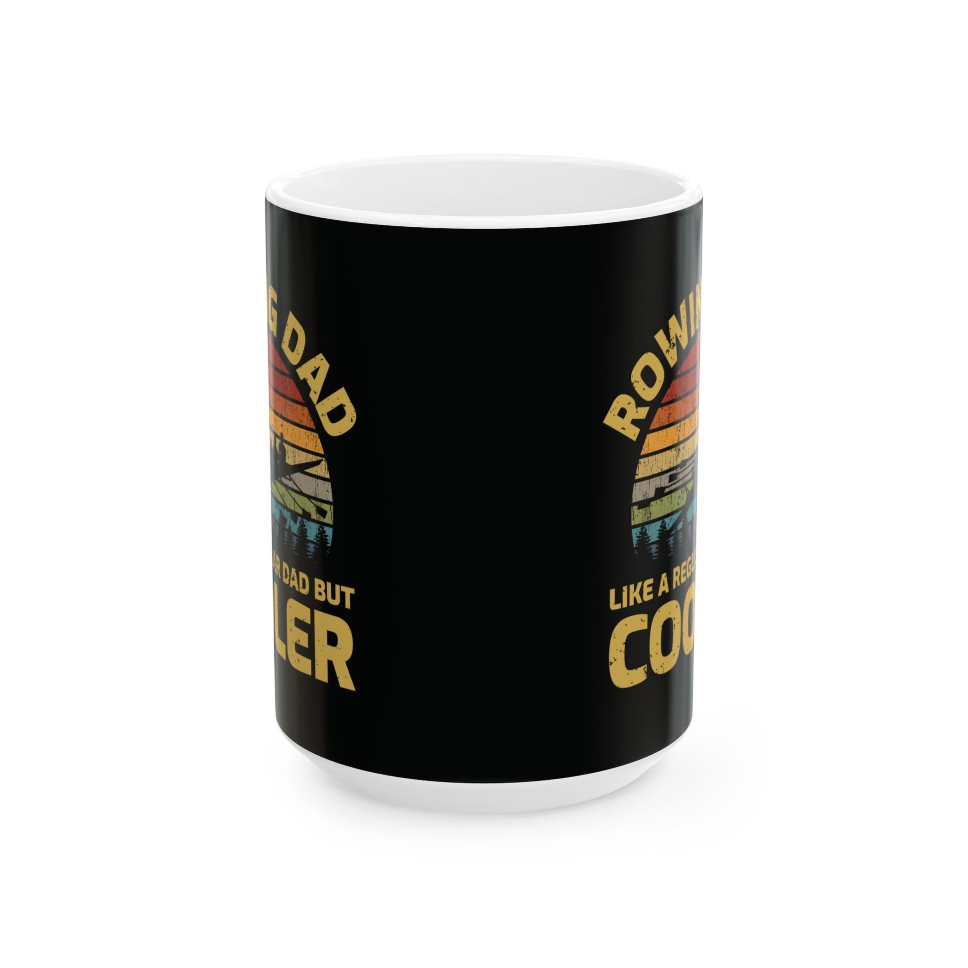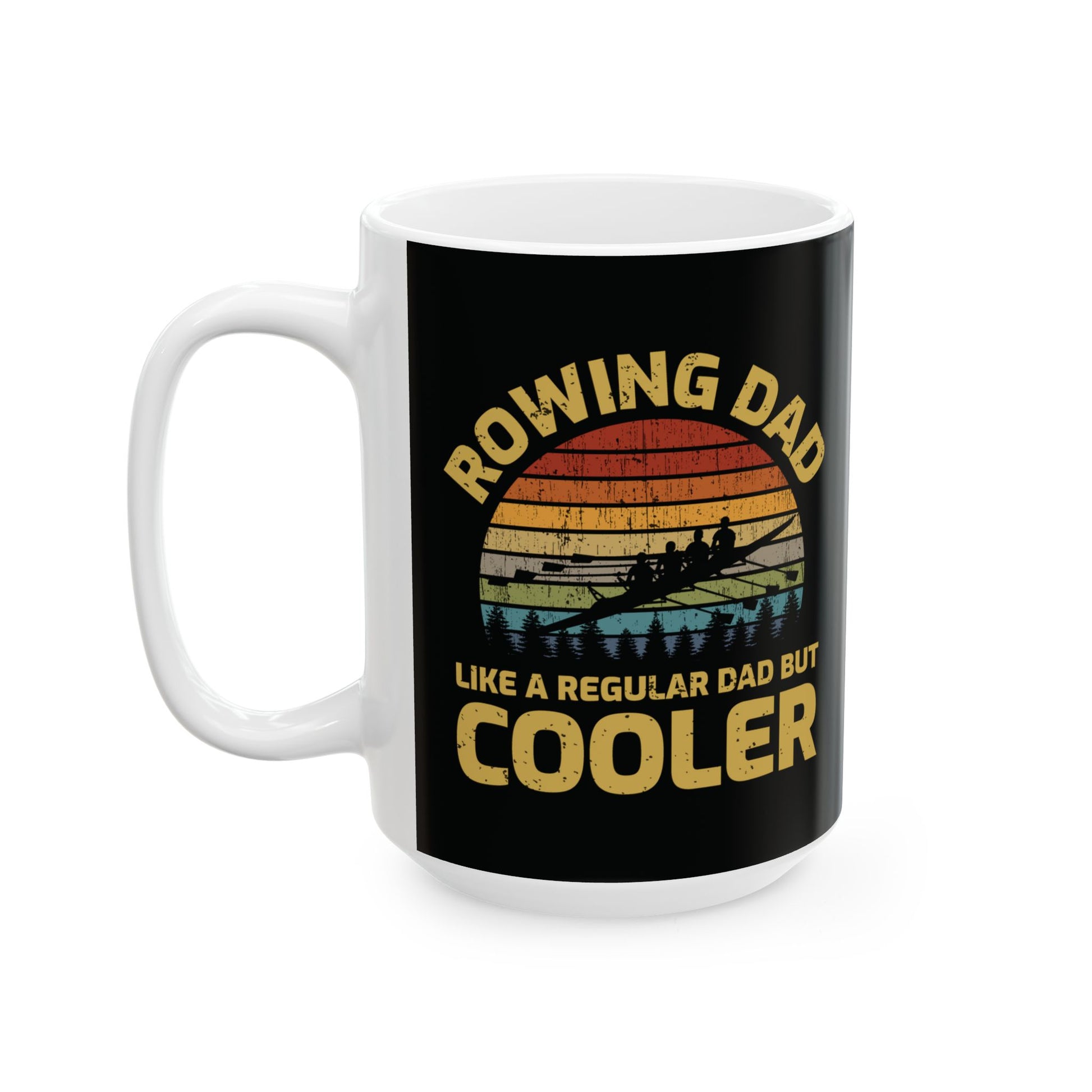 A vintage-style design celebrating rowing dads with a retro sunset scene and crew team silhouette. Perfect for fathers who share their passion for rowing, featuring warm sunset colors and a playful message about being a cool rowing parent. Warm-up with a nice cuppa out of this customized ceramic coffee mug. It’s BPA and Lead-free, microwave & dishwasher-safe, and made of white, durable ceramic in 11-ounce and 15-ounce sizes. Thanks to the advanced printing tech, your designs come to life with incredibly vivid colors – the perfect gift for coffee, tea, and chocolate lovers. .: These mugs are made with durable white ceramic so that your prints can stand out. .: Available in two sizes: 11oz (0.33 l) and 15oz (0.44 l) .: All mugs feature a comfortable C-handle and a shiny finish so that they're both easy to use and great to look at. .: Drink confidently on a daily basis as all mugs are lead and BPA-free.